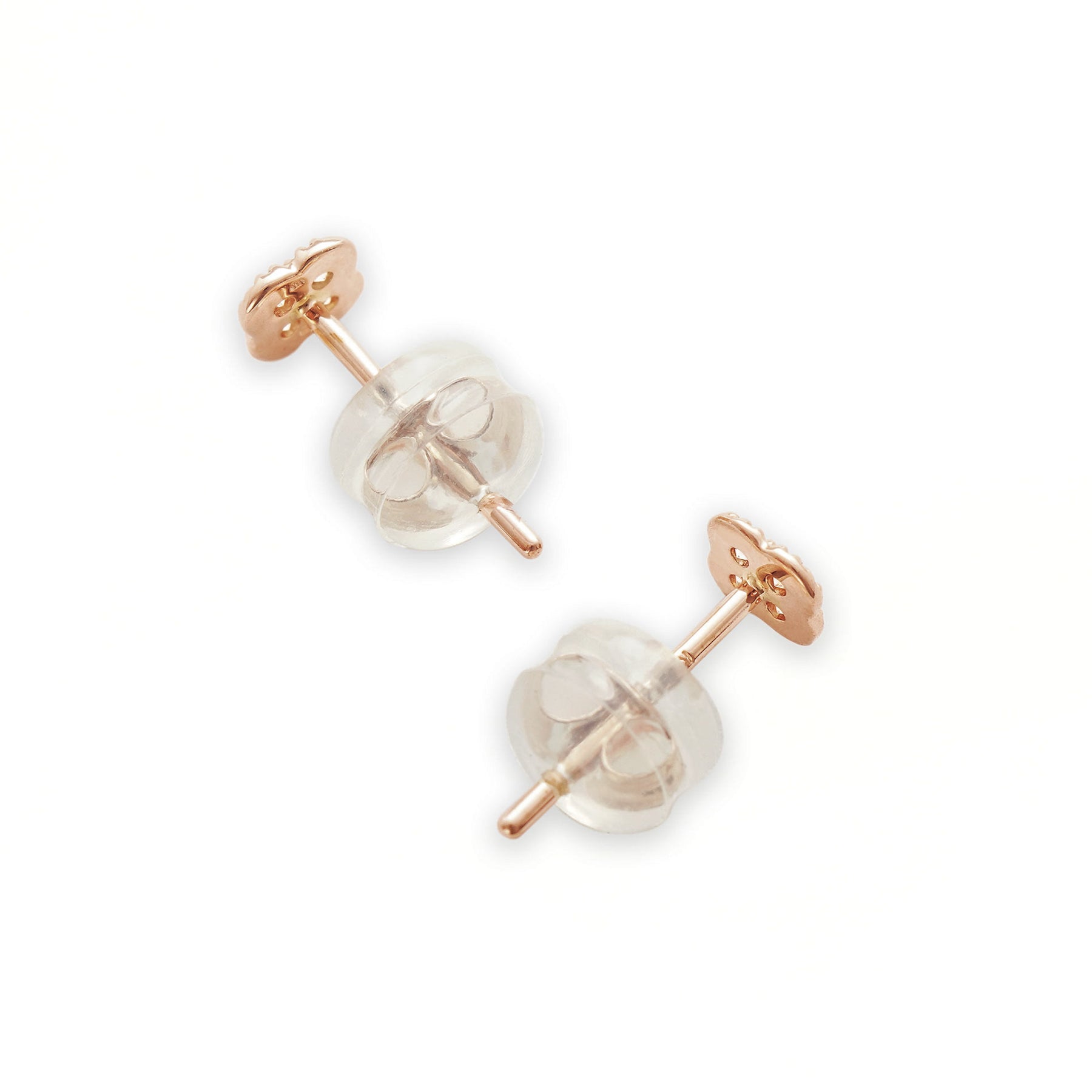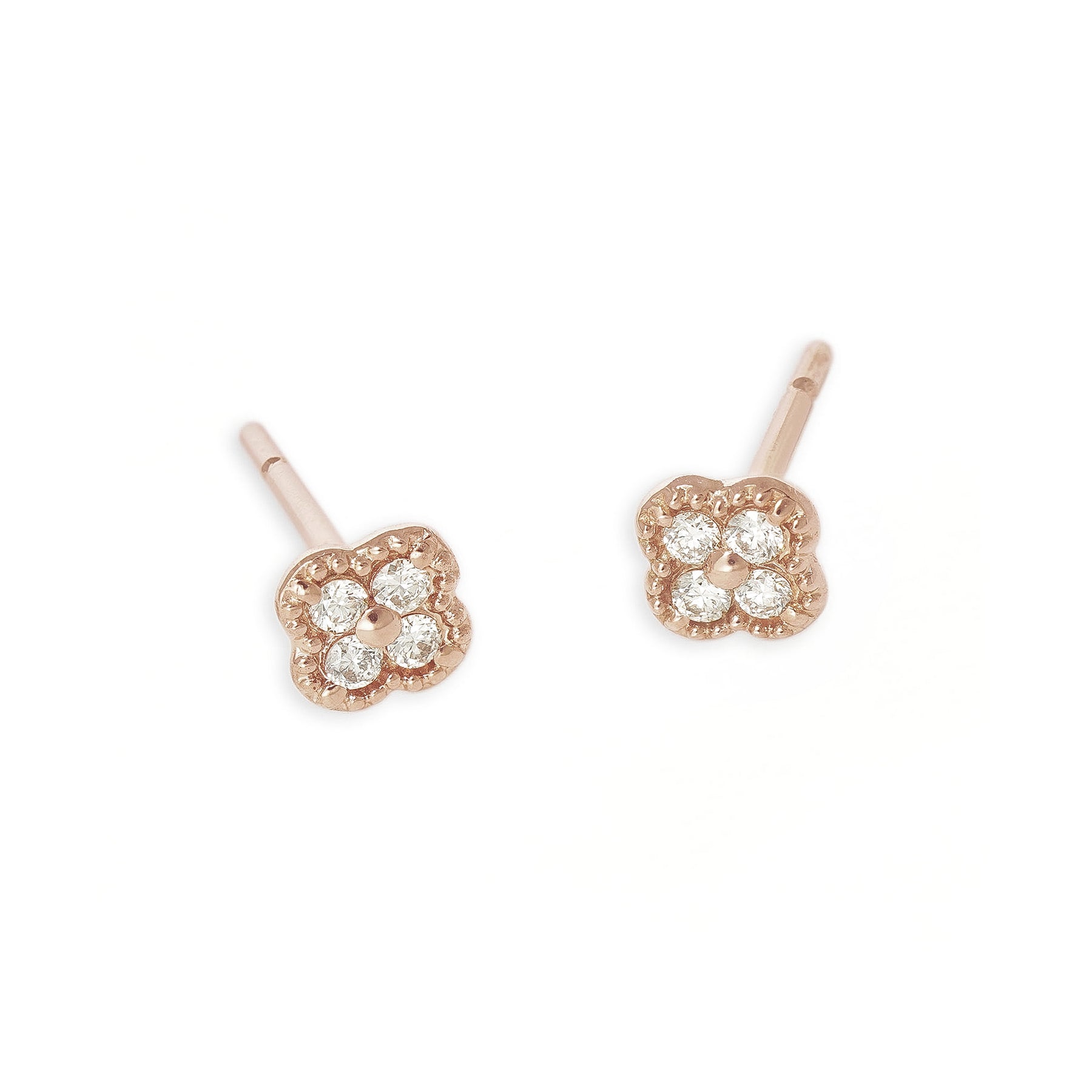 フラワーモチーフにダイヤモンドがきらめく、ピンクゴールドのピアス。