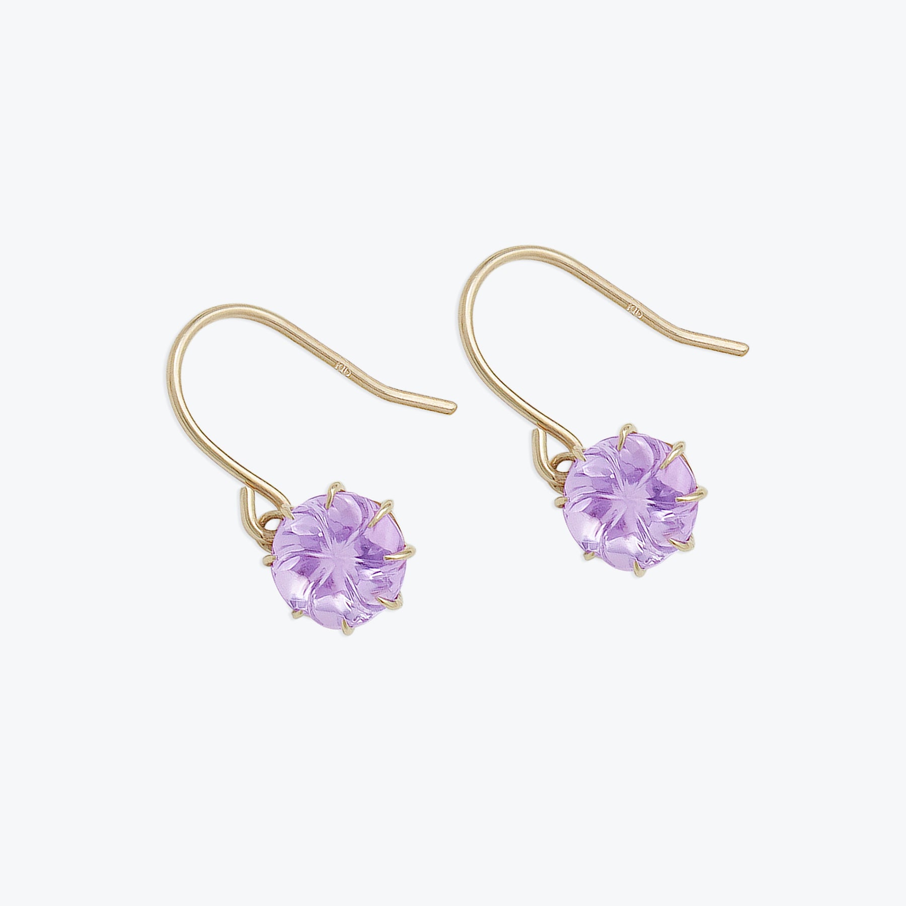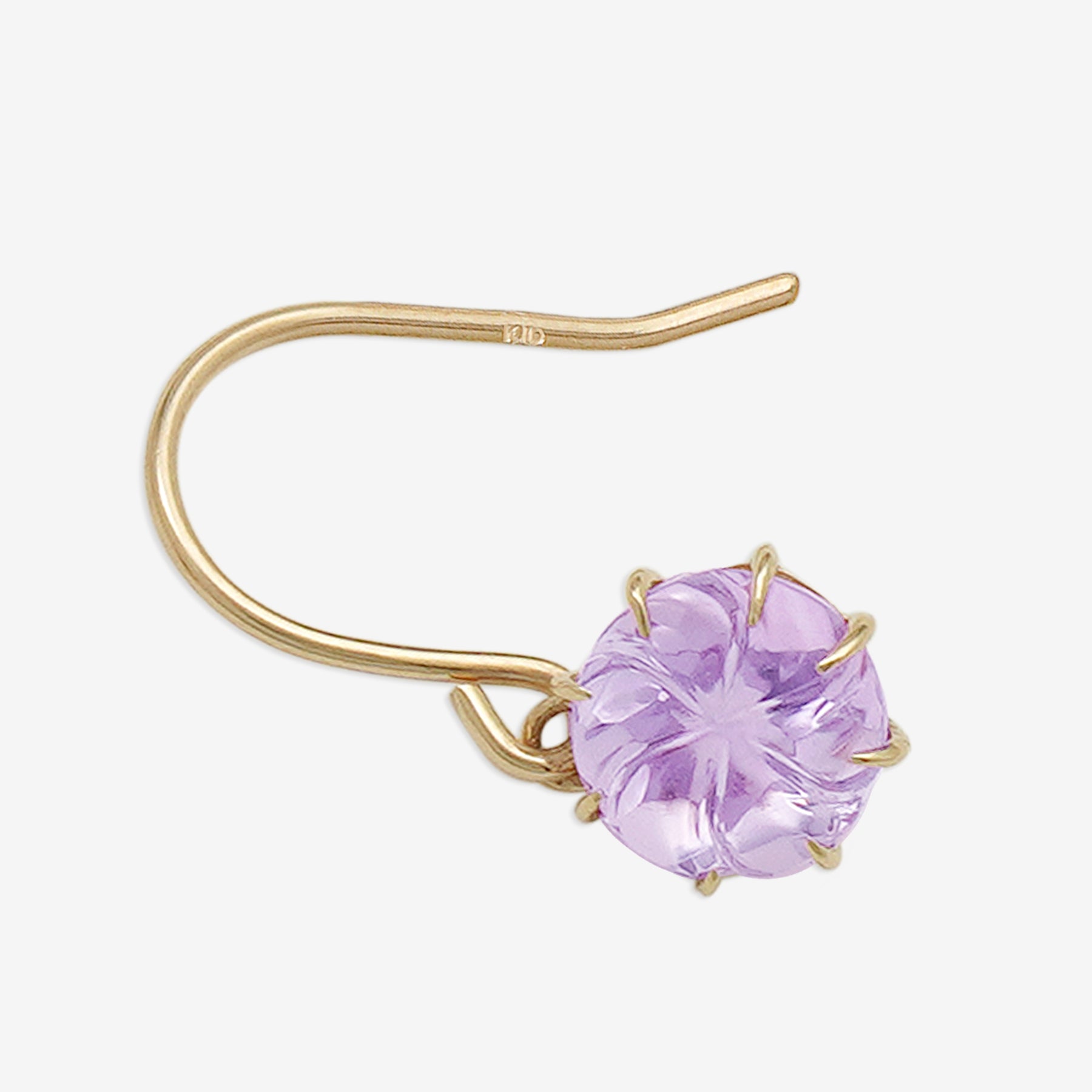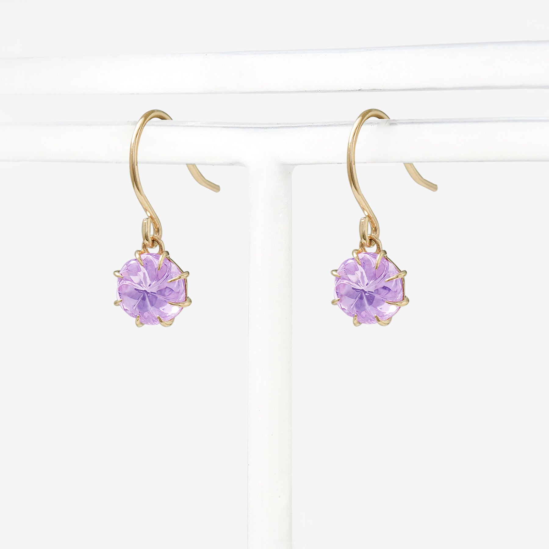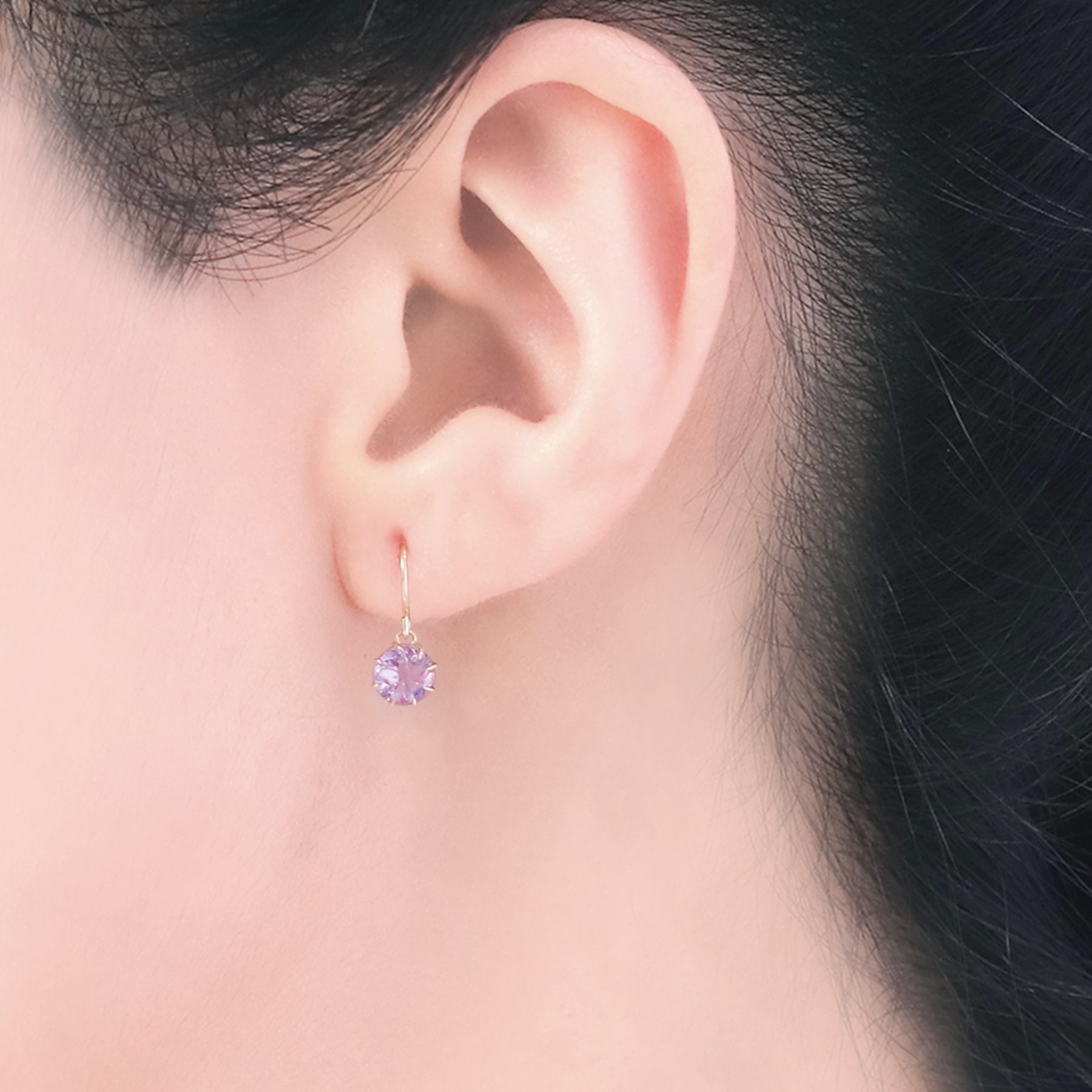 【Summer Flower】淡いピンクがふんわりと咲くイエローゴールドのフックピアス。フラワーカットが施されたピンクアメジストは、やさしく可憐な輝きで、大人の女性のフェミニンな魅力を引き立てます。シンプルでありながら洗練されたデザインは、オフィススタイルから週末のお出かけまで、さまざまなシーンで活躍してくれそう。自分へのご褒美にはもちろん、誕生日や記念日のギフトにも最適なアイテムです。アメジストは2月の誕生石です。石言葉は、「誠実」「心の平和」「高貴」。高貴な雰囲気のアメジストは誠実な愛情、夢を与えてくれます。【ATTENTION】※熱や紫外線、湿度の影響により変色や変質、劣化の恐れがございます。ご使用後は柔らかな布で汚れを拭き取ってから、直射日光の当たらない場所での保管をお願いいたします。※天然石は素材の特性により、色や形、風合いなどが画像と多少異なる場合がございます。また、多少のインクルージョンやクラックがある場合がございます。予めご了承ください。※天然石は他の宝石と比べて柔らかく傷がつきやすいため、衝撃や摩擦にご注意ください。また、他のジュエリーと触れないように保管してください。※強い力を加えると変形の原因になりますので、お取り扱いにはご注意ください。
