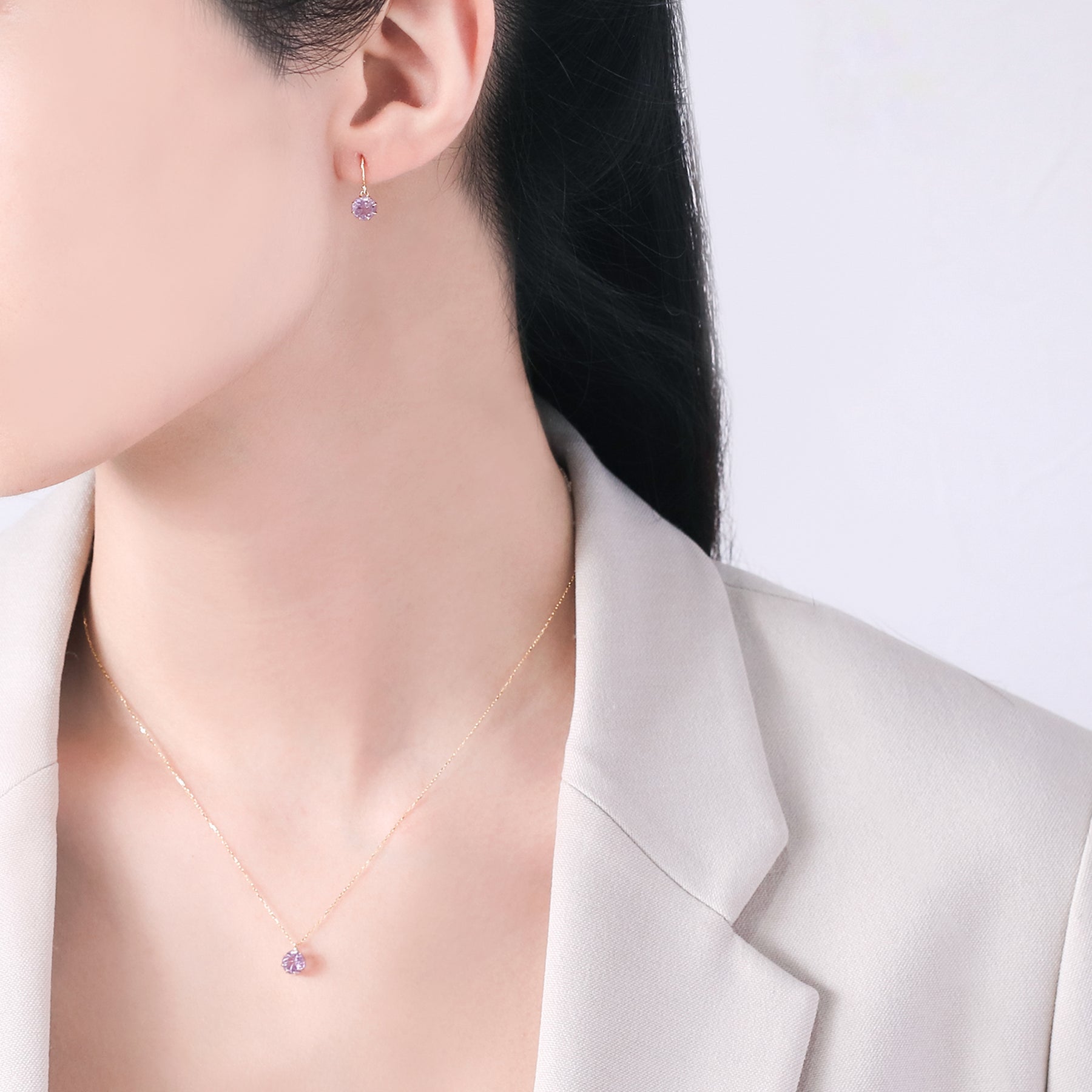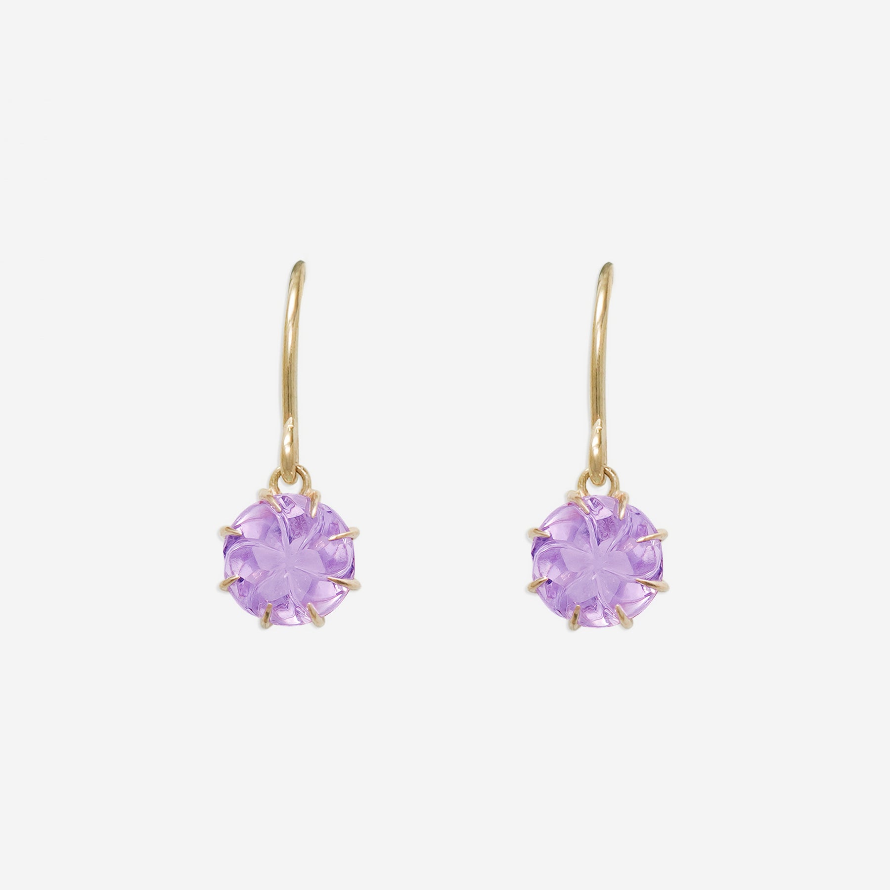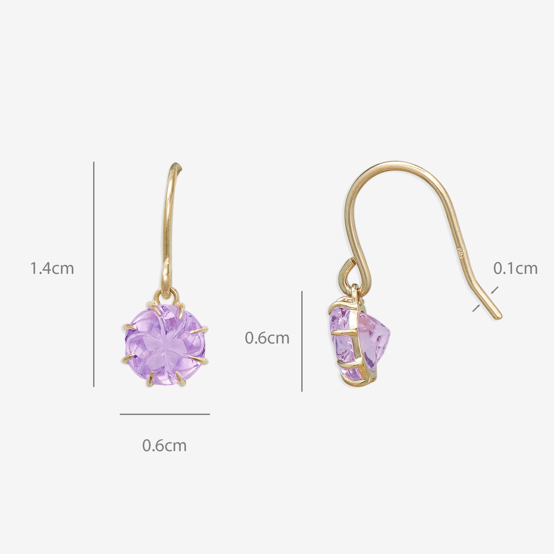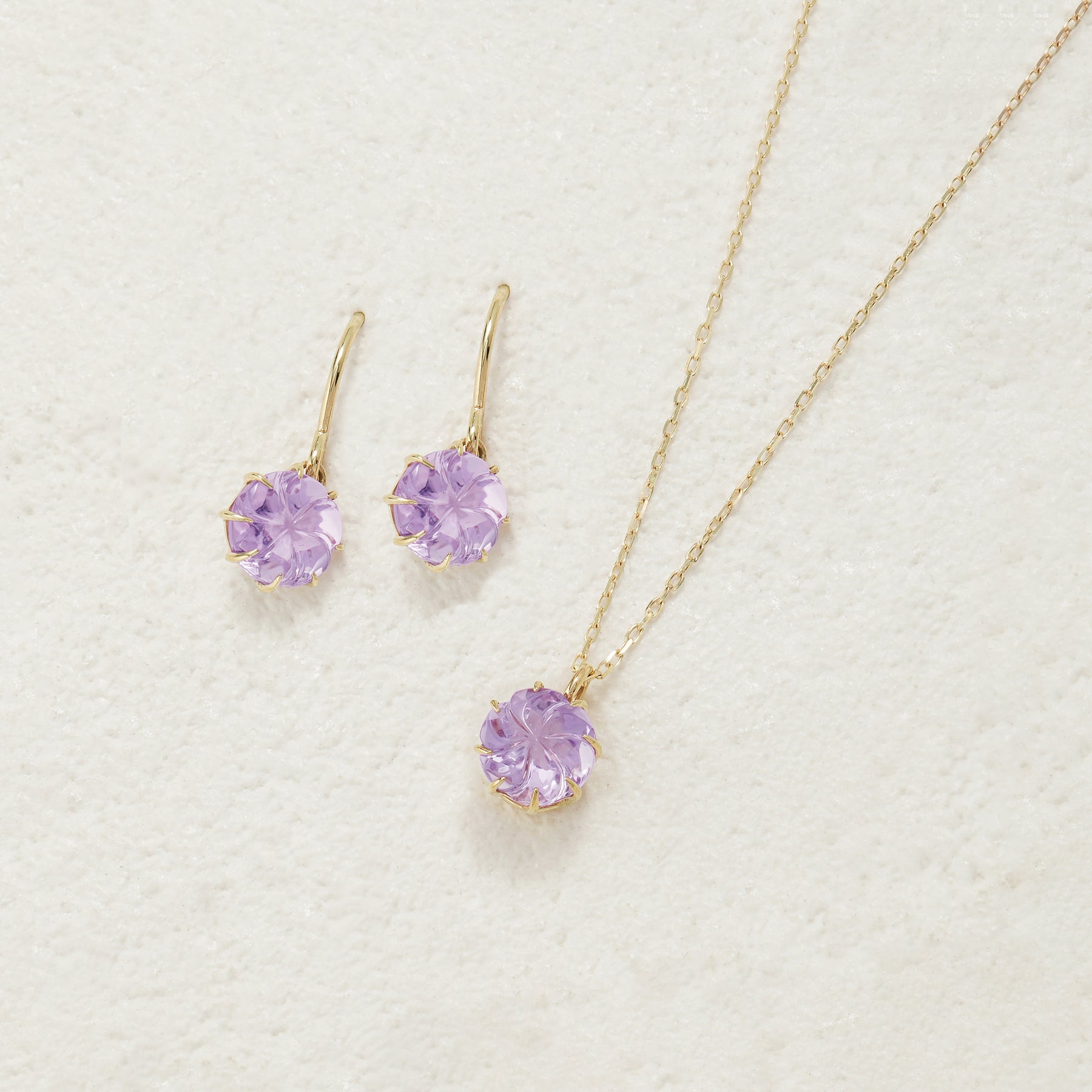 【Summer Flower】淡いピンクがふんわりと咲くイエローゴールドのフックピアス。フラワーカットが施されたピンクアメジストは、やさしく可憐な輝きで、大人の女性のフェミニンな魅力を引き立てます。シンプルでありながら洗練されたデザインは、オフィススタイルから週末のお出かけまで、さまざまなシーンで活躍してくれそう。自分へのご褒美にはもちろん、誕生日や記念日のギフトにも最適なアイテムです。アメジストは2月の誕生石です。石言葉は、「誠実」「心の平和」「高貴」。高貴な雰囲気のアメジストは誠実な愛情、夢を与えてくれます。【ATTENTION】※熱や紫外線、湿度の影響により変色や変質、劣化の恐れがございます。ご使用後は柔らかな布で汚れを拭き取ってから、直射日光の当たらない場所での保管をお願いいたします。※天然石は素材の特性により、色や形、風合いなどが画像と多少異なる場合がございます。また、多少のインクルージョンやクラックがある場合がございます。予めご了承ください。※天然石は他の宝石と比べて柔らかく傷がつきやすいため、衝撃や摩擦にご注意ください。また、他のジュエリーと触れないように保管してください。※強い力を加えると変形の原因になりますので、お取り扱いにはご注意ください。