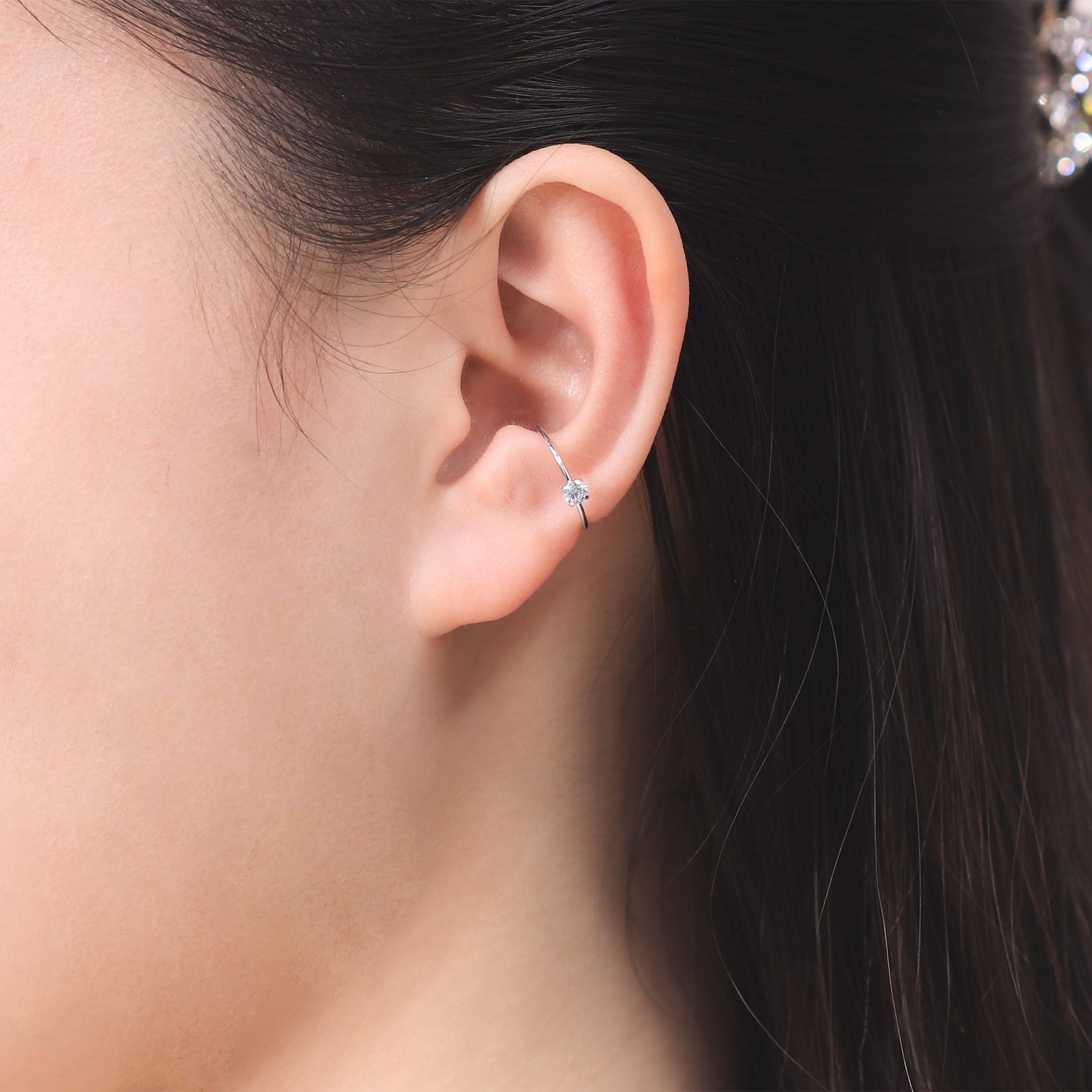 【WEB限定商品】ピアスホールがあいていなくても耳元のお洒落が楽しめるホワイトゴールドのイヤーカフ。キラキラと輝くキュービックジルコニアが、さりげないアクセントに。お顔回りにきらめきをプラスしてくれるシンプルなイヤーカフは、様々なシーンで活躍してくれそうです。