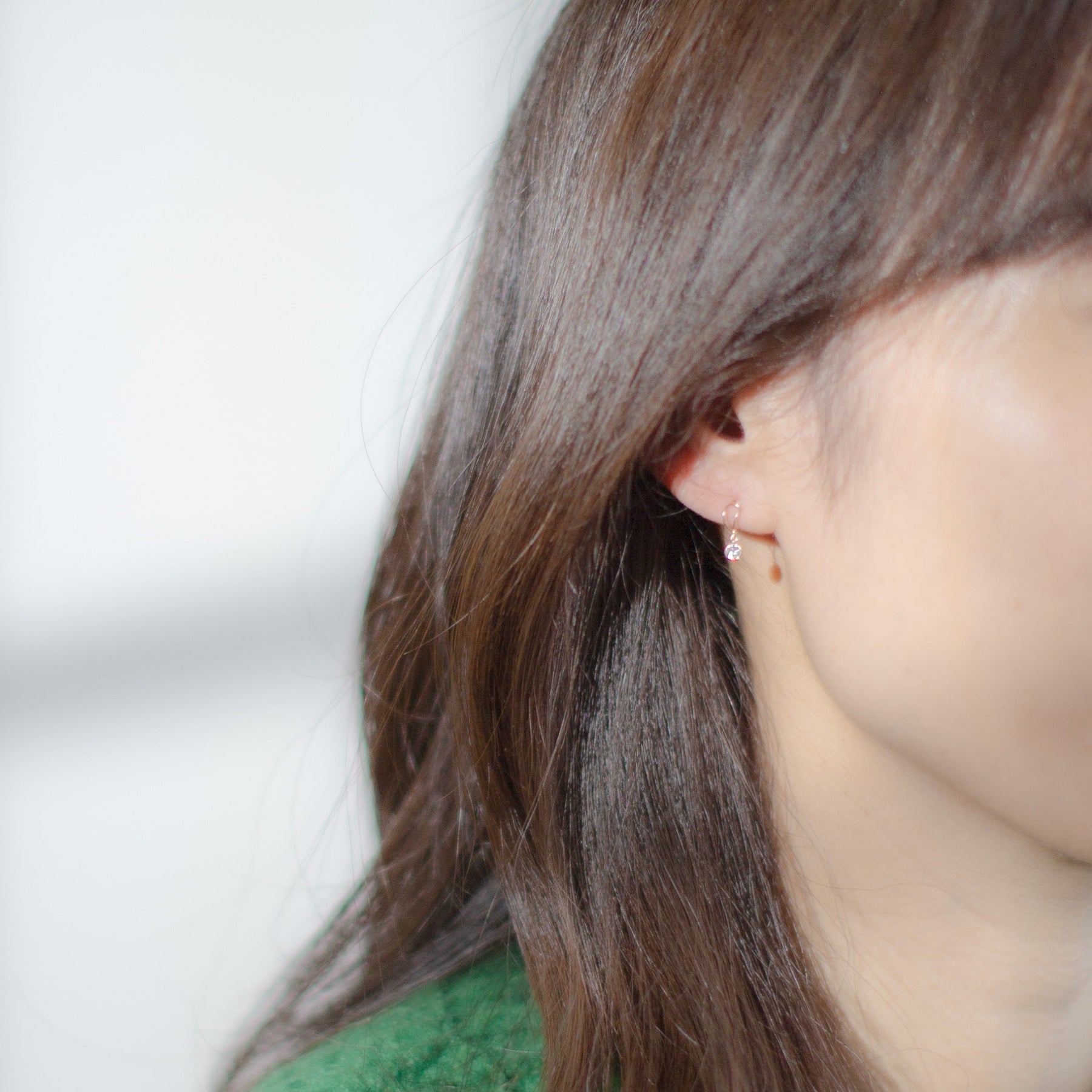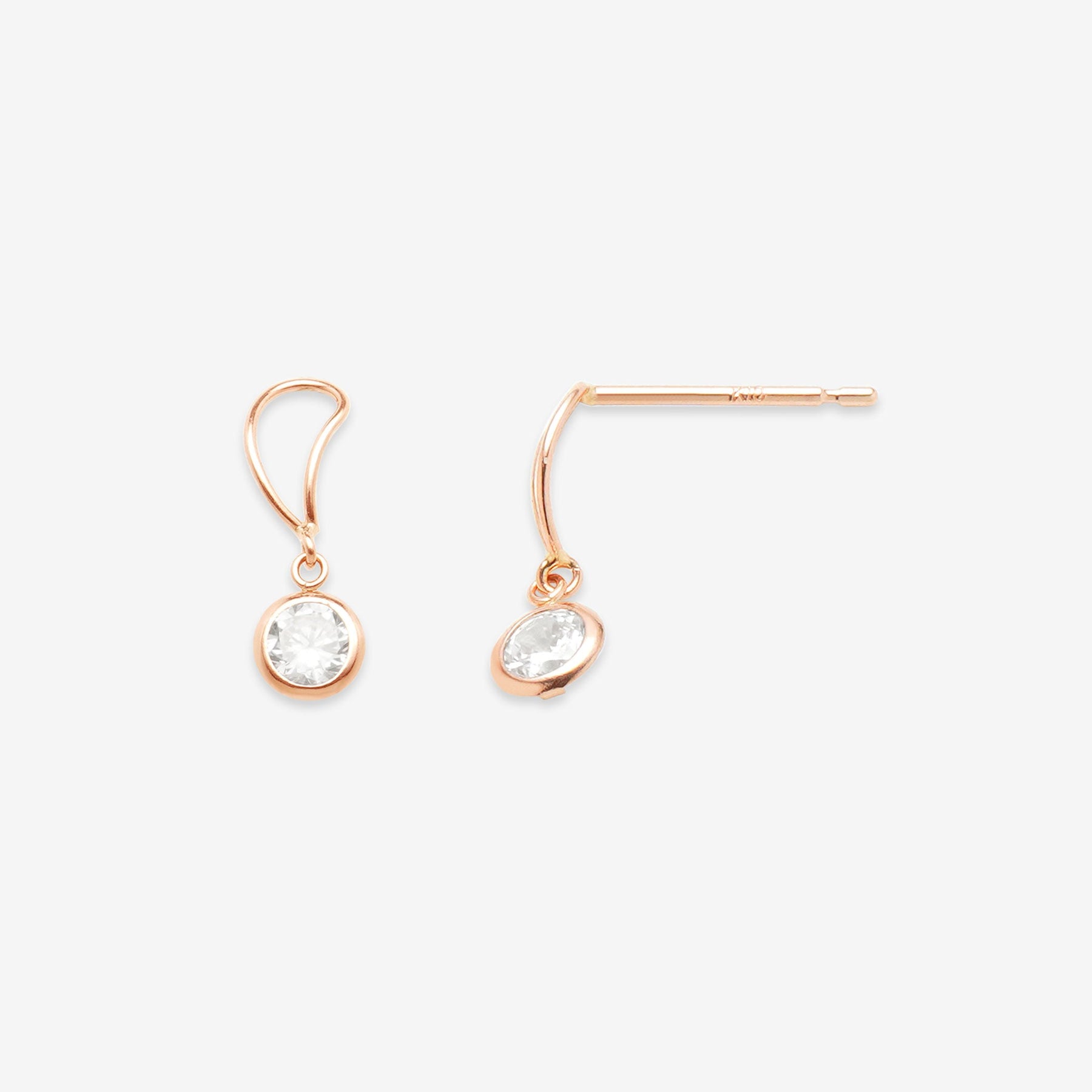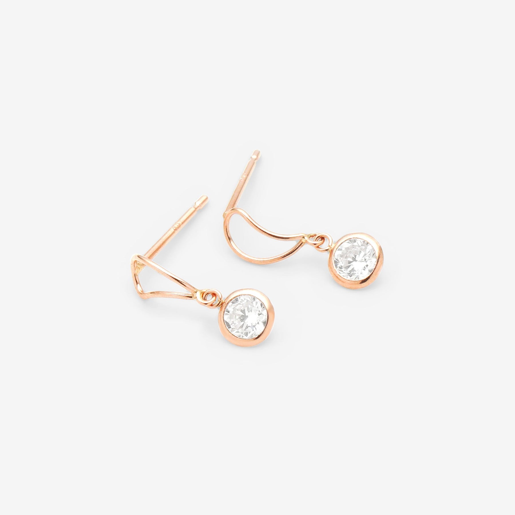 【FOR EARS】キュービックジルコニアが耳元で優しく揺れるピンクゴールドのピアス。キュービックジルコニアが光を受けて輝きを放ち、表情まで明るく見せてくれます。どんなスタイルにも合わせやすいシンプルなピアスは、贈り物にもおすすめです。【ATTENTION】※熱や紫外線、湿度の影響により変色や変質、劣化の恐れがございます。ご使用後は柔らかな布で汚れを拭き取ってから、直射日光の当たらない場所での保管をお願いいたします。※強い力を加えると変形の原因になりますので、お取り扱いにはご注意ください。
