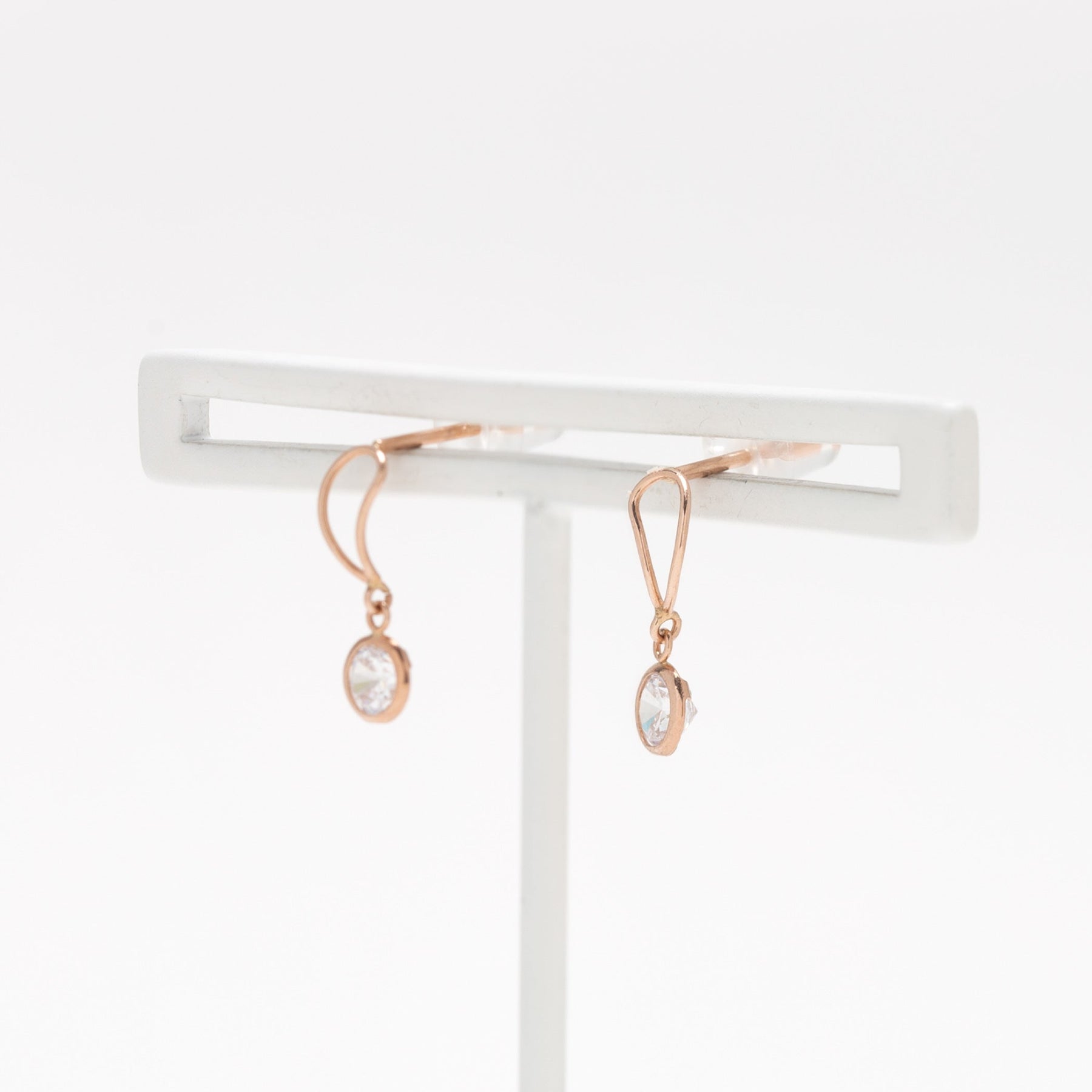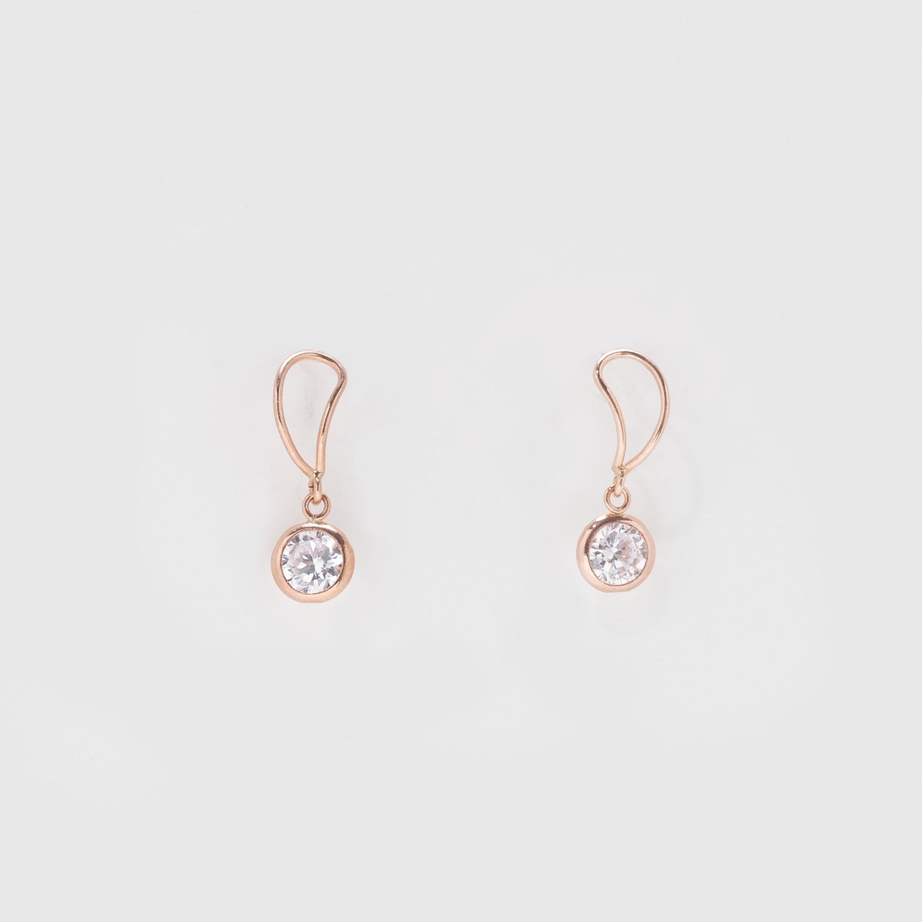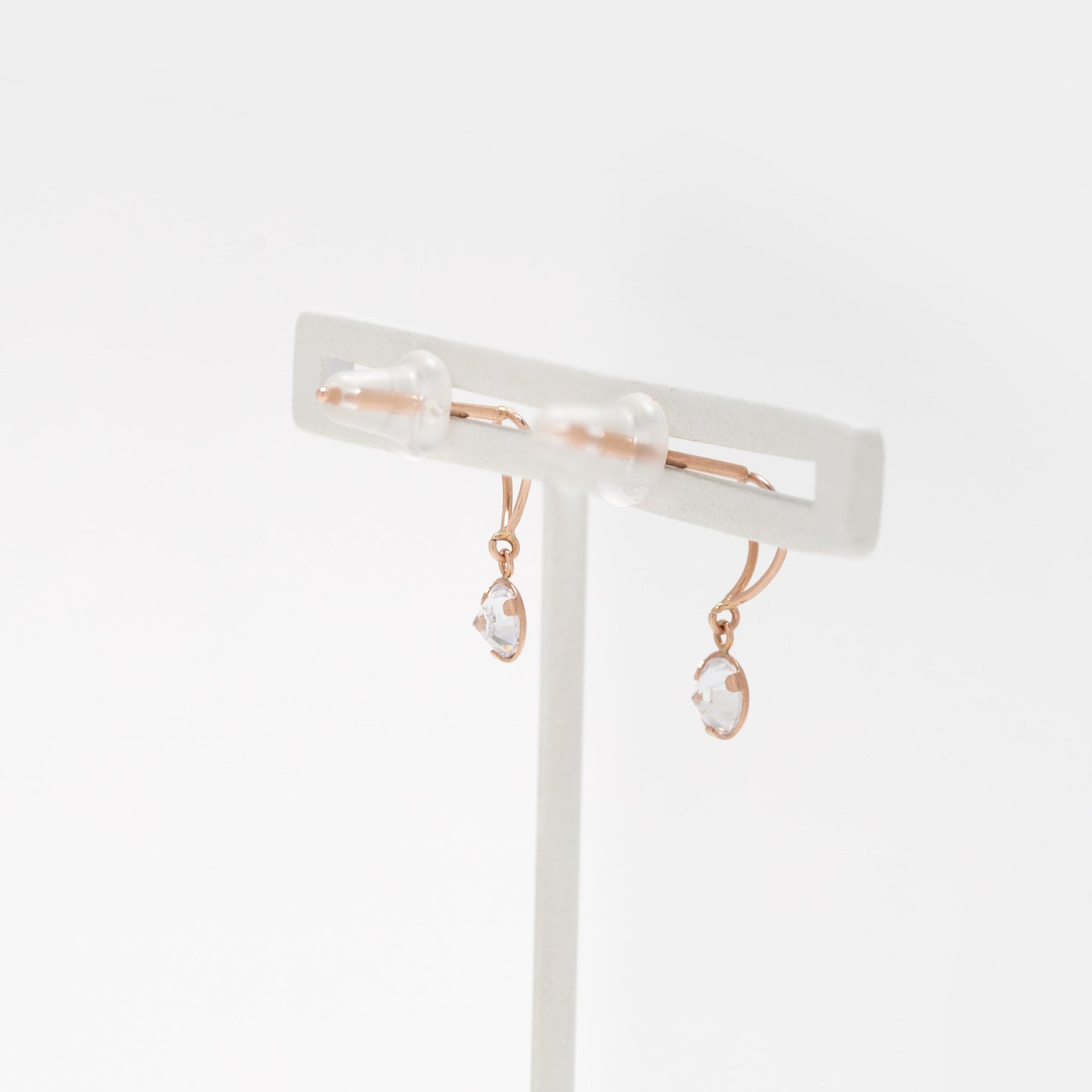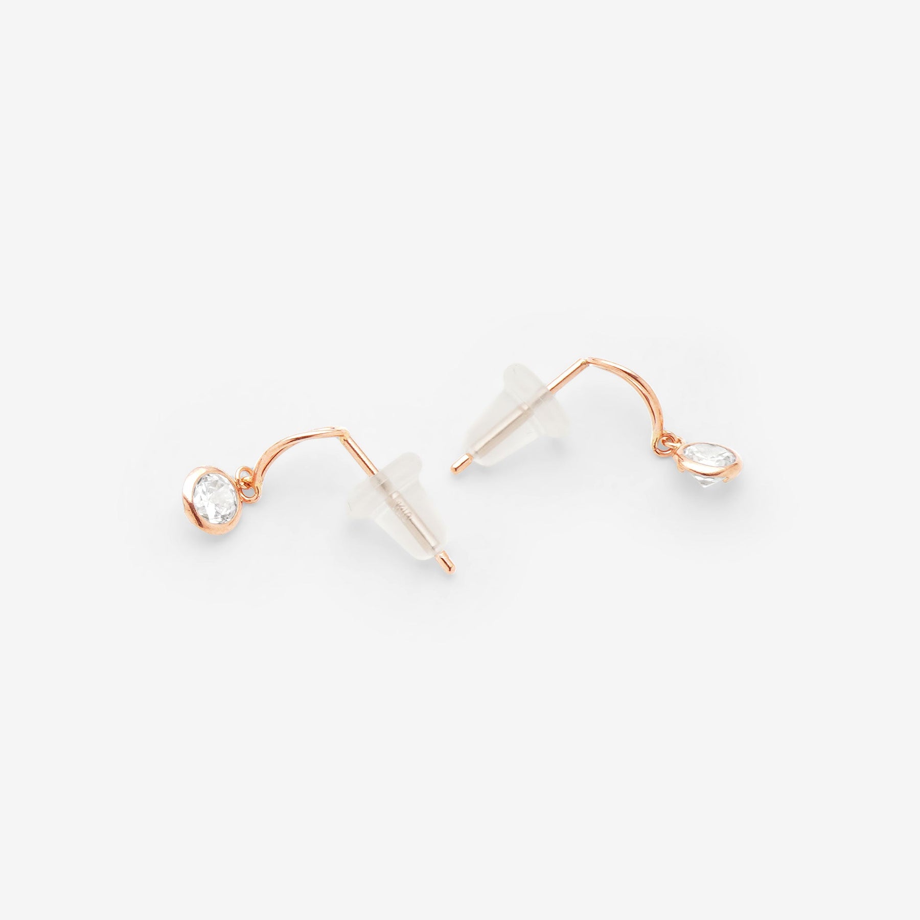 【FOR EARS】キュービックジルコニアが耳元で優しく揺れるピンクゴールドのピアス。キュービックジルコニアが光を受けて輝きを放ち、表情まで明るく見せてくれます。どんなスタイルにも合わせやすいシンプルなピアスは、贈り物にもおすすめです。【ATTENTION】※熱や紫外線、湿度の影響により変色や変質、劣化の恐れがございます。ご使用後は柔らかな布で汚れを拭き取ってから、直射日光の当たらない場所での保管をお願いいたします。※強い力を加えると変形の原因になりますので、お取り扱いにはご注意ください。