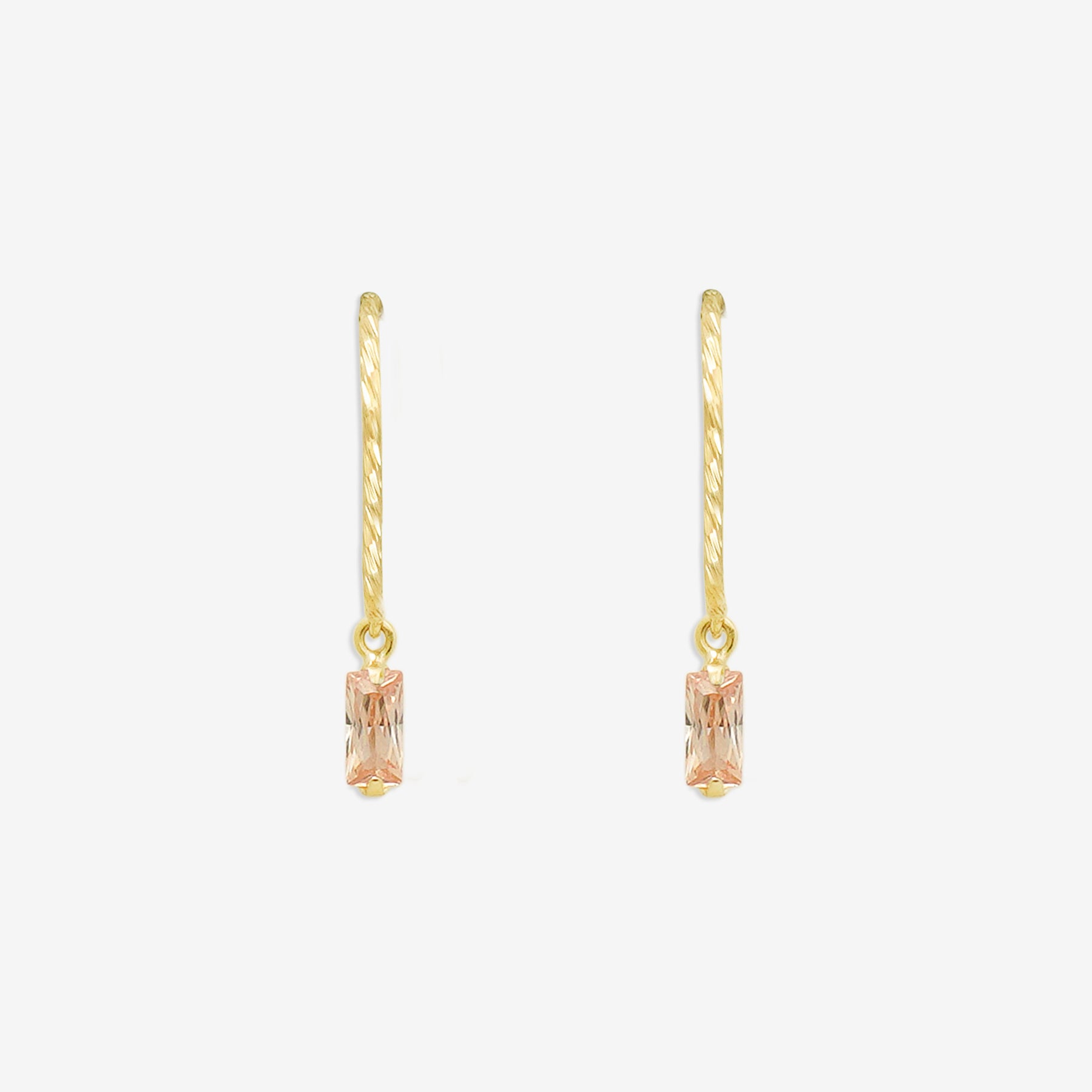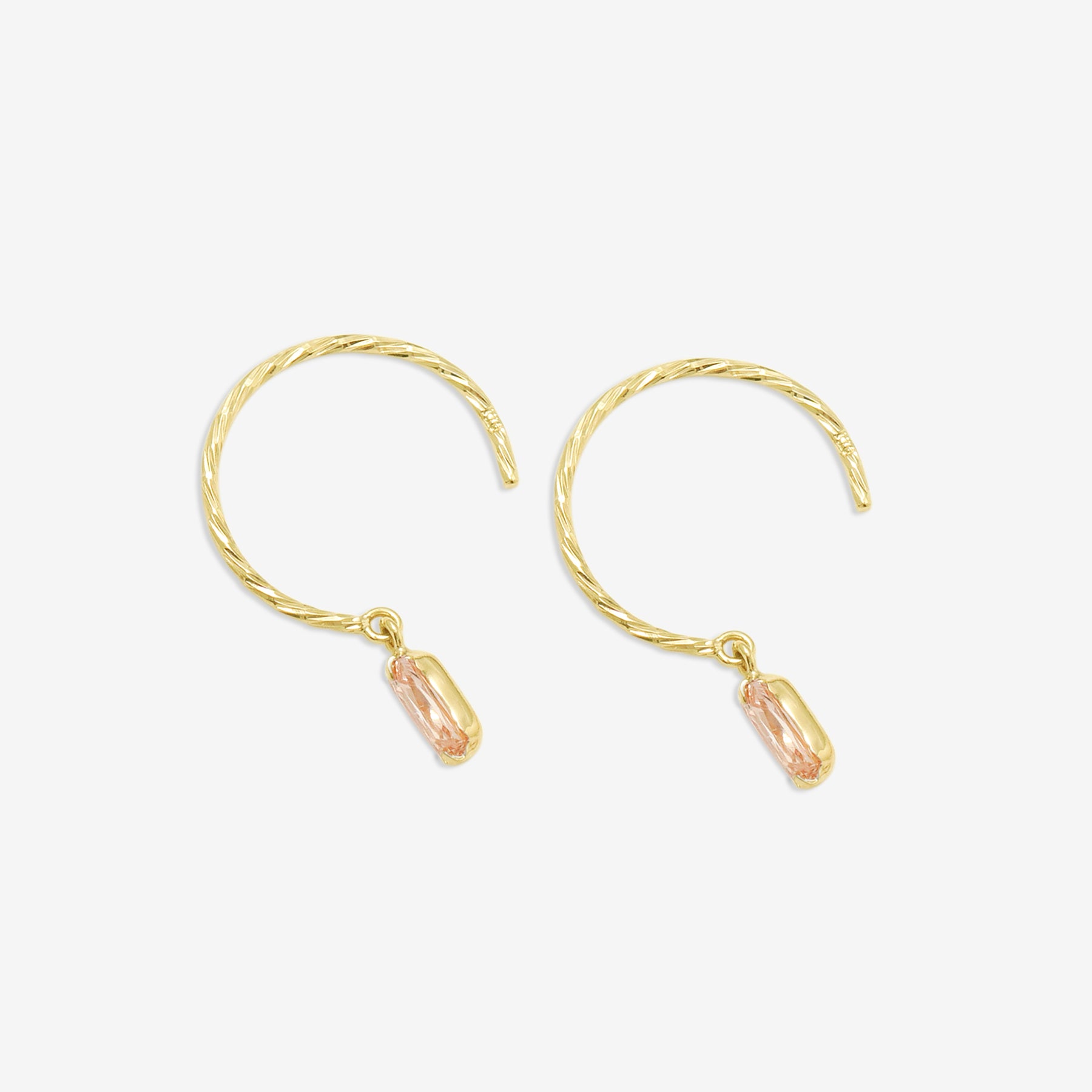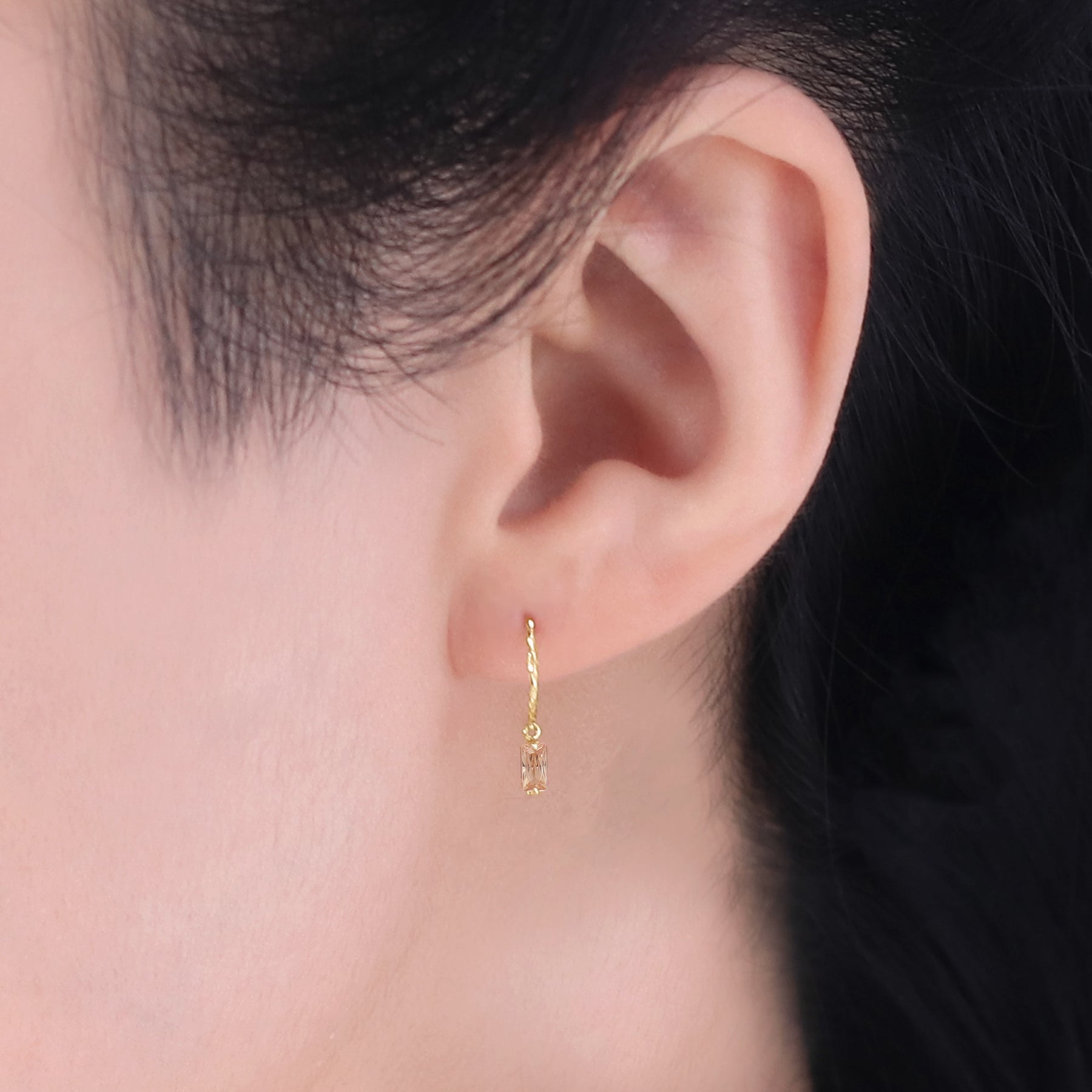 ツイストを施したイエローゴールドのフックで、シャンパンカラーのキュービックジルコニアが揺れるフックピアス。