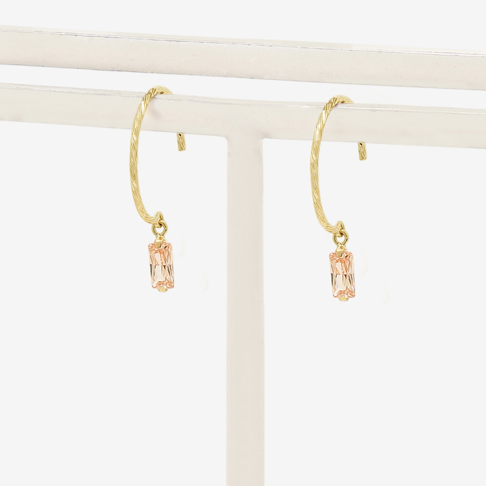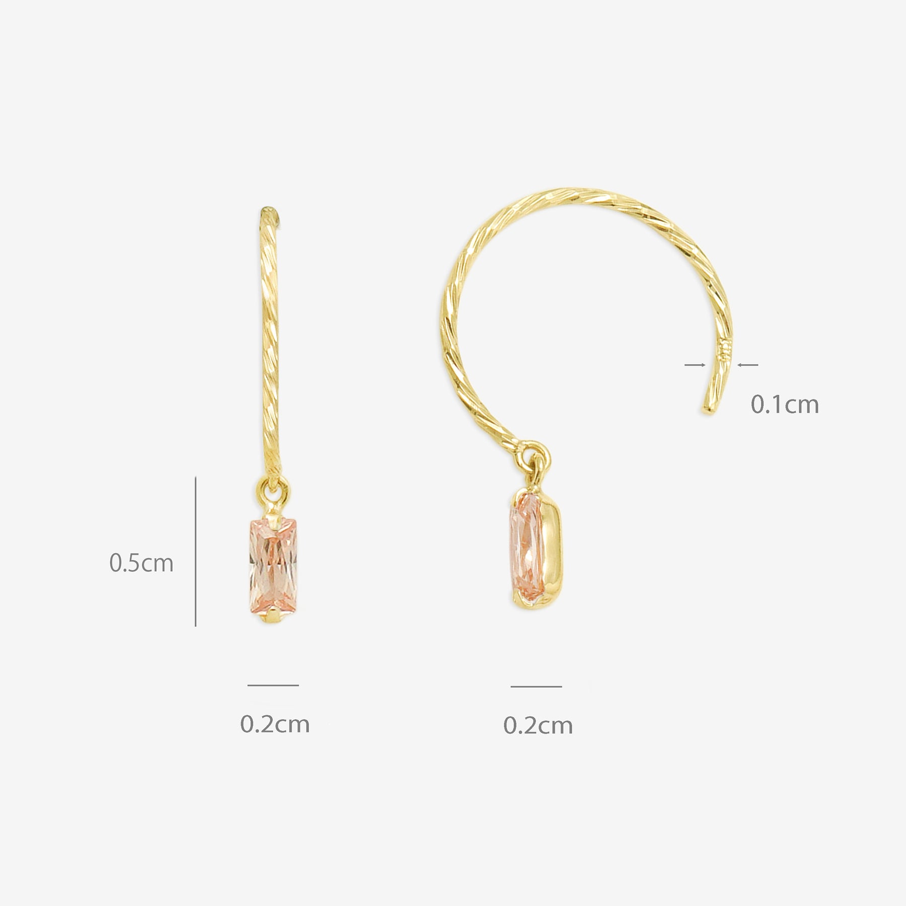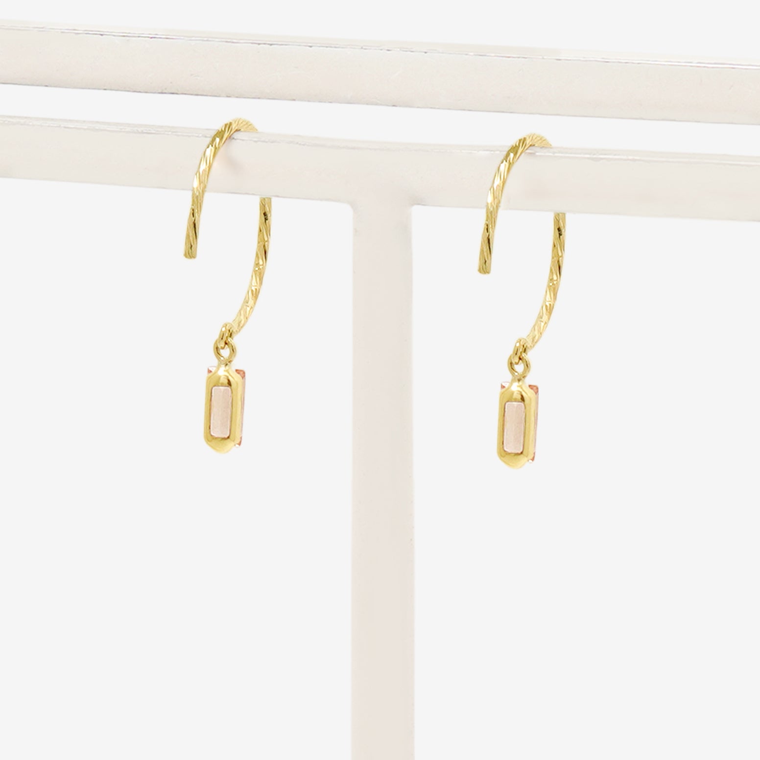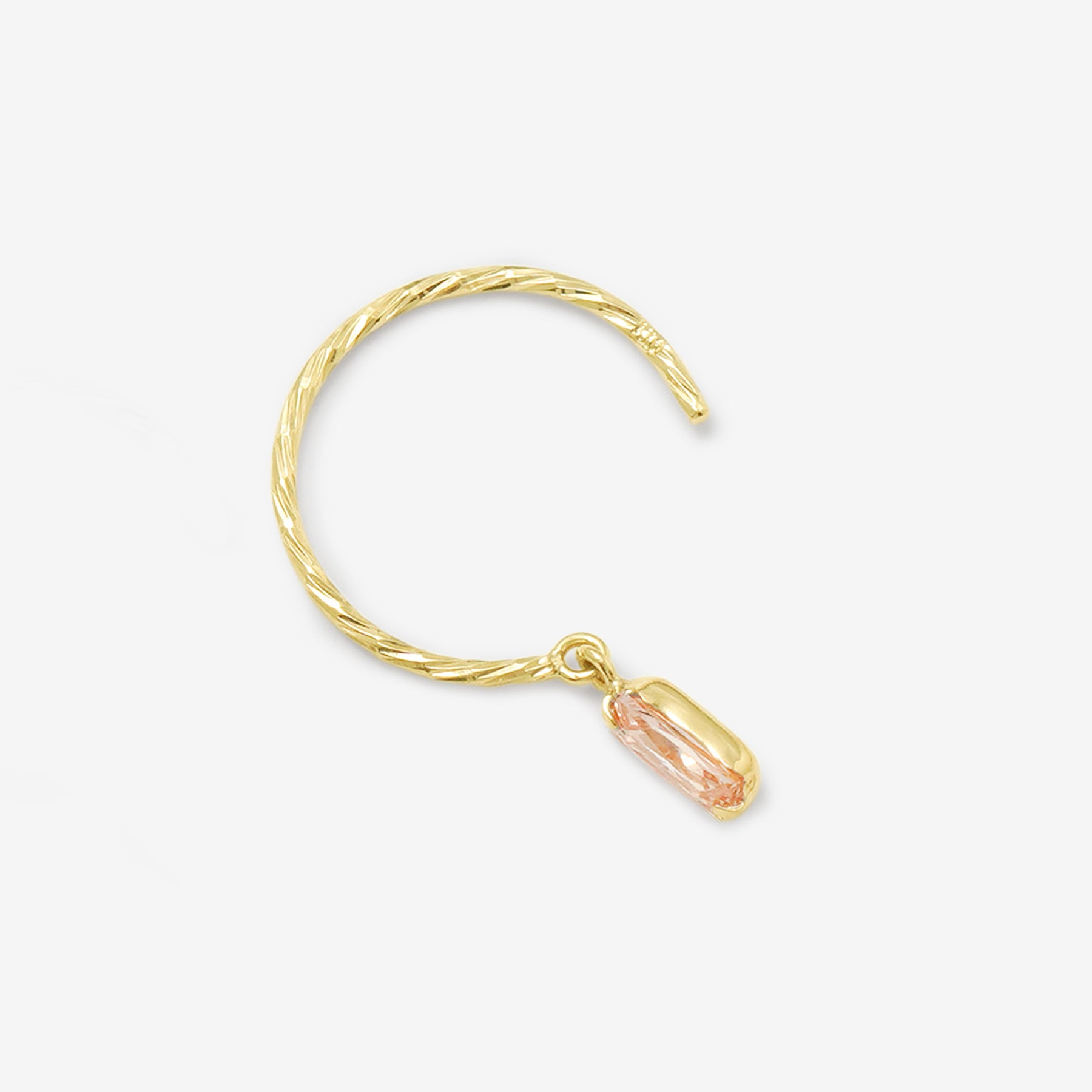 ツイストを施したイエローゴールドのフックで、シャンパンカラーのキュービックジルコニアが揺れるフックピアス。