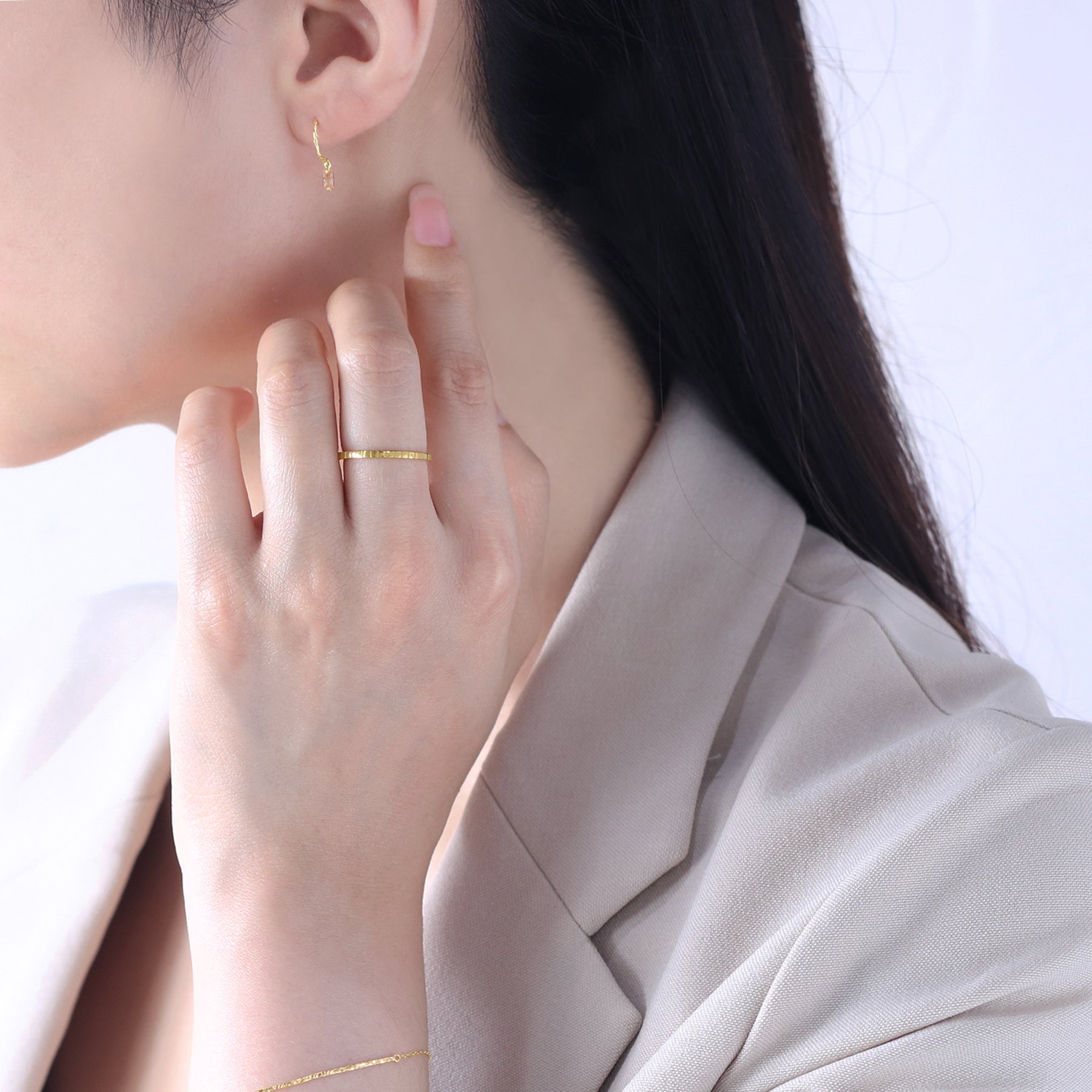 光を受けて上品に輝くチャームが、耳元に繊細なきらめきを添えます。
