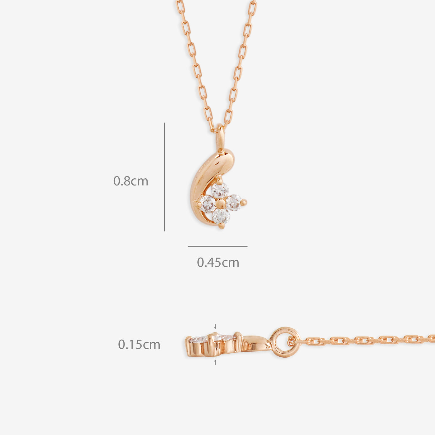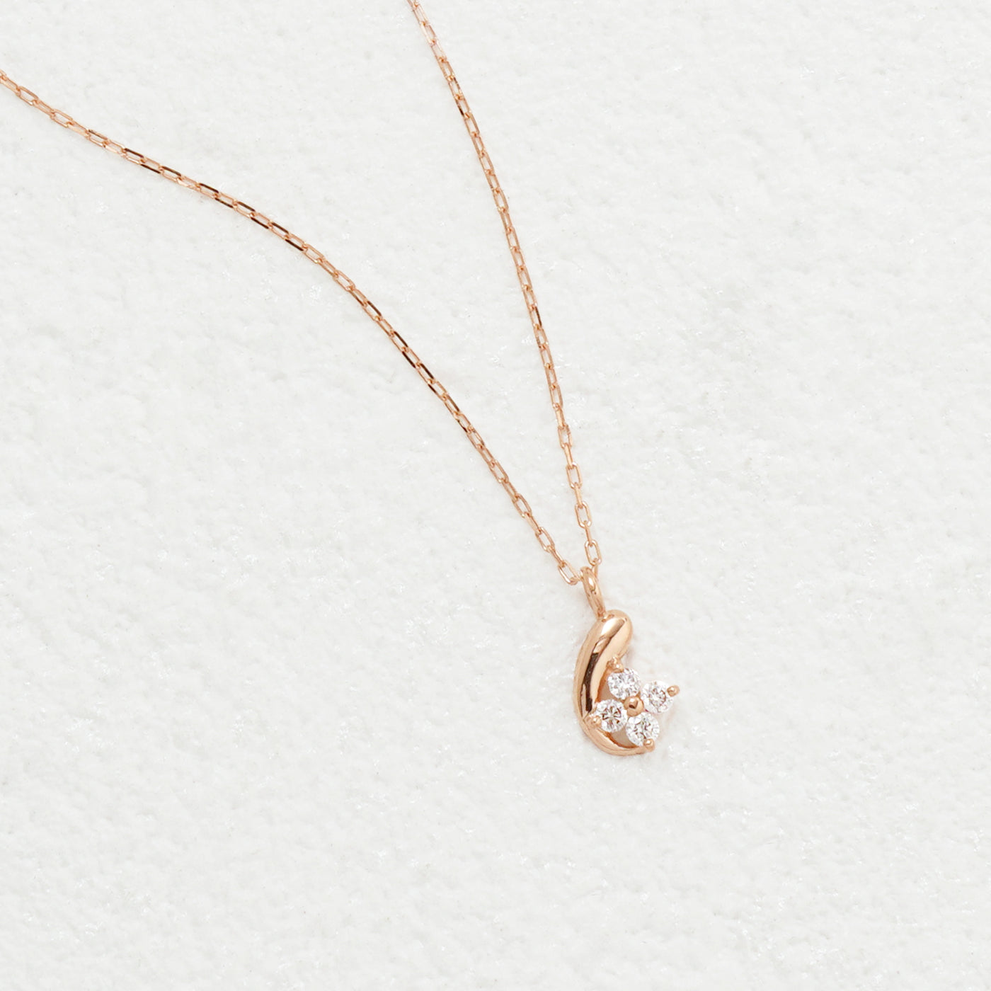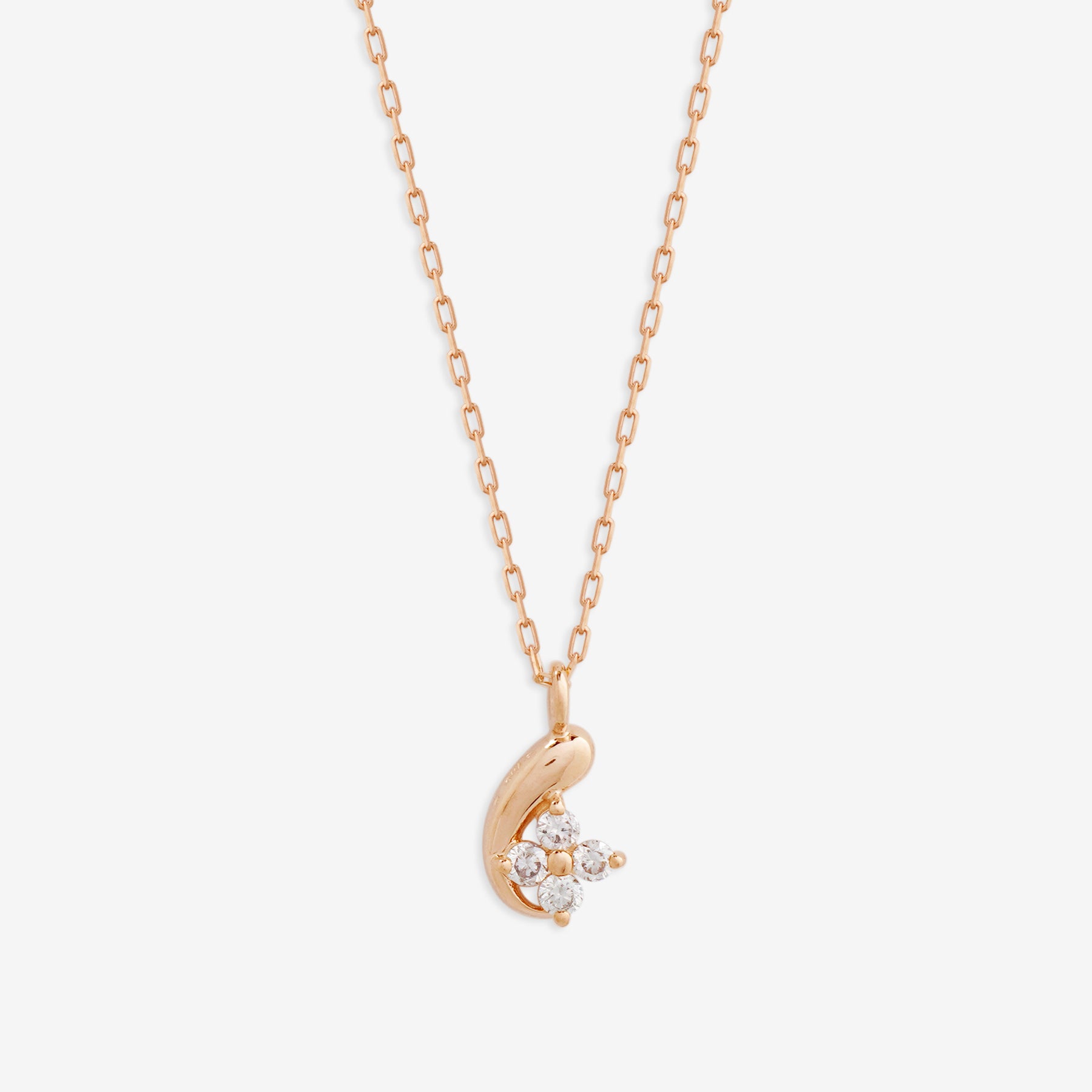 【Diamond】ピンクゴールドのモチーフに、ダイヤモンドがそっときらめくネックレス。やわらかな色味と繊細な輝きが胸元を彩り、大人の女性にふさわしい気品を演出。自然な曲線がやさしく寄り添い、着ける人の魅力を引き立てます。オフィスにも休日のお出かけにも馴染み、上品な華やかさを添えてくれる一本です。ダイヤモンドは4月の誕生石です。石言葉は「清浄無垢」「永遠の愛」。心身を浄化し周囲にある邪気を払ってくれる力があるとされています。最大の幸福を呼び込むサポートとなってくれそうです。 ◆こちらの商品は、地金変更のセミオーダーが可能です。・詳細は、こちら・対象商品は、こちらからご覧いただけます。【ATTENTION】※熱や紫外線、湿度の影響により変色や変質、劣化の恐れがございます。ご使用後は柔らかな布で汚れを拭き取ってから、直射日光の当たらない場所での保管をお願いいたします。※天然石は素材の特性により、色や形、風合いなどが画像と多少異なる場合がございます。また、多少のインクルージョンやクラックがある場合がございます。予めご了承ください。※引っ張ったり、強い力を加えると不良や変形の原因となりますので、お取り扱いにはご注意ください。