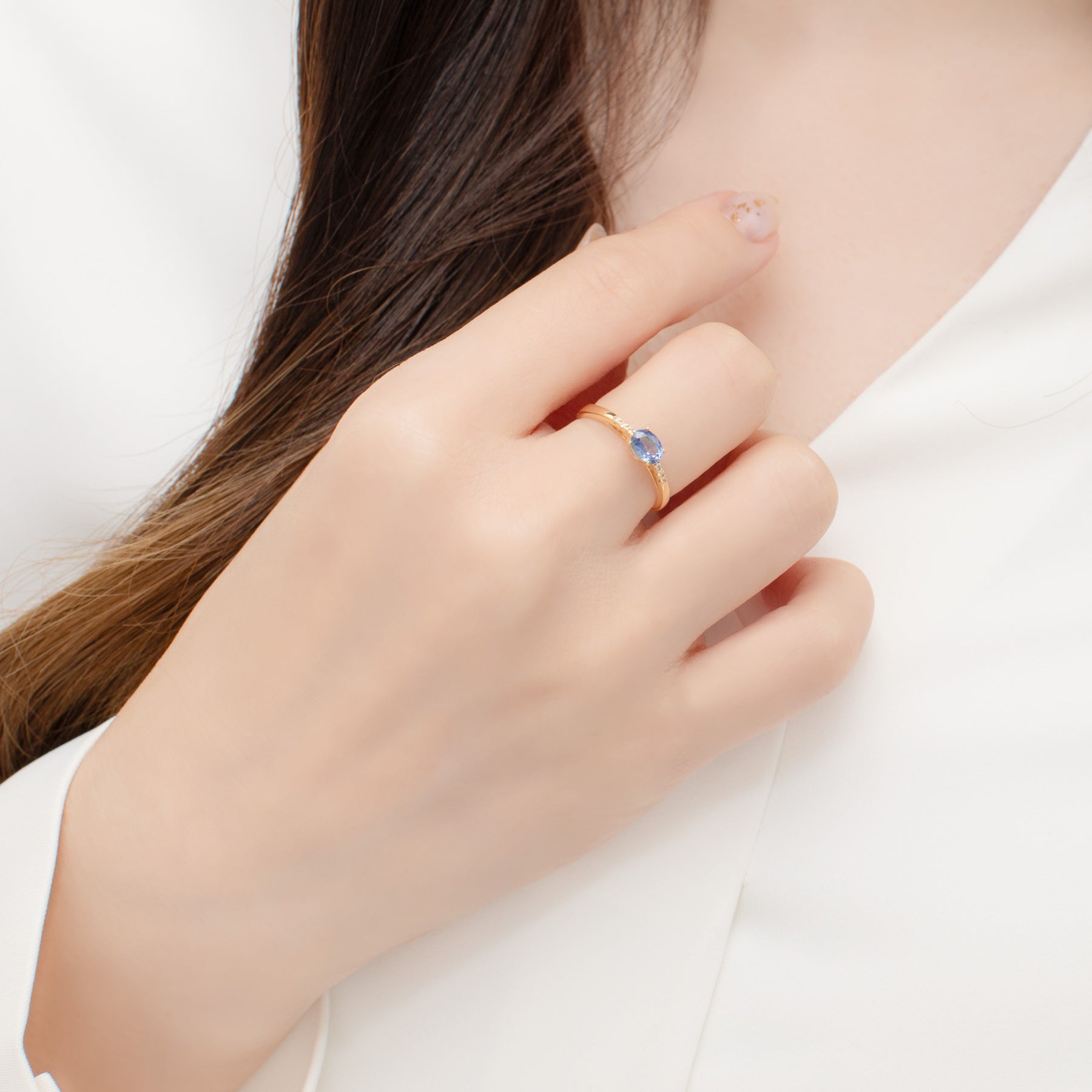 【Colors】鮮やかなブルーサファイアを中央にあしらったイエローゴールドのリング。両側に添えられたダイヤモンドが、サファイアの輝きを引き立て、指元に上品な華やぎを添えます。イエローゴールドの温もりある輝きと、サファイアの凛とした色彩が調和したデザインは、シンプルでありながら洗練された印象。日常の装いにも、特別なシーンにも自然に馴染み、知性と気品を感じさせる一本です。永く愛せるジュエリーとして、自分へのご褒美にもふさわしいリングです。サファイアは9月の誕生石です。石言葉は「慈愛」「誠実」。真実を見抜く冷静な判断力をもたらし、知性や理性も高めてくれると言われています。色によって魅力が異なるサファイアはプレゼントにもおすすめです。【ATTENTION】※熱や紫外線、湿度の影響により変色や変質、劣化の恐れがございます。ご使用後は柔らかな布で汚れを拭き取ってから、直射日光の当たらない場所での保管をお願いいたします。※天然石は素材の特性により、色や形、風合いなどが画像と多少異なる場合がございます。また、多少のインクルージョンやクラックがある場合がございます。予めご了承ください。※天然石は他の宝石と比べて柔らかく傷がつきやすいため、衝撃や摩擦にご注意ください。また、他のジュエリーと触れないように保管してください。※強い力を加えると変形の原因になりますので、お取り扱いにはご注意ください。