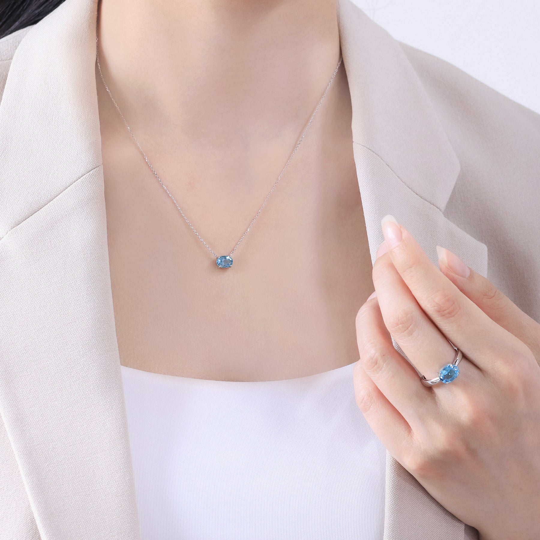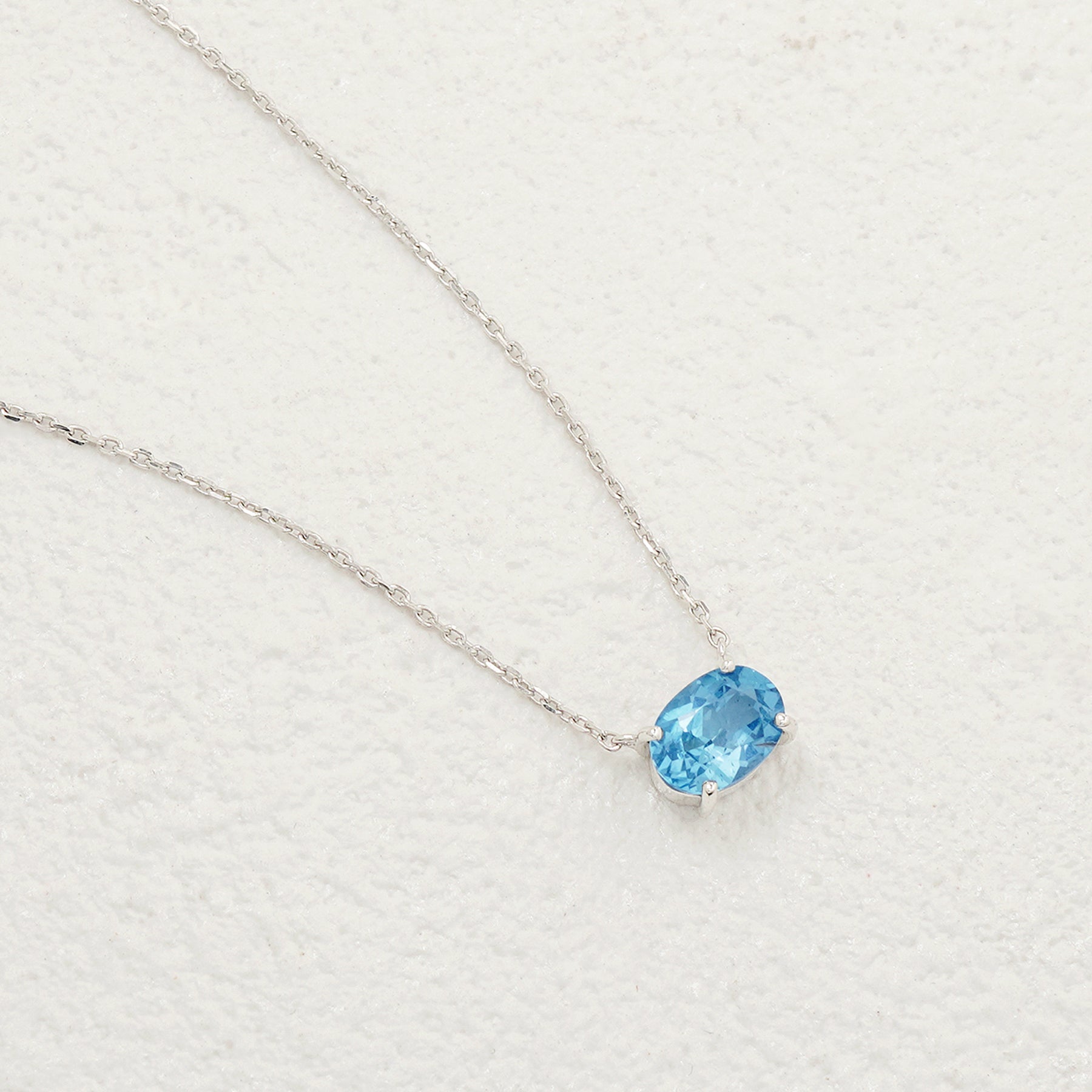 【Gemme en Couleur】澄んだブルーが胸元にきらめきを添える、ブルートパーズのネックレス。透明感あふれるブルートパーズが、爽やかで上品なアクセントとなり、装いに静かな華やぎをもたらします。光を受けて輝くその表情は、清楚で凛とした印象を与え、日常のスタイルにさりげなく溶け込みます。オフィスシーンにも週末のお出かけにも自然に馴染み、女性らしさを優しく引き立ててくれるジュエリーです。ブルートパーズは11月の誕生石です。石言葉は「友情」「希望」「知性」。仕事運や勉強運を高めてくれるブルートパーズは、「運命的な出会いをもたらす石」とも言われています。【ATTENTION】※熱や紫外線、湿度の影響により変色や変質、劣化の恐れがございます。直射日光の当たらない場所での保管をお願いいたします。※天然石は素材の特性により、色や形、風合いなどが画像と多少異なる場合がございます。また、多少のインクルージョンやクラックがある場合がございます。予めご了承ください。※天然石は他の宝石と比べて柔らかく傷がつきやすいため、衝撃や摩擦にご注意ください。また、他のジュエリーと触れないように保管してください。※シルバーは、汗や水に弱い素材です。ご使用後は柔らかな布で汚れを拭き取ってから保管をお願いいたします。※引っ張ったり、強い力を加えると不良や変形の原因となりますので、お取り扱いにはご注意ください。