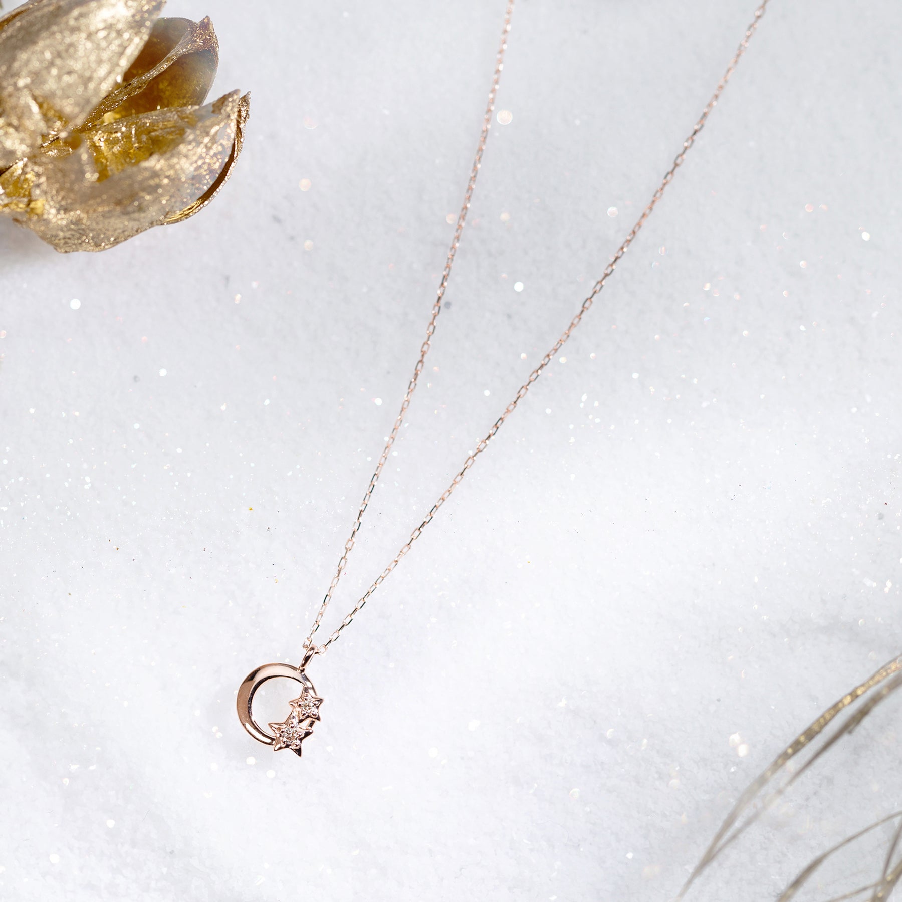 K10 ピンクゴールド ダイヤモンド ムーン ネックレス
