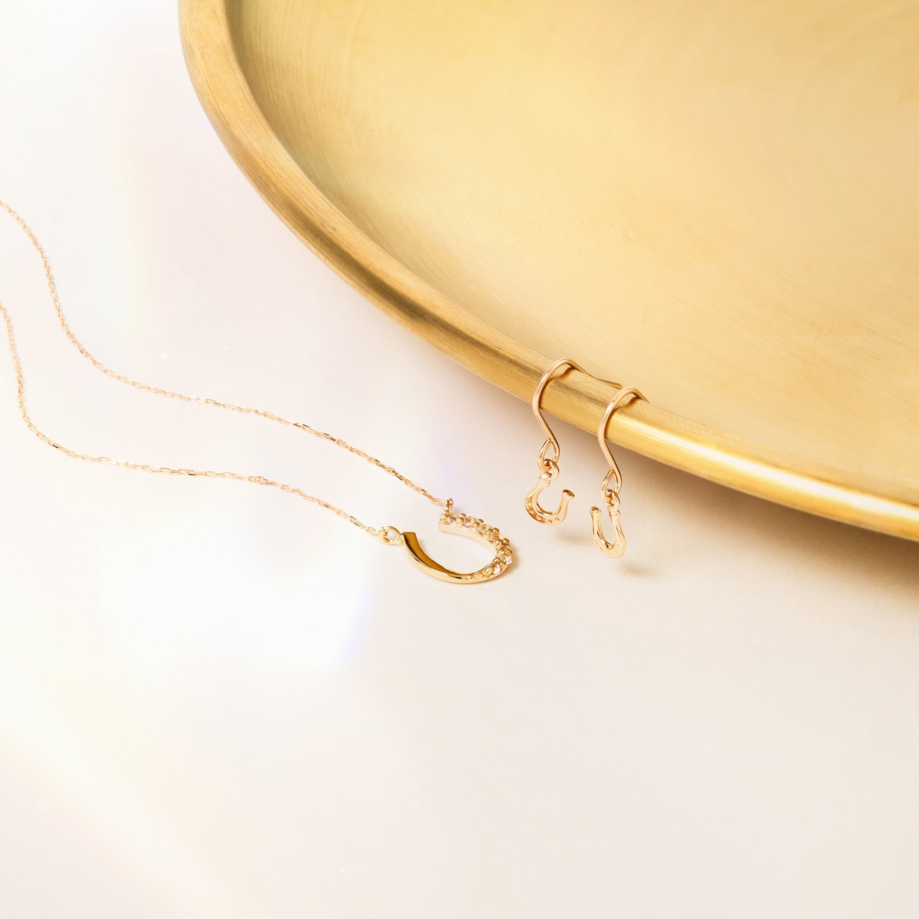【FOR EARS】イエローゴールドの輝きが美しい馬蹄モチーフのフックピアス。シンプルなデザインのピアスは、どんなスタイルにも合わせやすい優秀なアイテム。程よいサイズ感で普段使いしやすいので、ちょっとした贈り物にもおすすめです。【ATTENTION】※熱や紫外線、湿度の影響により変色や変質、劣化の恐れがございます。ご使用後は柔らかな布で汚れを拭き取ってから、直射日光の当たらない場所での保管をお願いいたします。※強い力を加えると変形の原因になりますので、お取り扱いにはご注意ください。