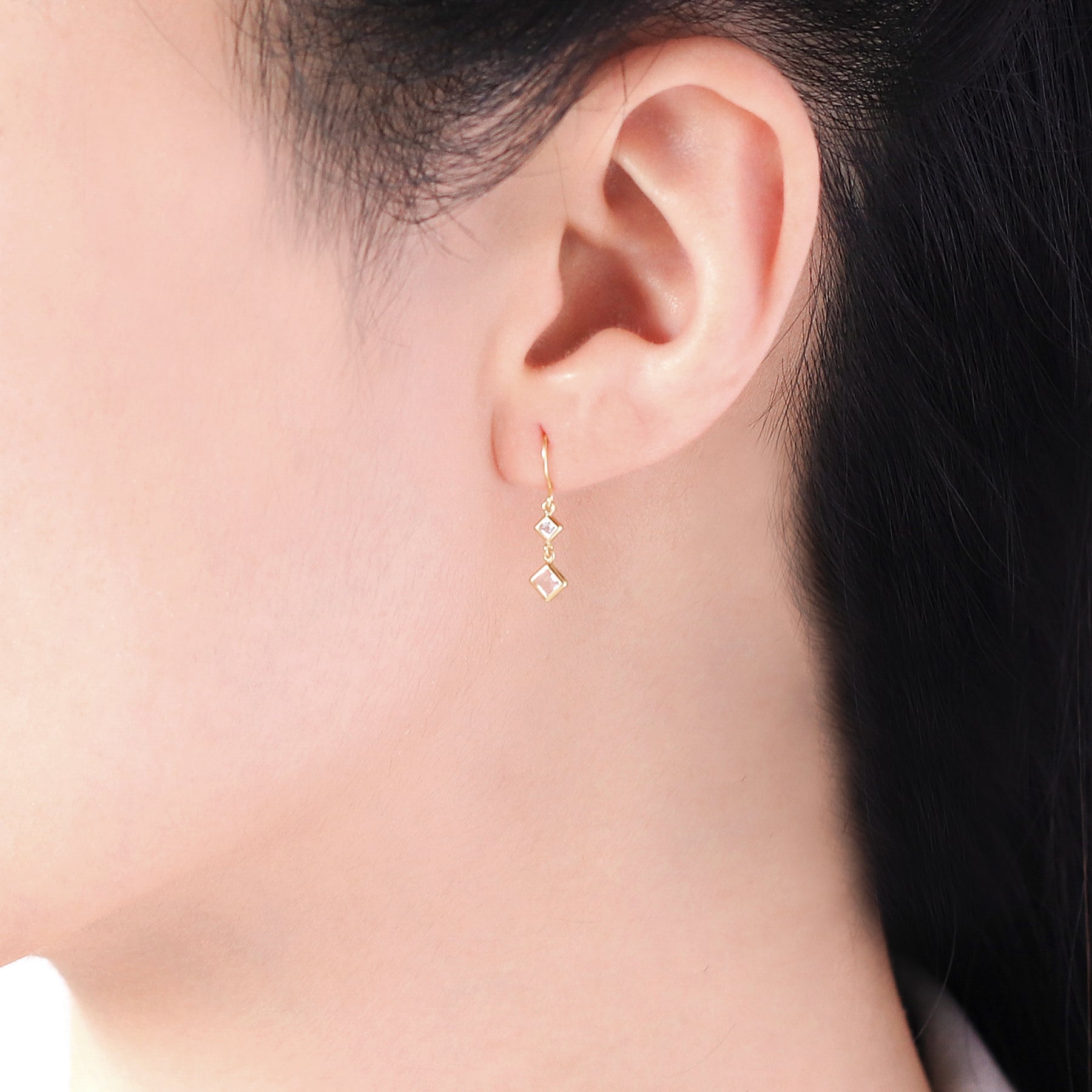 爽やかなグリーンのペリドットが耳元を彩る、K10イエローゴールドのフックピアス。