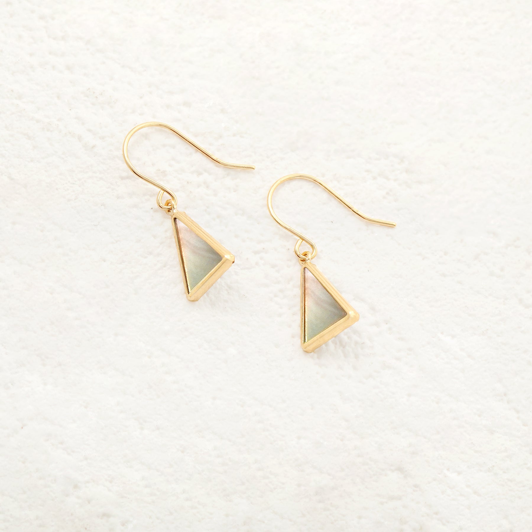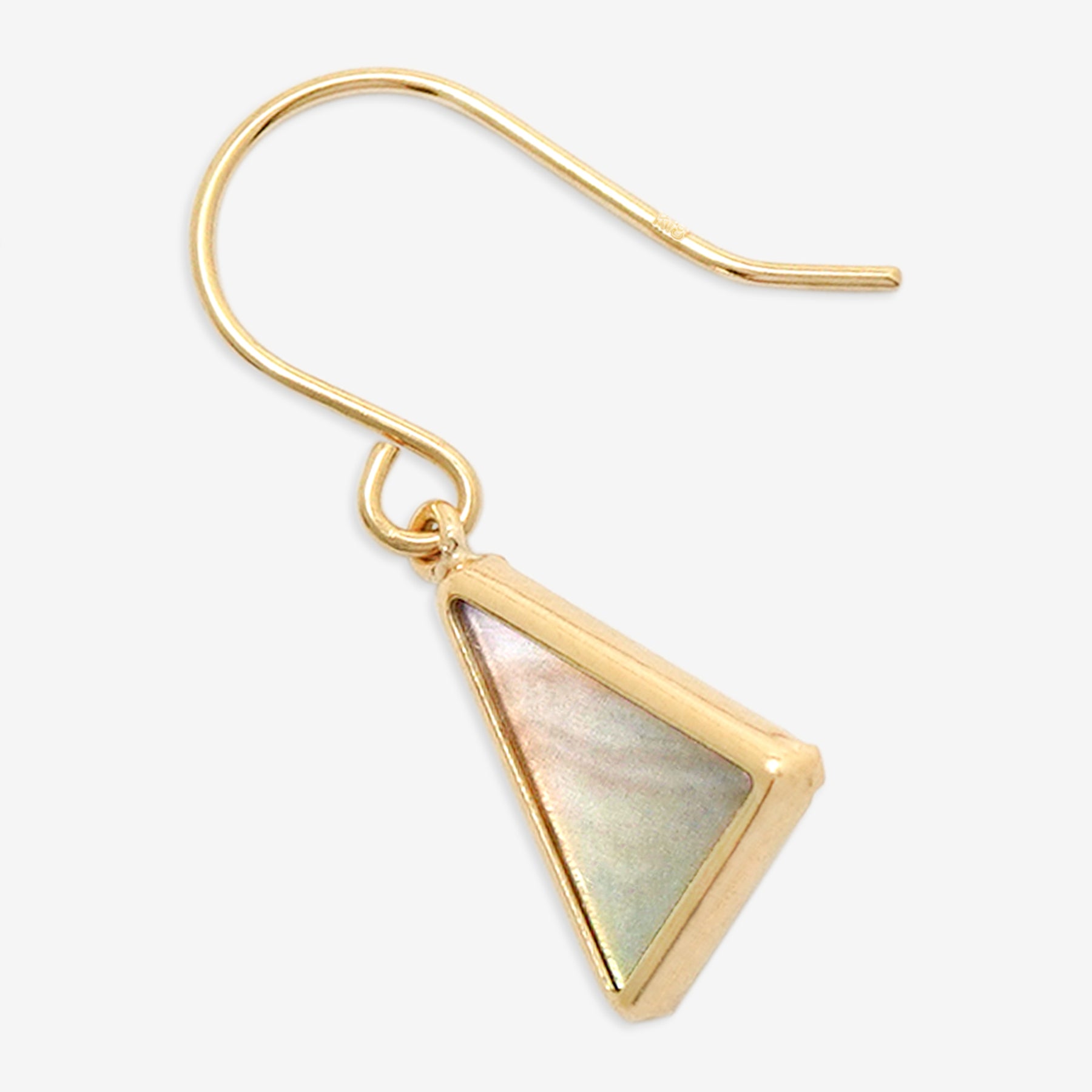 黒蝶貝の深みのある輝きと、イエローゴールドの柔らかな光沢が調和したフックピアス。