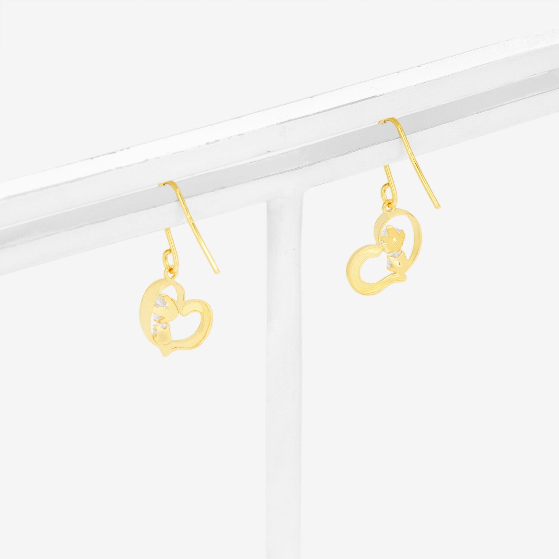 【FOR EARS】ハートモチーフでキュービックジルコニアが輝イエローーゴールドのピアス。耳元でゆれるモチーフできらめくキュービックジルコニアが、表情を明るくし、フェミニンな印象に。シンプルなデザインのピアスは、スタイルを選ばず、様々なシーンでお使いいただけます。【ATTENTION】※熱や紫外線、湿度の影響により変色や変質、劣化の恐れがございます。ご使用後は柔らかな布で汚れを拭き取ってから、直射日光の当たらない場所での保管をお願いいたします。※強い力を加えると変形の原因になりますので、お取り扱いにはご注意ください。