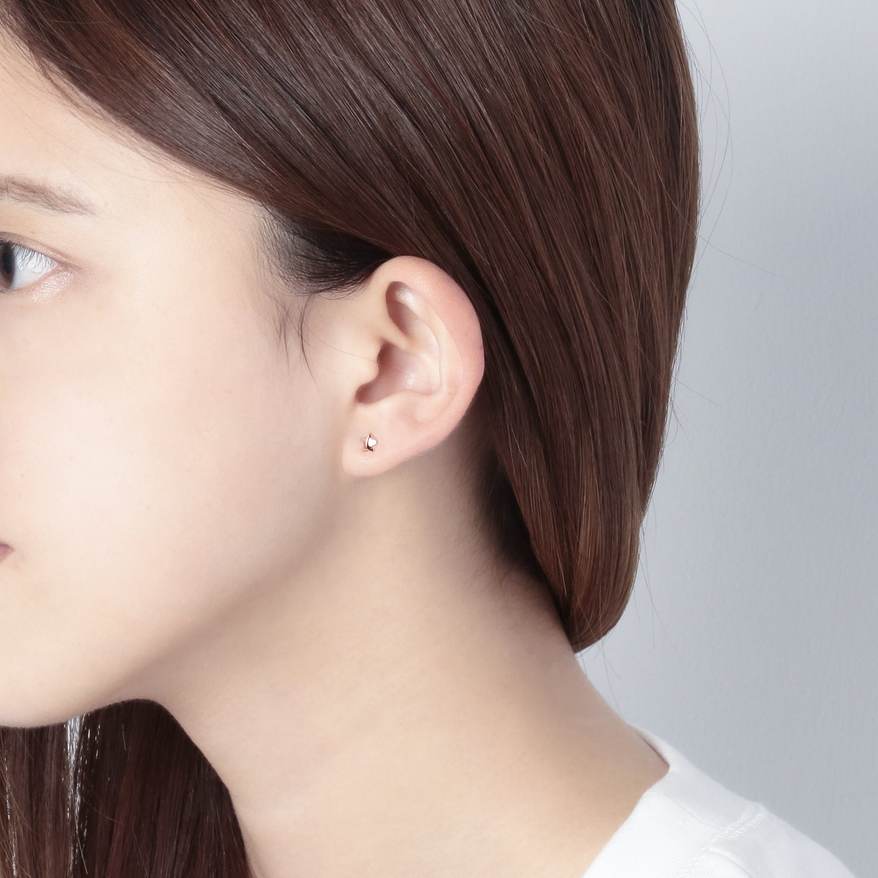 ピンクゴールドが輝く地金のピアスは、柔らかな色合いで優しい雰囲気に。