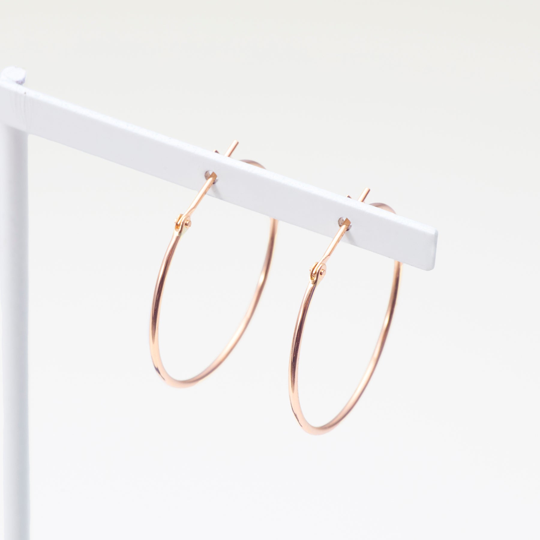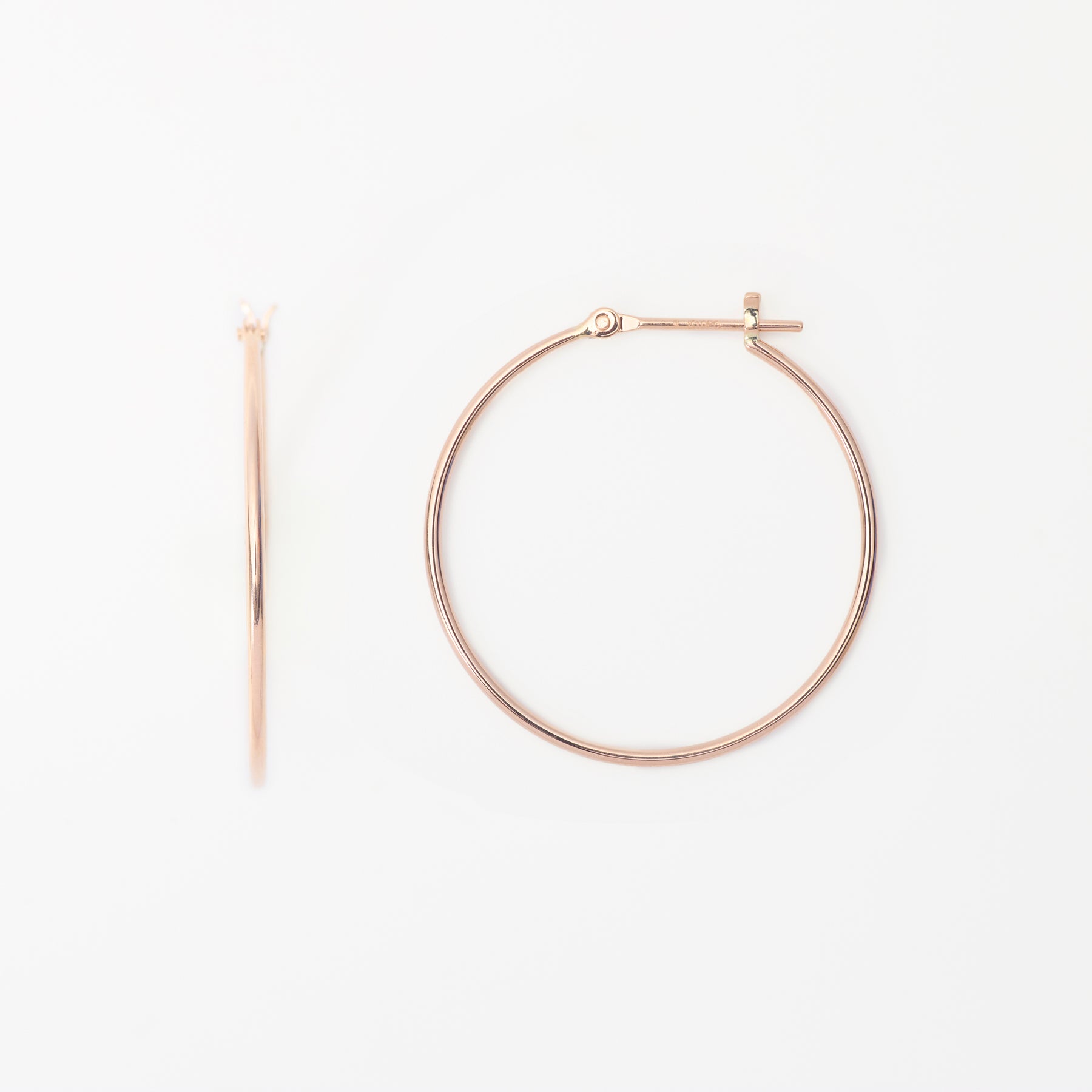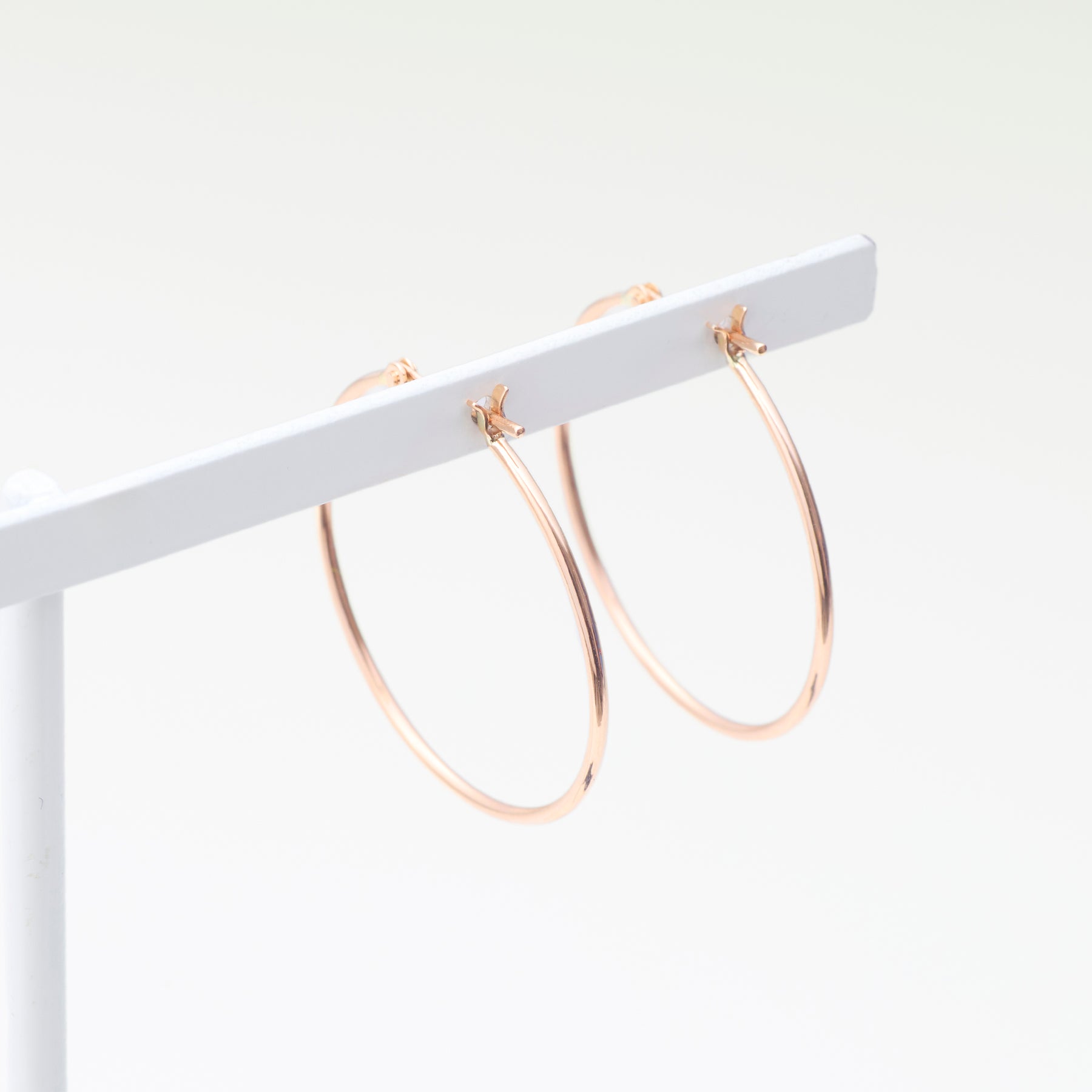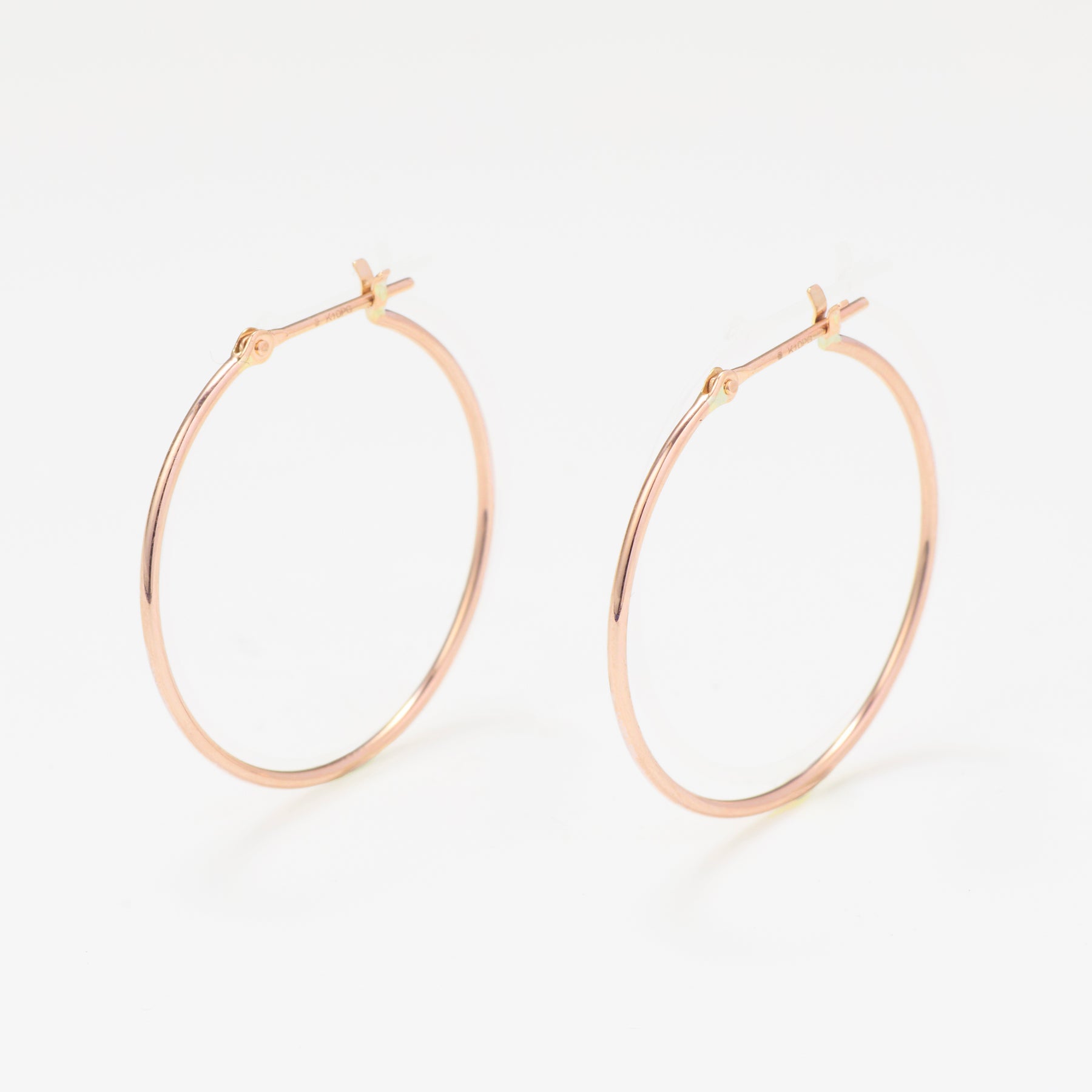 ピンクゴールドのやわらかな色味と深みのある艶が魅力的なフープピアス。