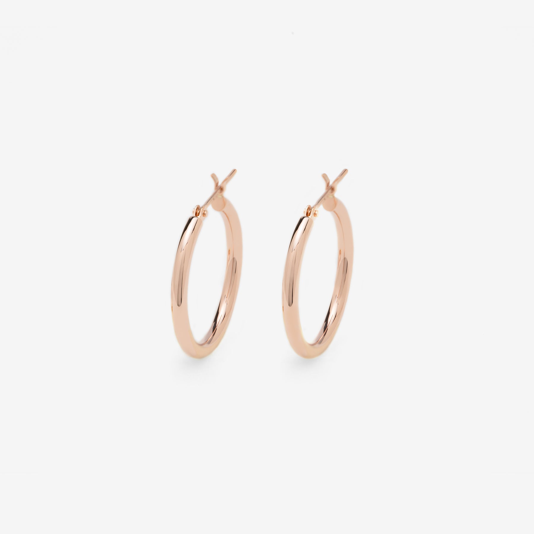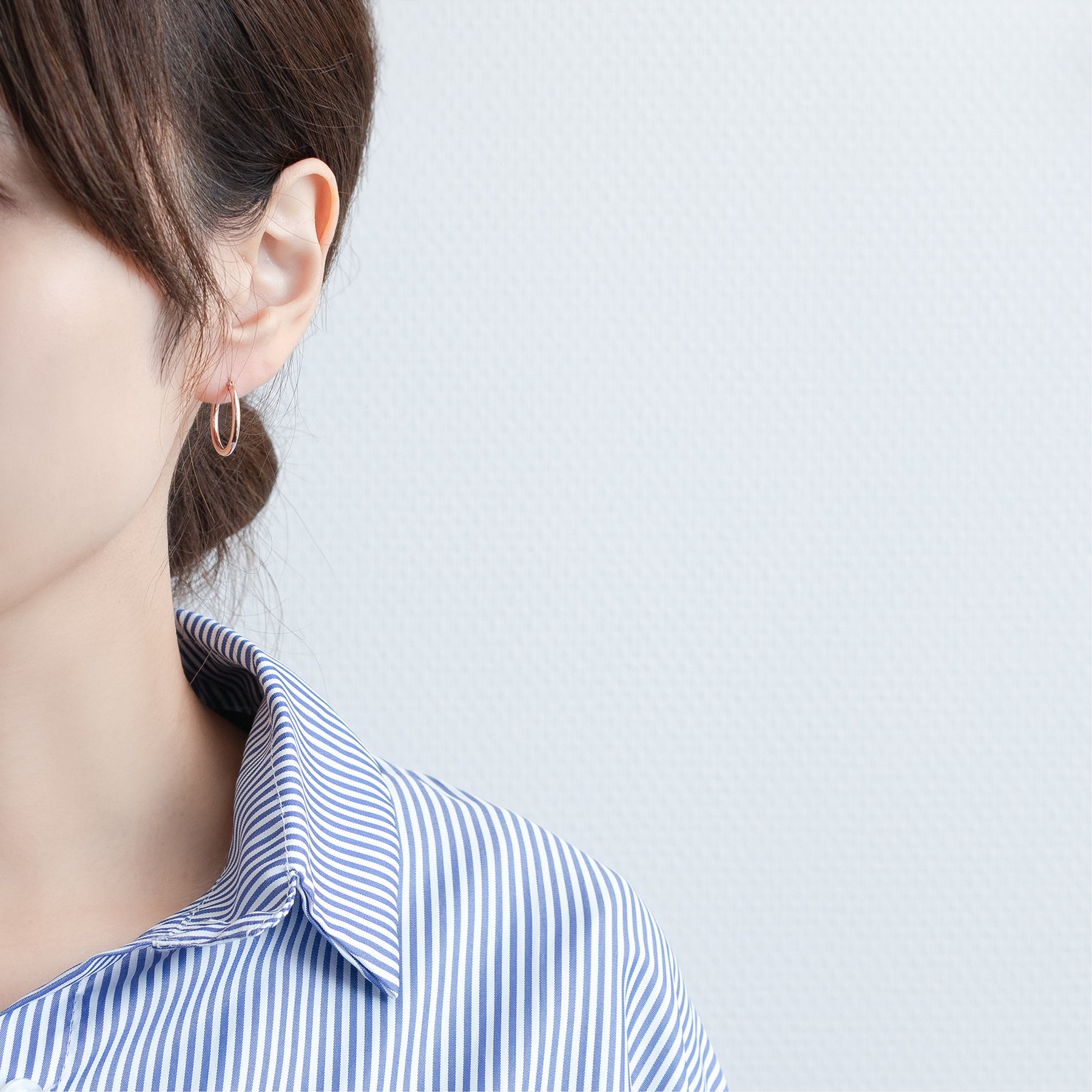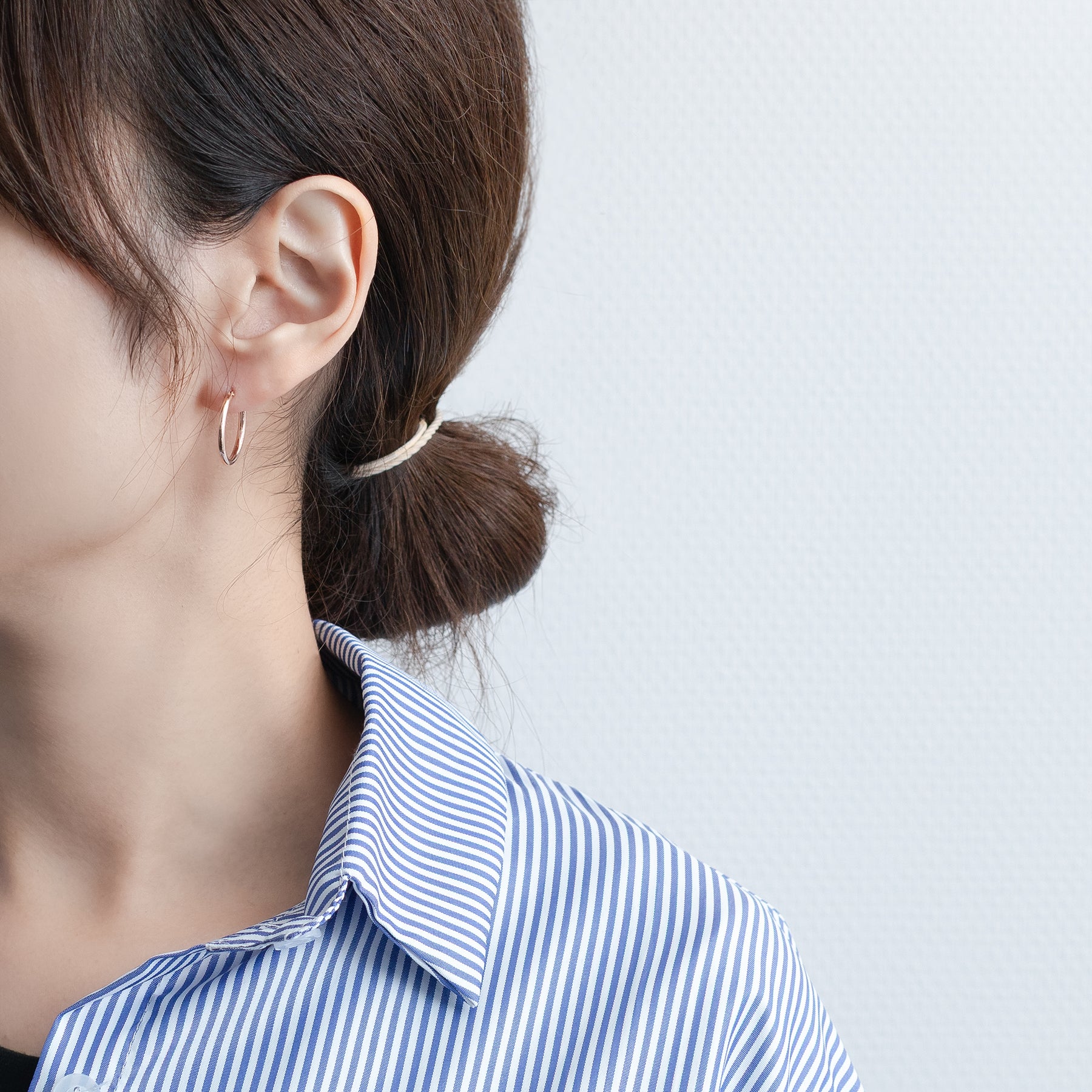 繊細な色合いが魅力のピンクゴールドを使用した、シンプルで洗練されたフープピアス。