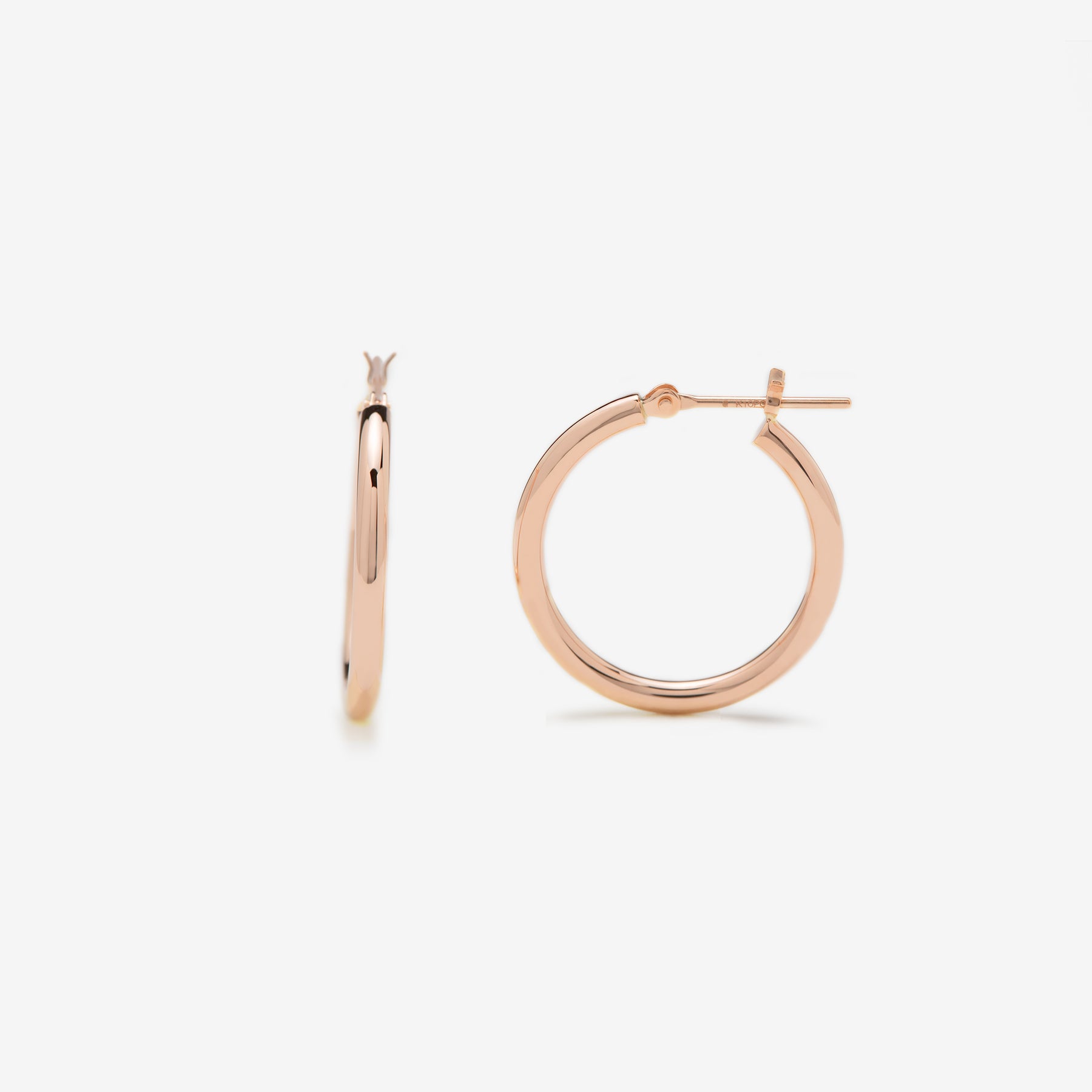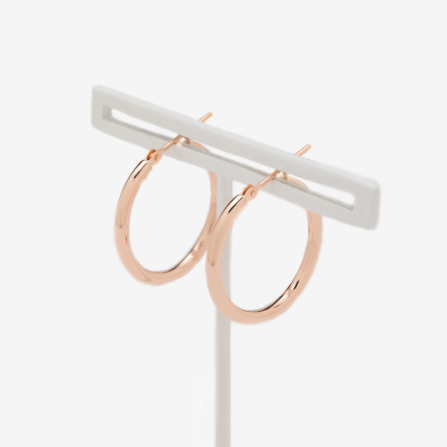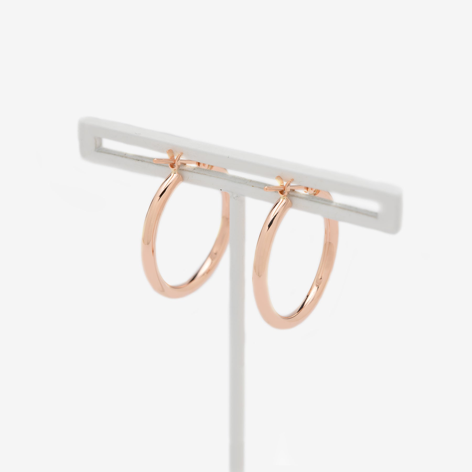 繊細な色合いが魅力のピンクゴールドを使用した、シンプルで洗練されたフープピアス。