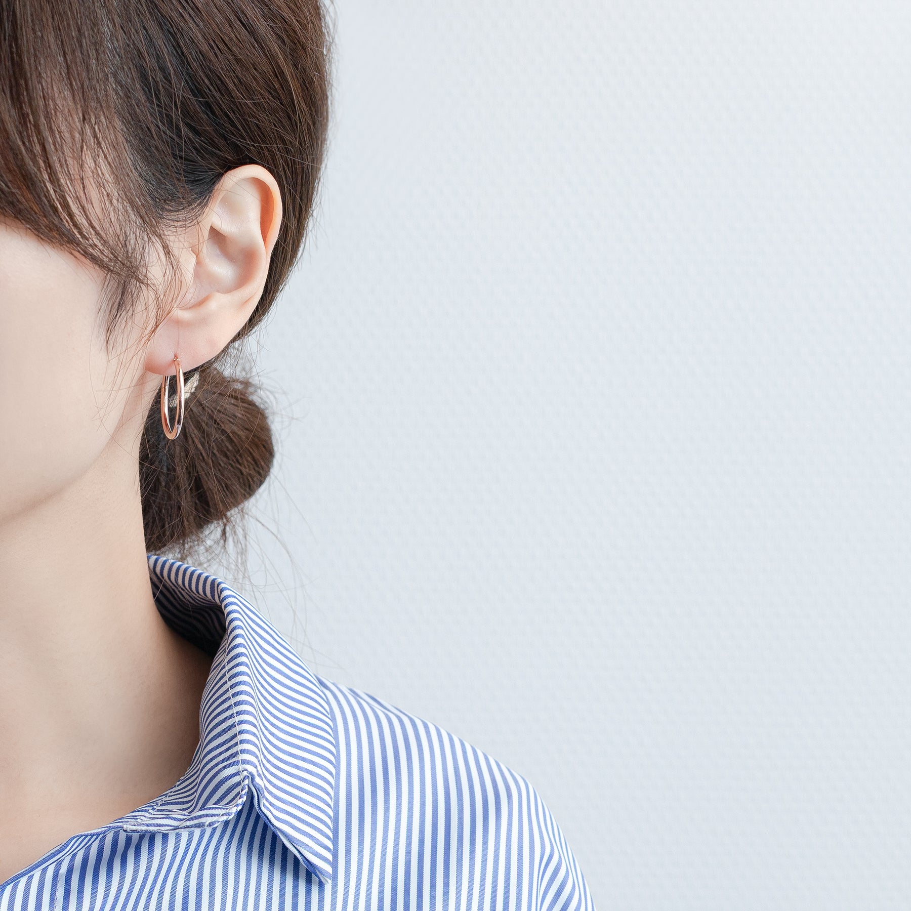 【FOR EARS】繊細な色合いが魅力のピンクゴールドを使用した、シンプルで洗練されたフープピアス。程よい存在感で顔まわりにアクセントを添え、華やかさと立体感を演出します。ピンクゴールドの柔らかな光沢が、肌に優しく溶け込み、上品な印象に。流行に左右されないミニマルなデザインは、長くご愛用いただける定番アイテムとしておすすめです。【ATTENTION】※熱や紫外線、湿度の影響により変色や変質、劣化の恐れがございます。ご使用後は柔らかな布で汚れを拭き取ってから、直射日光の当たらない場所での保管をお願いいたします。※強い力を加えると変形の原因になりますので、お取り扱いにはご注意ください。
