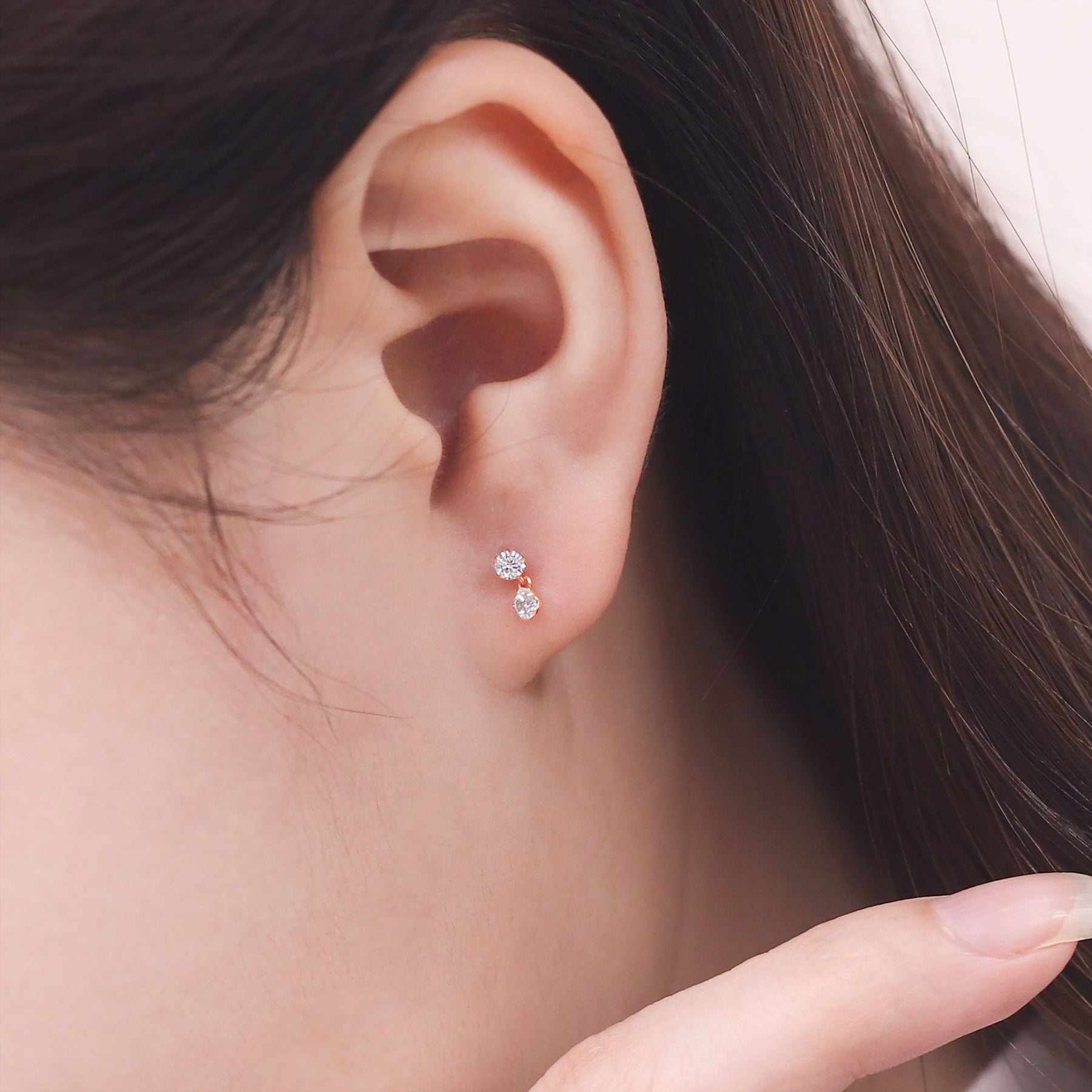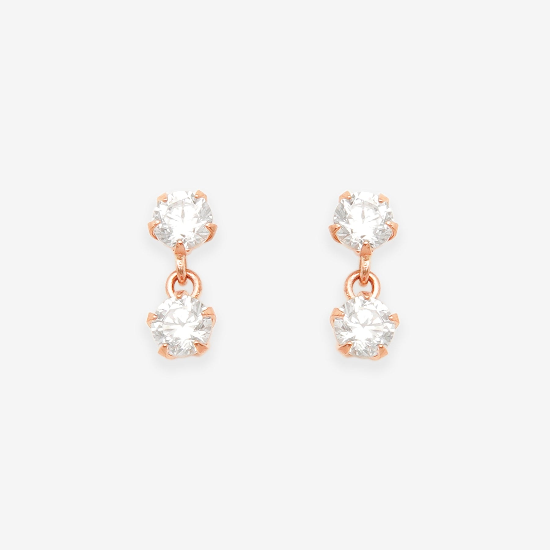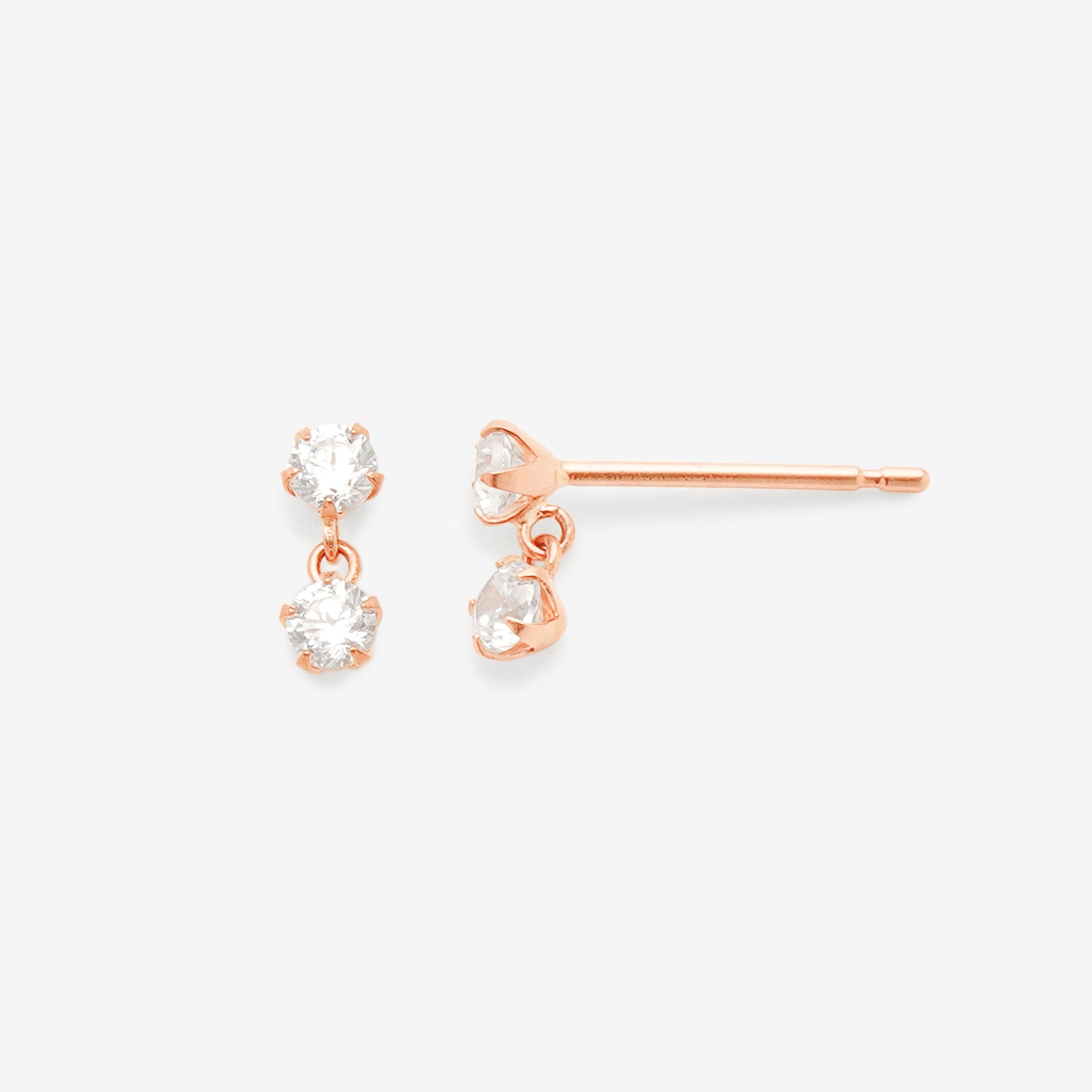 【FOR EARS】キュービックジルコニアが揺れるピンクゴールドのピアス。耳元でキュービックジルコニアがキラキラと輝き、表情を明るく見せ、フェミニンな印象に。どんなスタイルにも合わせやすいシンプルなピアスは、贈り物にもおすすめです。【ATTENTION】※熱や紫外線、湿度の影響により変色や変質、劣化の恐れがございます。ご使用後は柔らかな布で汚れを拭き取ってから、直射日光の当たらない場所での保管をお願いいたします。※強い力を加えると変形の原因になりますので、お取り扱いにはご注意ください。