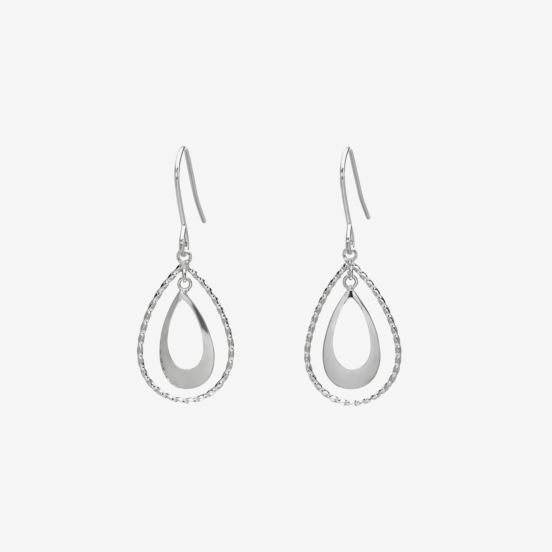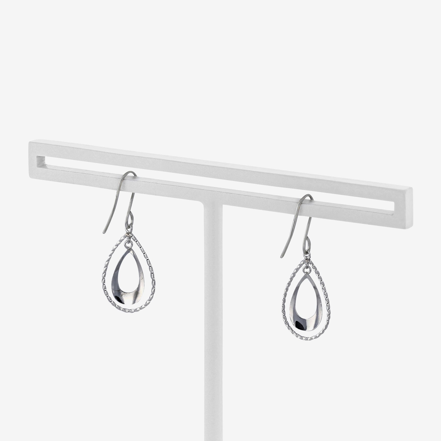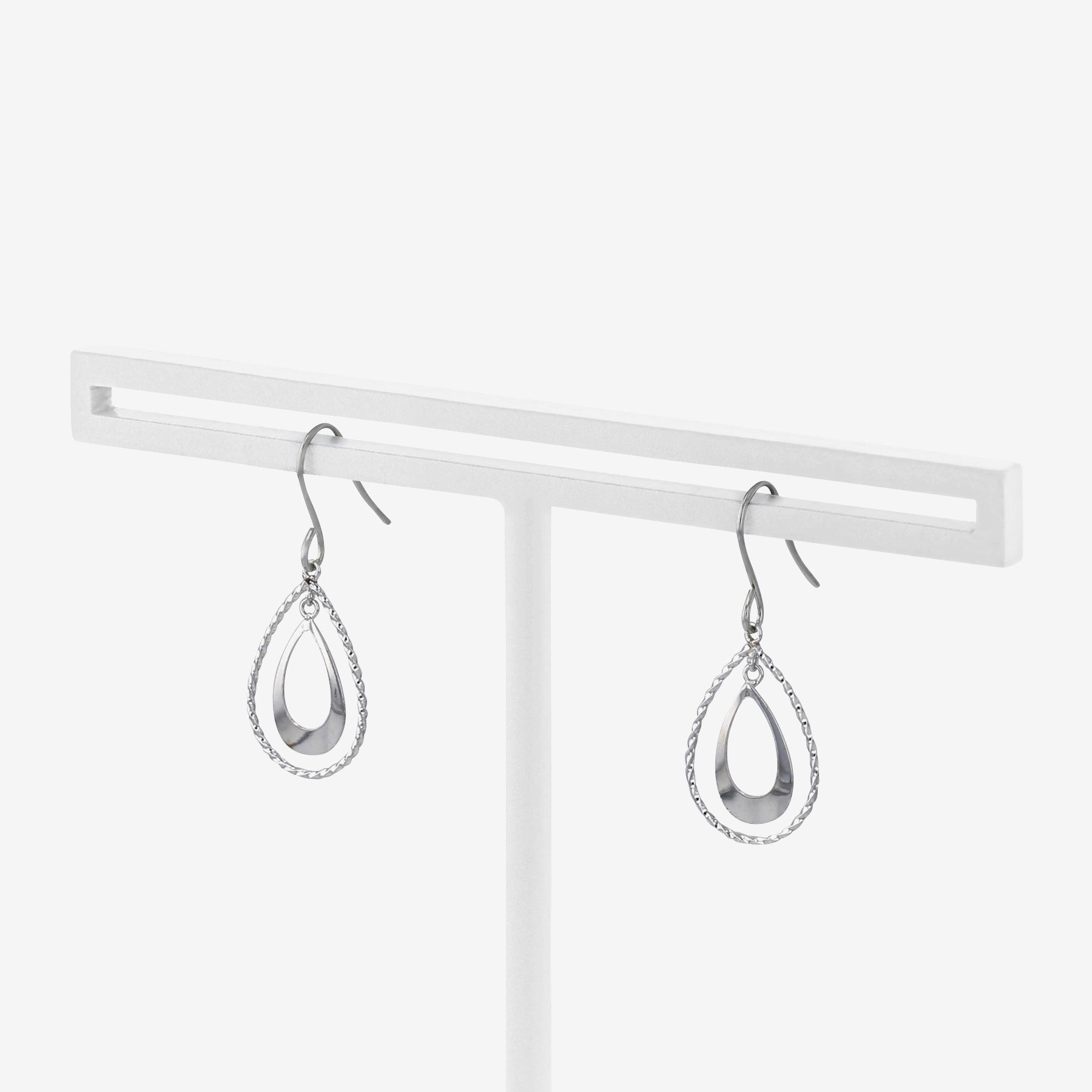 しずくモチーフが耳元でゆれるホワイトゴールドのフックピアス。