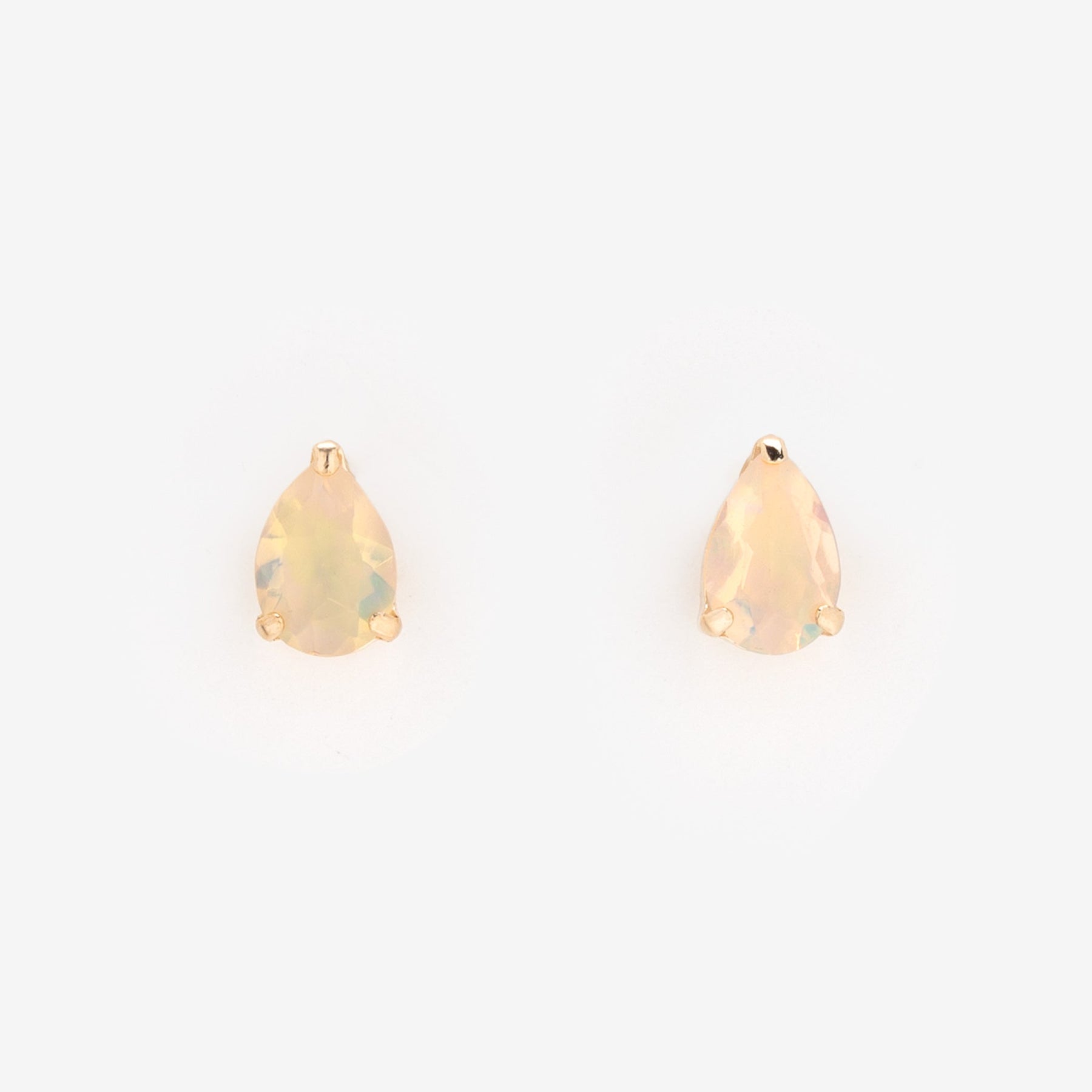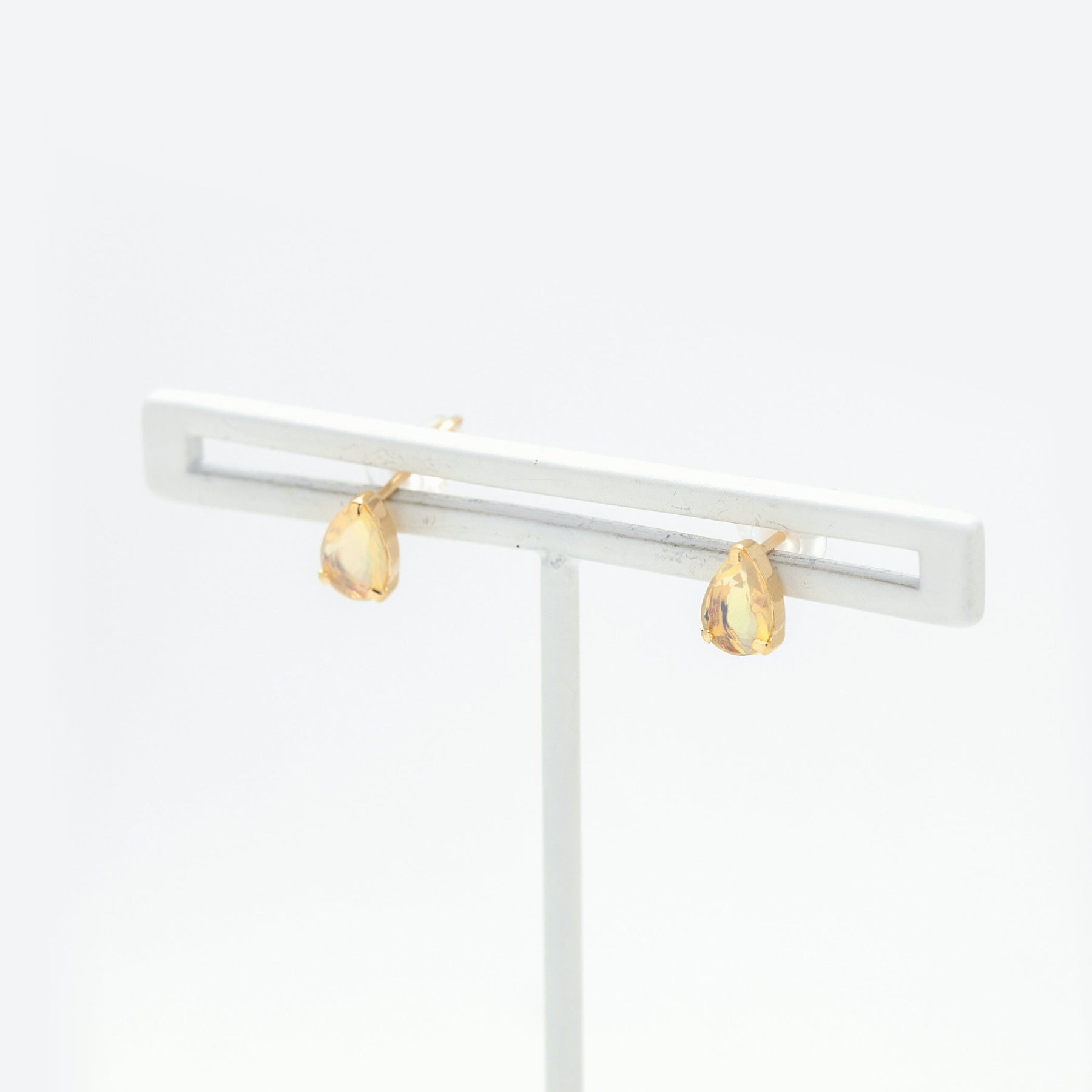 透明感の遊色効果があるウォーターオパールが印象的なイエローゴールドのピアス。