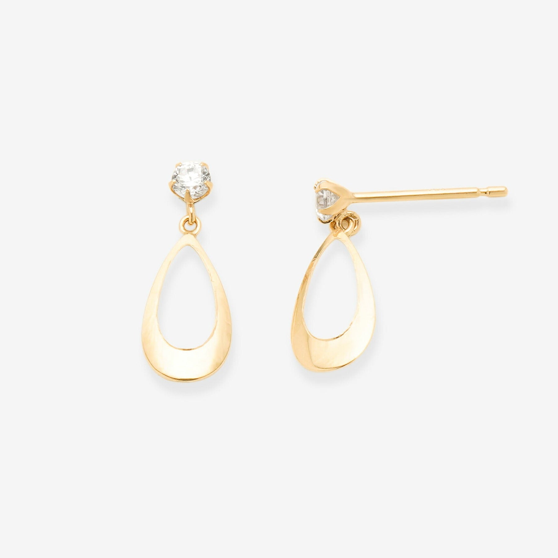 【FOR EARS】キュービックジルコニアがきらめくイエローゴールドのピアス。しずくモチーフが優しく揺れるので、上品な印象に。華やかな印象のイエローゴールドのピアスは、表情を明るくしてくれます。【ATTENTION】※熱や紫外線、湿度の影響により変色や変質、劣化の恐れがございます。ご使用後は柔らかな布で汚れを拭き取ってから、直射日光の当たらない場所での保管をお願いいたします。※強い力を加えると変形の原因になりますので、お取り扱いにはご注意ください。