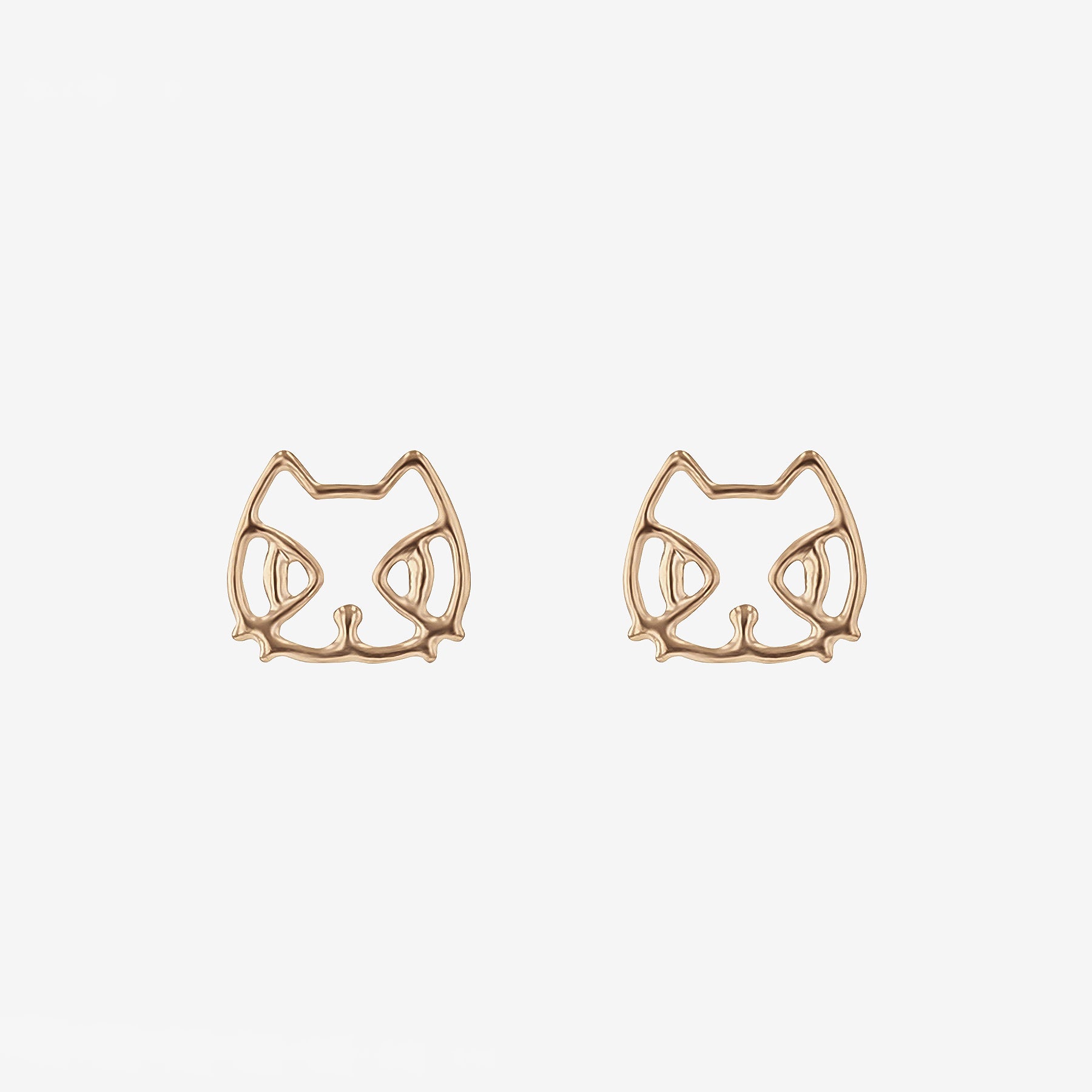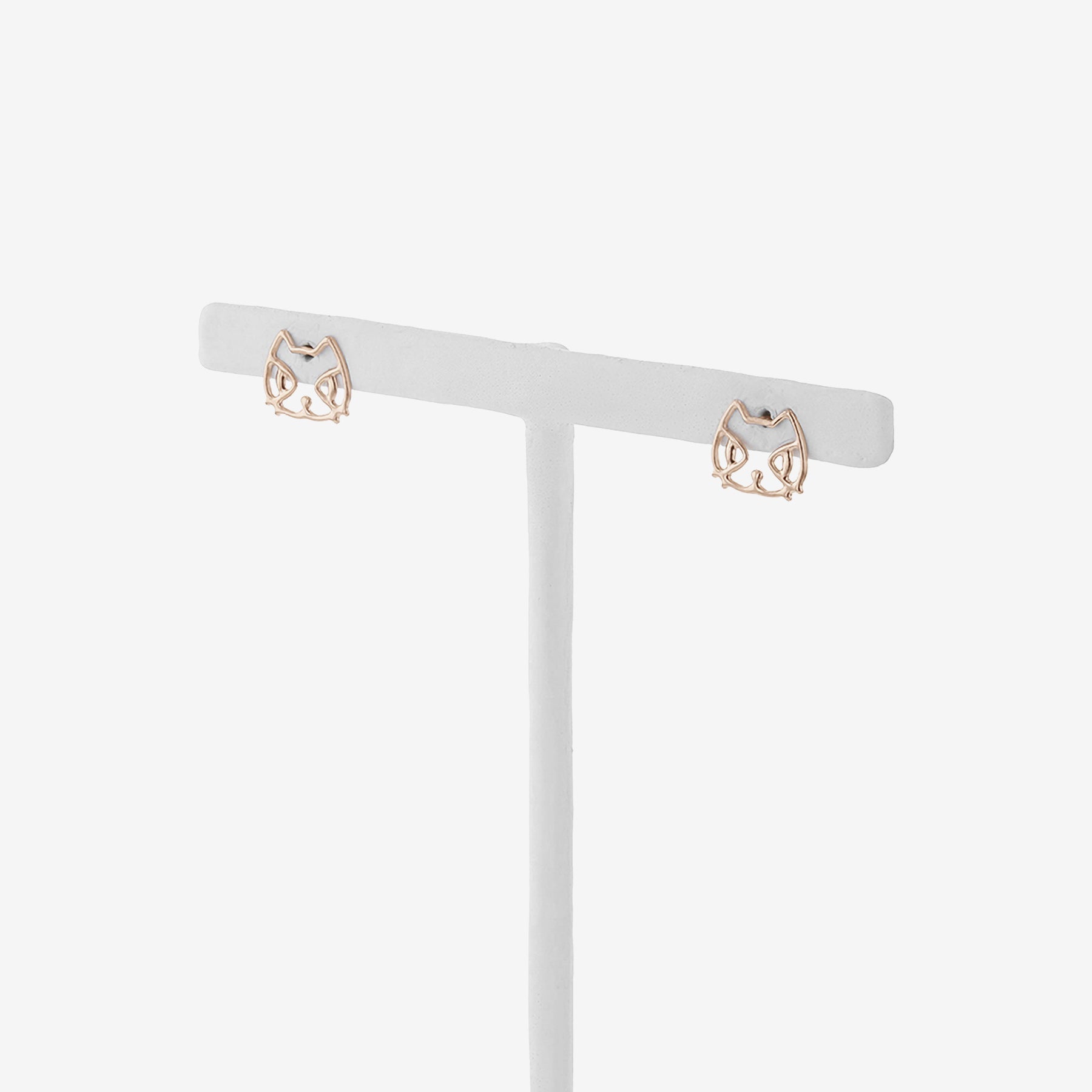 可愛らしいネコモチーフが耳元でゆれるピンクゴールドのピアス。