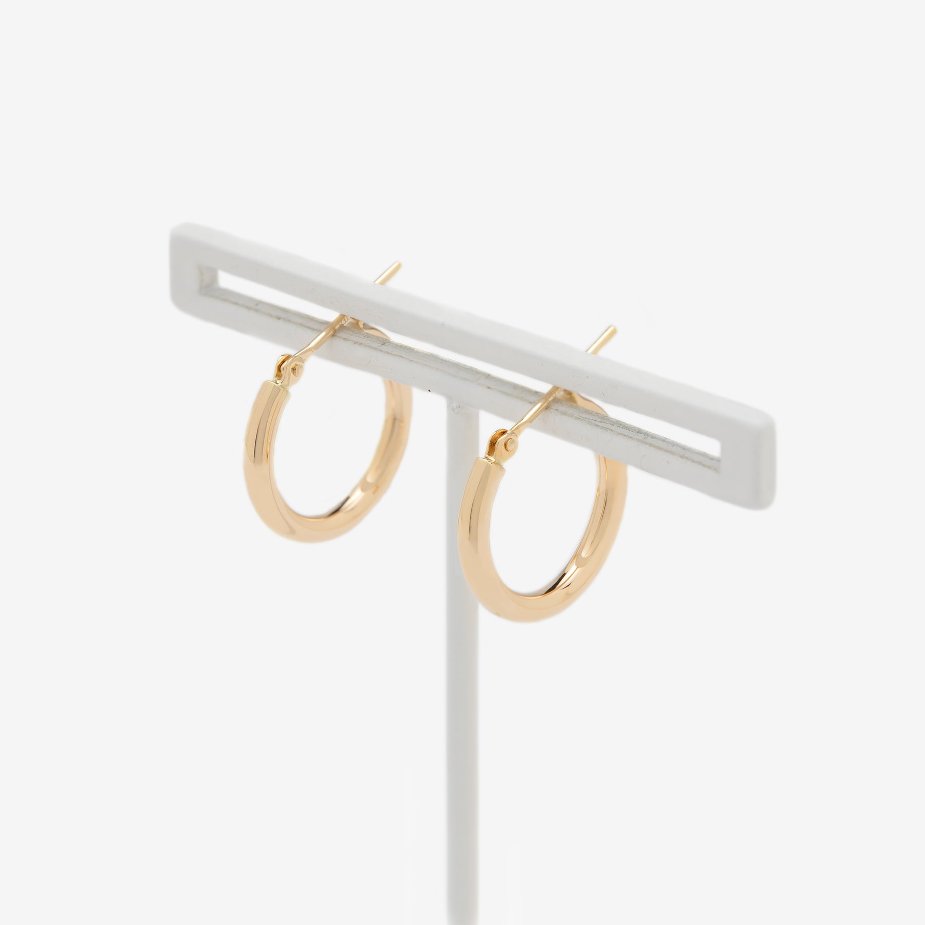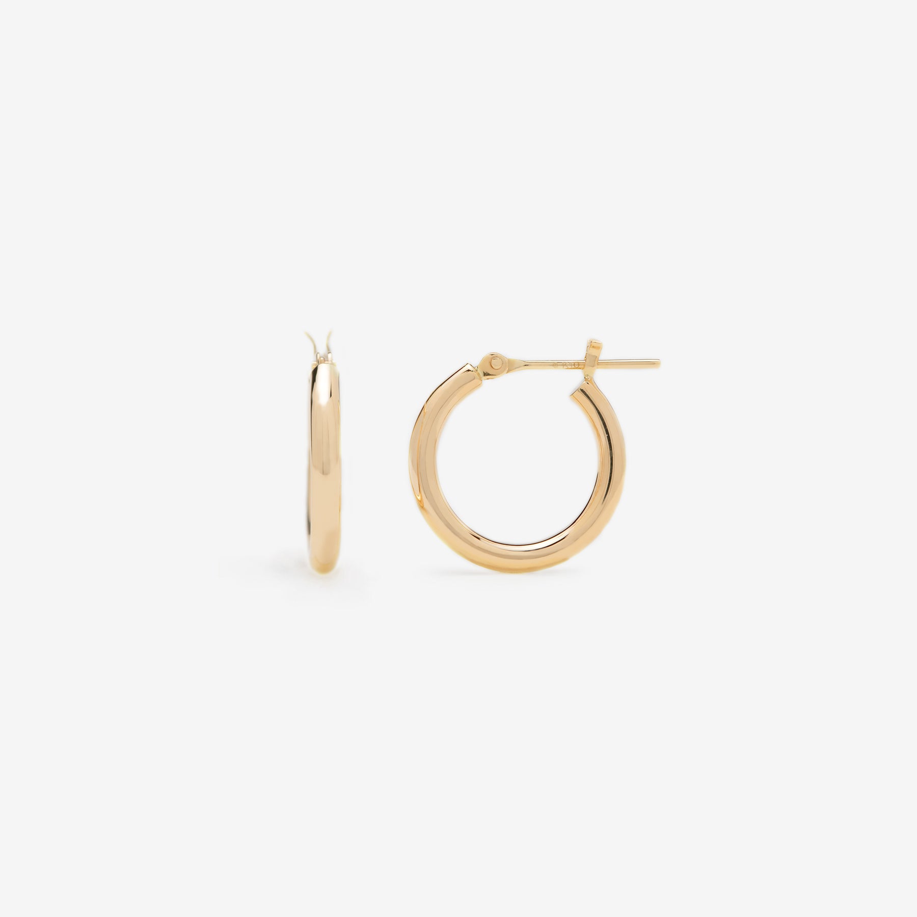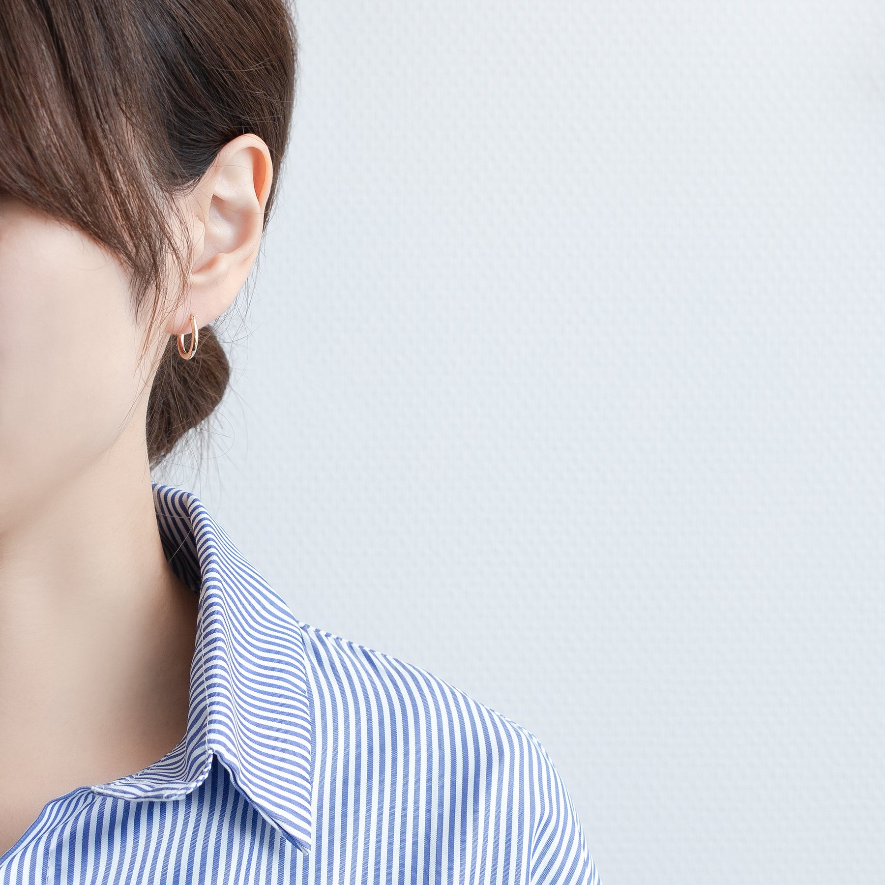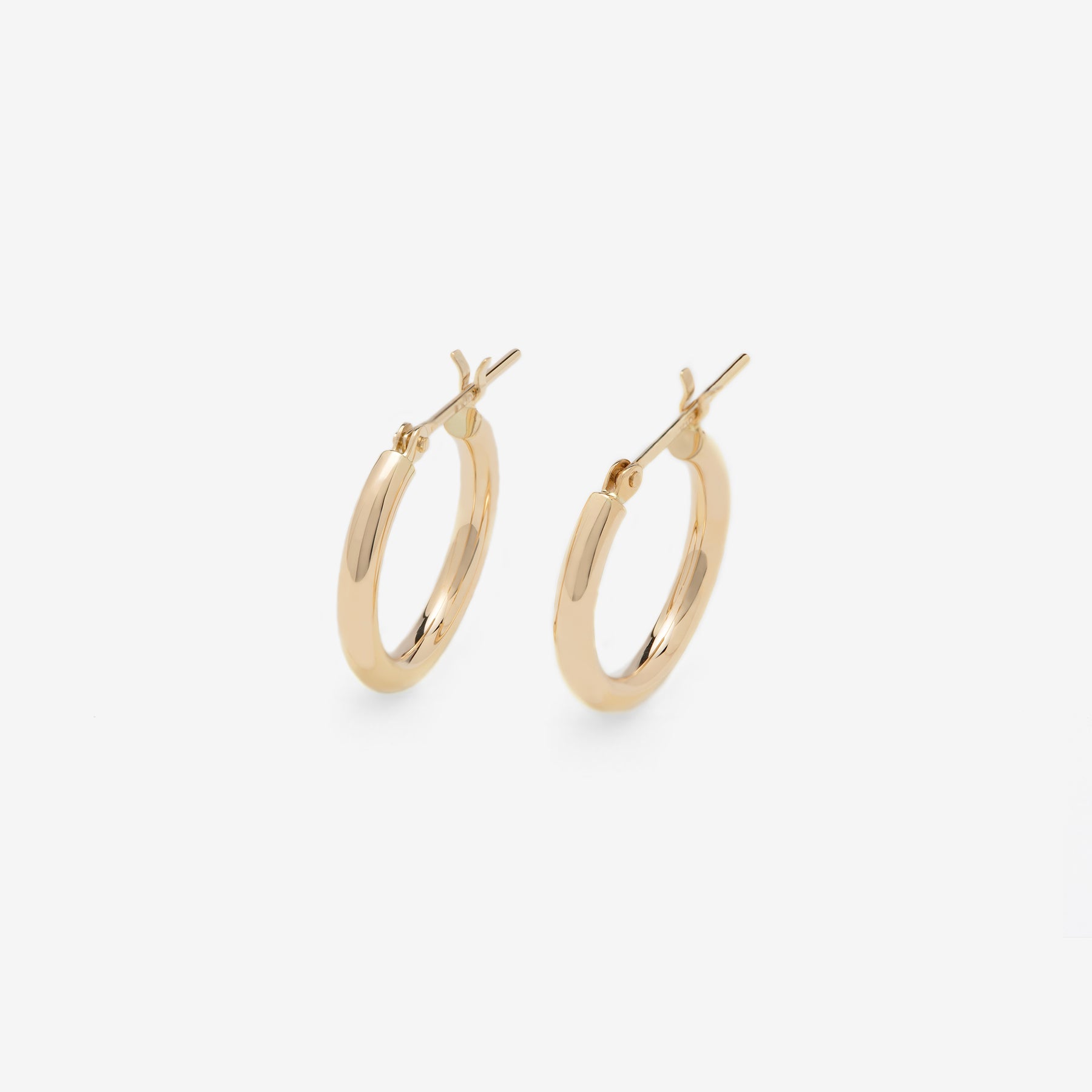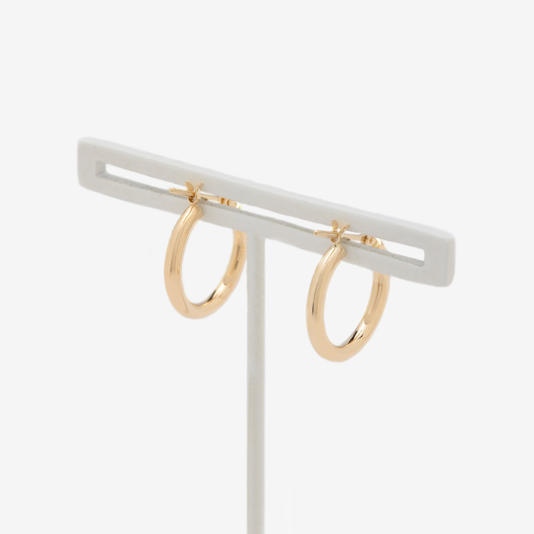 イエローゴールドの美しさが際立つ、シンプルで洗練されたフープピアス。