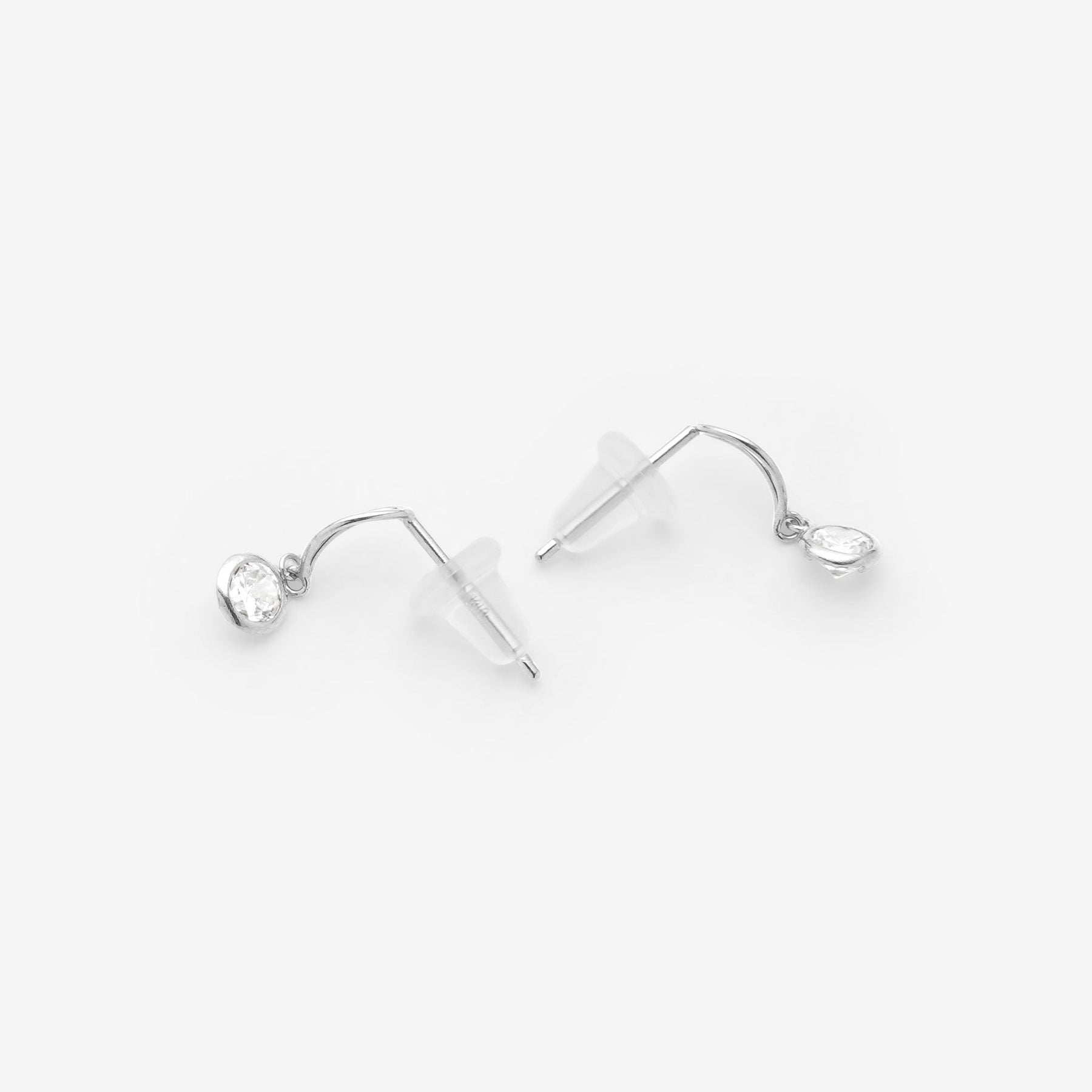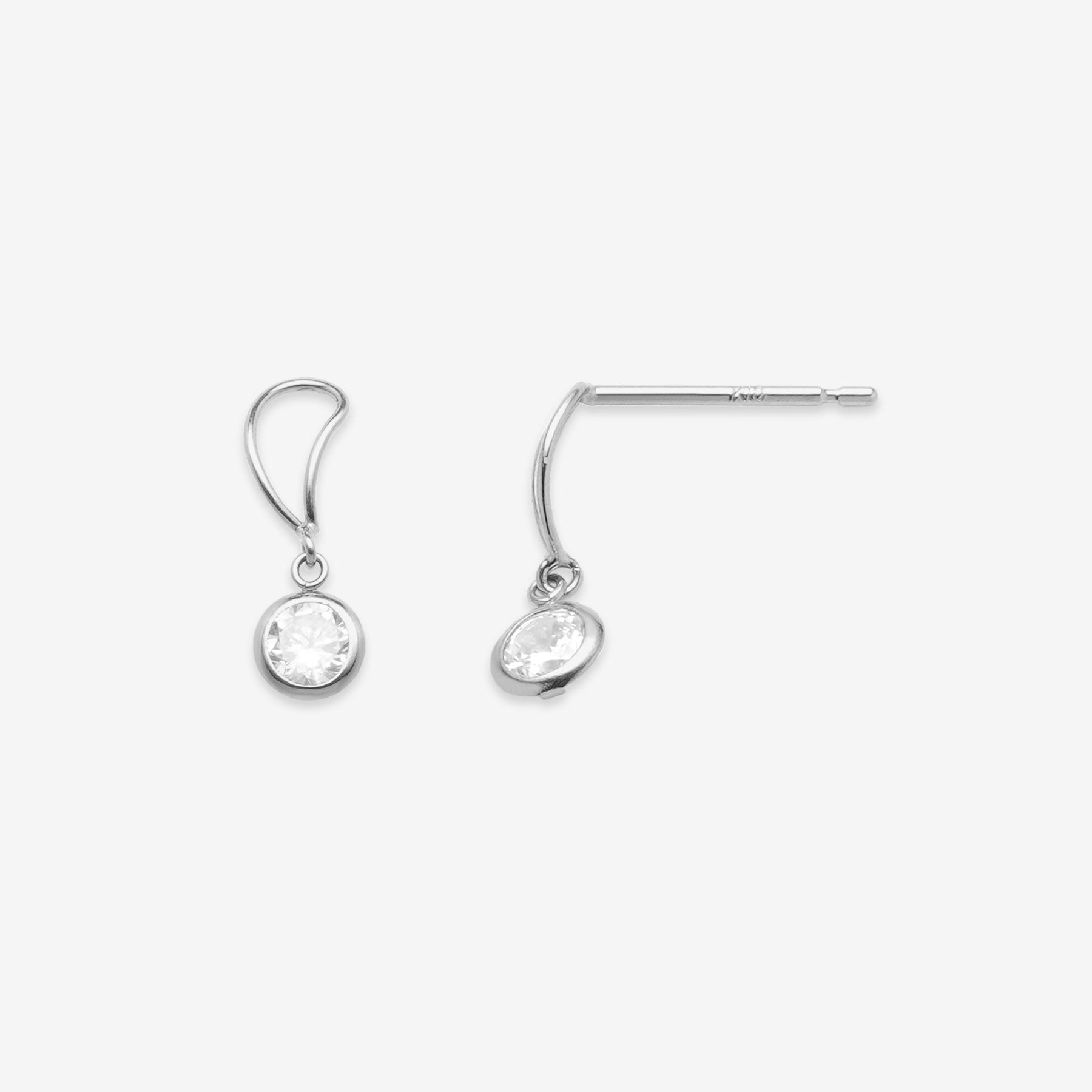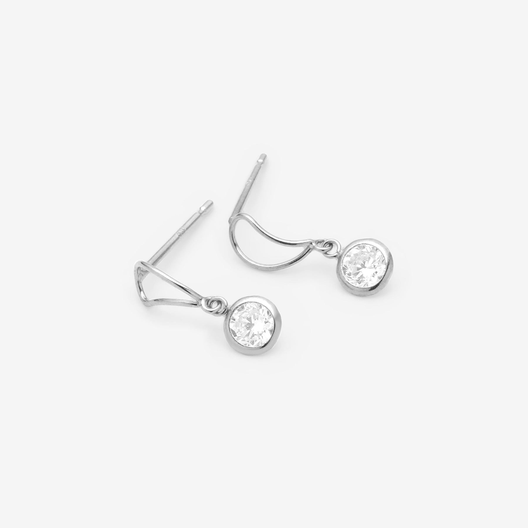 透明感のあるキュービックジルコニアが揺れる、ホワイトゴールドのピアス。