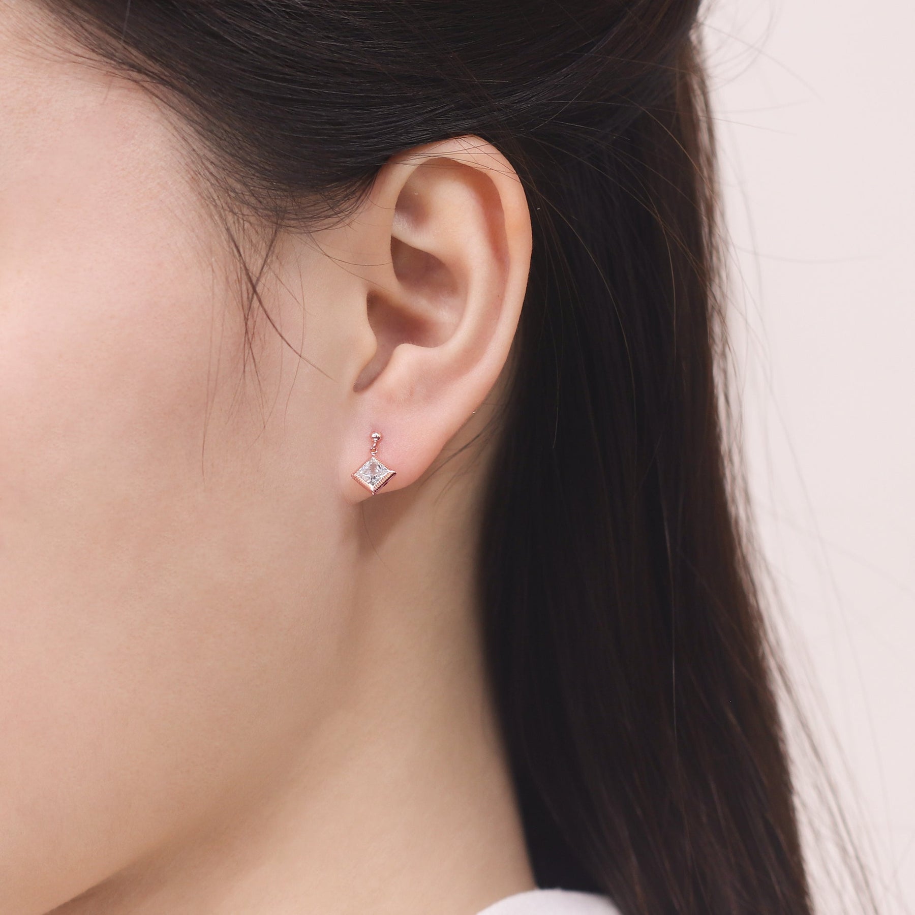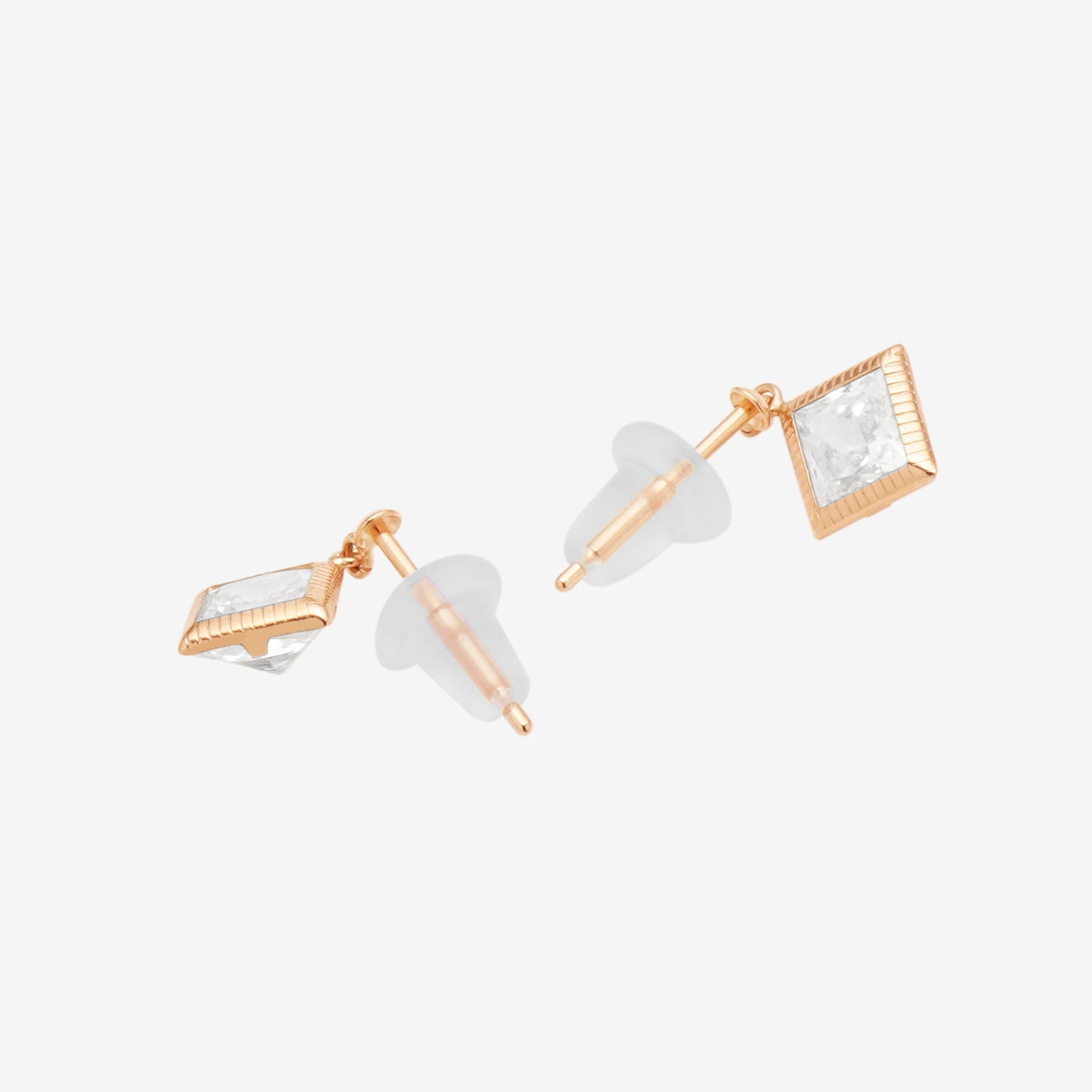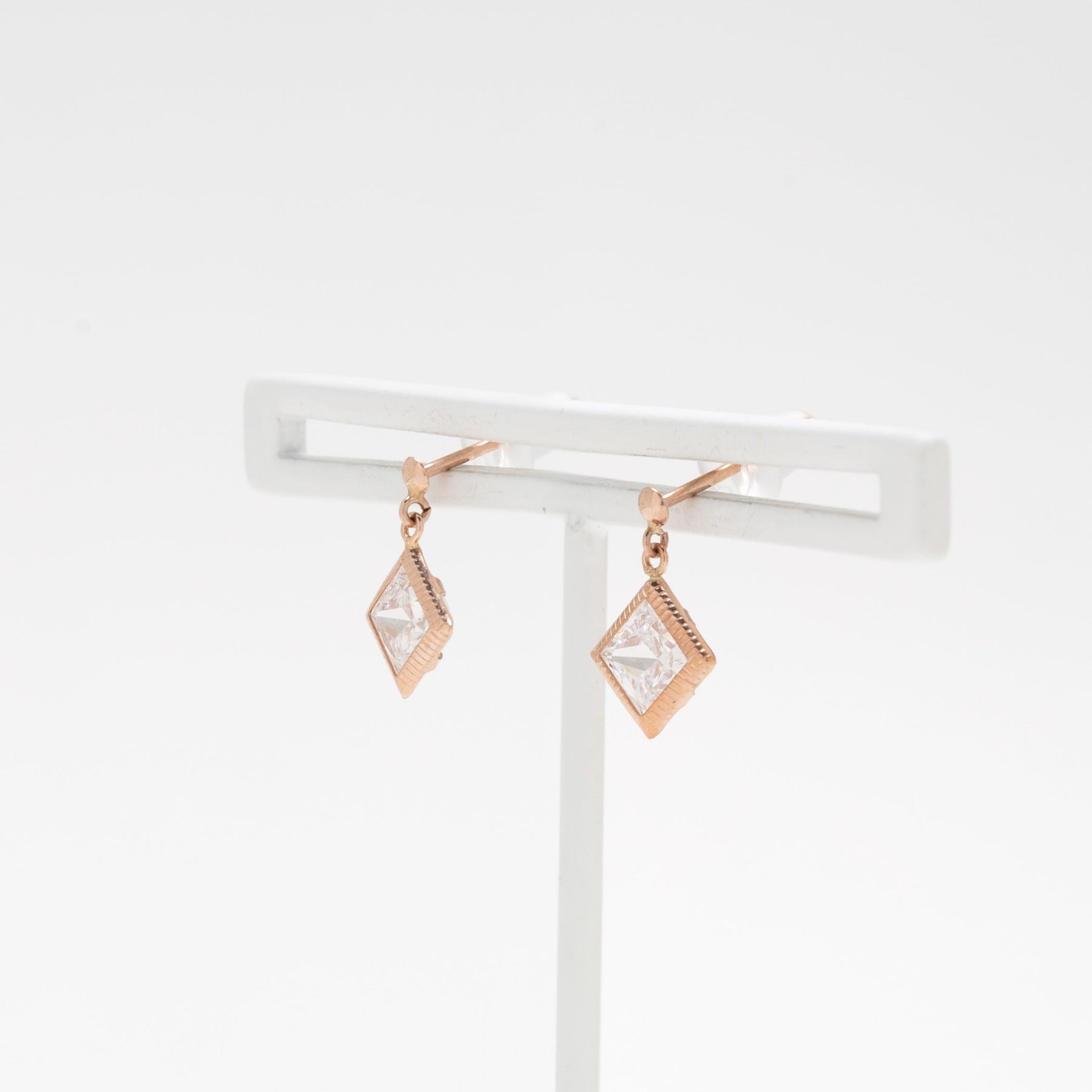 スクエアカットのキュービックジルコニアが輝くピンクゴールドのピアス。