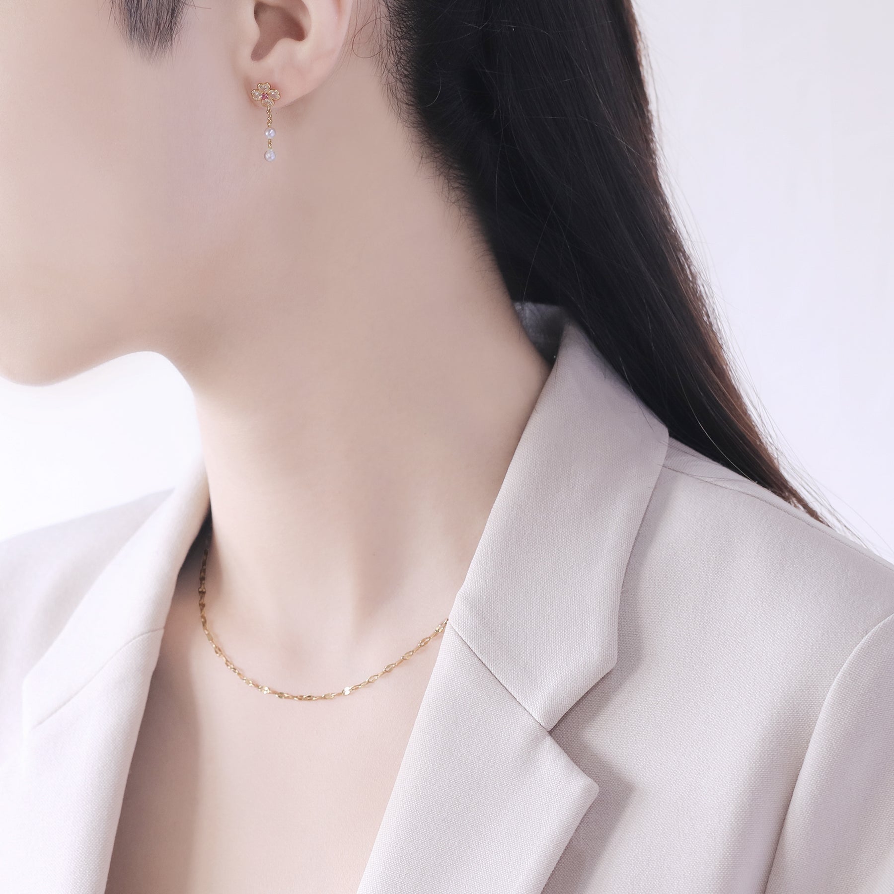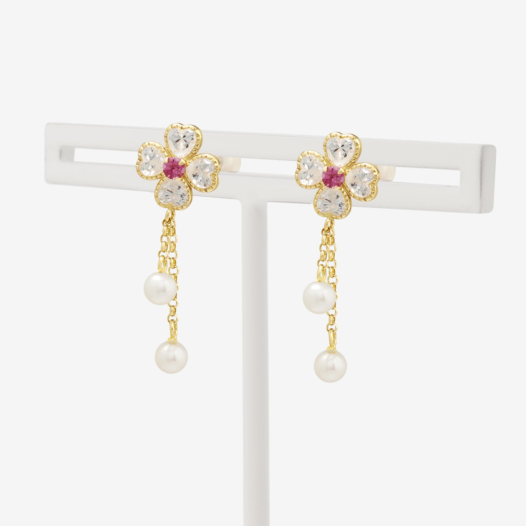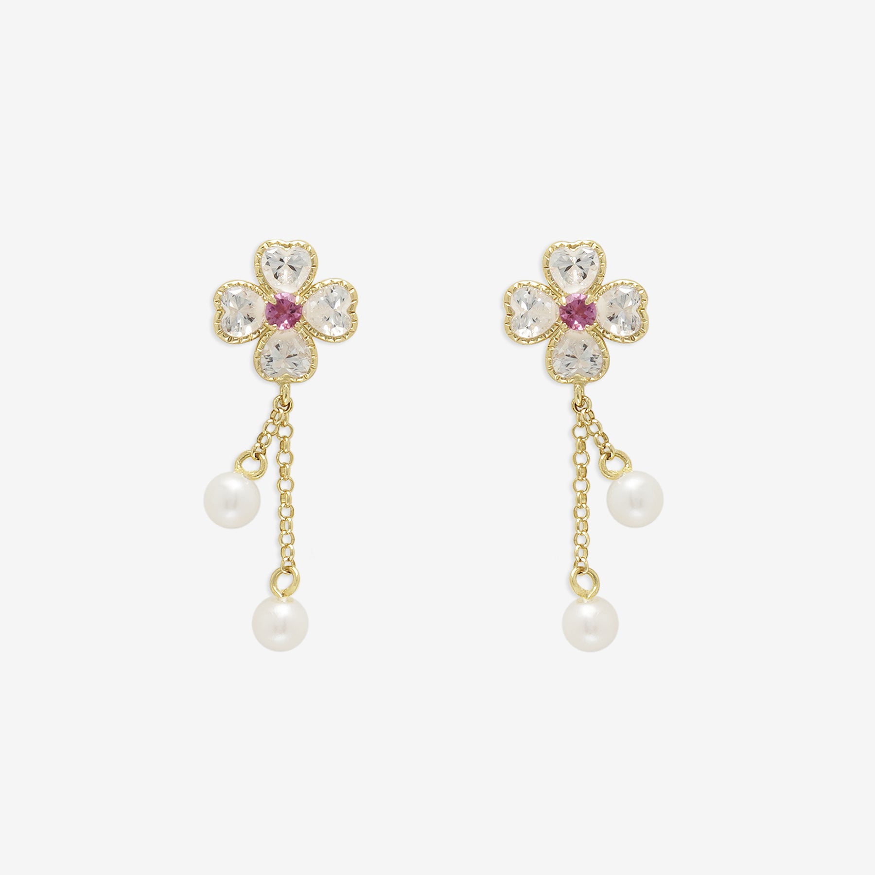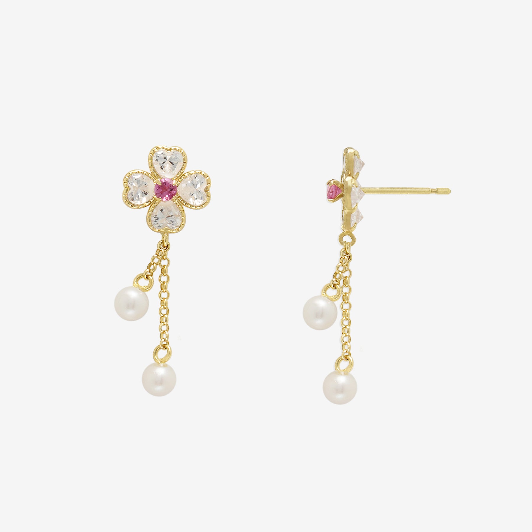 【FOR EARS】クローバーモチーフでピンクトルマリンが彩るイエローゴールドのピアス。キュービックジルコニアが鮮やかなピンクトルマリンを引き立て、優雅に揺れる淡水パールが動きに合わせて上品な印象を演出します。華やかさと可憐さを兼ね備えたデザインは、特別な日の装いを一層引き立ててくれます。フェミニンなスタイルにはもちろん、シンプルなコーディネートにも映える存在感。自分へのご褒美や、大切な人へのギフトにもおすすめのアイテムです。ピンクトルマリンは10月の誕生石です。石言葉は「愛情」「癒し」。心身を浄化し、心の安定を招いてくれるため、ストレスなどを和らげてくれると言われてます。【ATTENTION】※熱や紫外線、湿度の影響により変色や変質、劣化の恐れがございます。ご使用後は柔らかな布で汚れを拭き取ってから、直射日光の当たらない場所での保管をお願いいたします。※天然石は素材の特性により、色や形、風合いなどが画像と多少異なる場合がございます。また、多少のインクルージョンやクラックがある場合がございます。予めご了承ください。※天然石は他の宝石と比べて柔らかく傷がつきやすいため、衝撃や摩擦にご注意ください。また、他のジュエリーと触れないように保管してください。※強い力を加えると変形の原因になりますので、お取り扱いにはご注意ください。