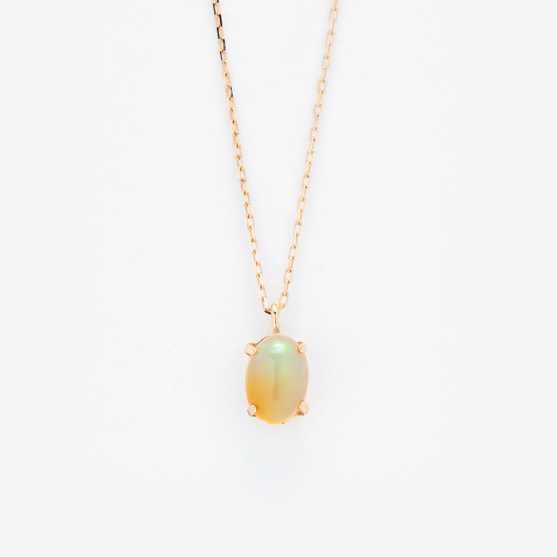 虹のような光を放つオパールが印象的なイエローゴールドのネックレス。