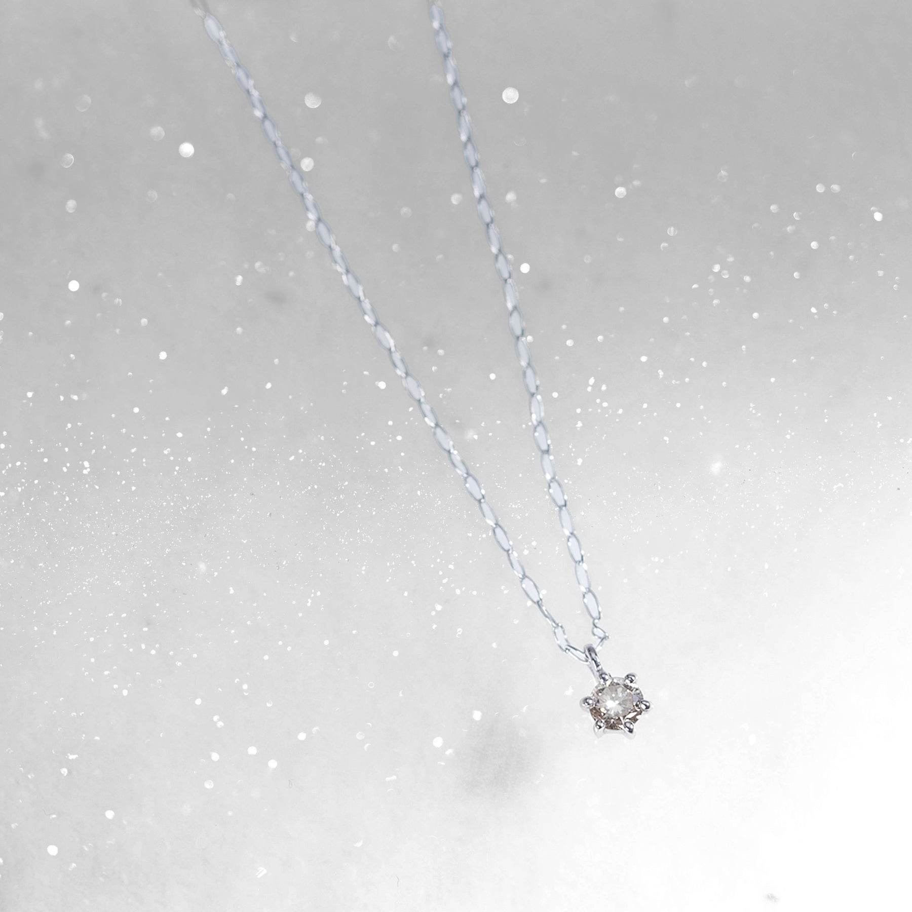 シンプルで使い勝手の良い、18金ホワイトゴールドの一粒ダイヤモンドネックレス。