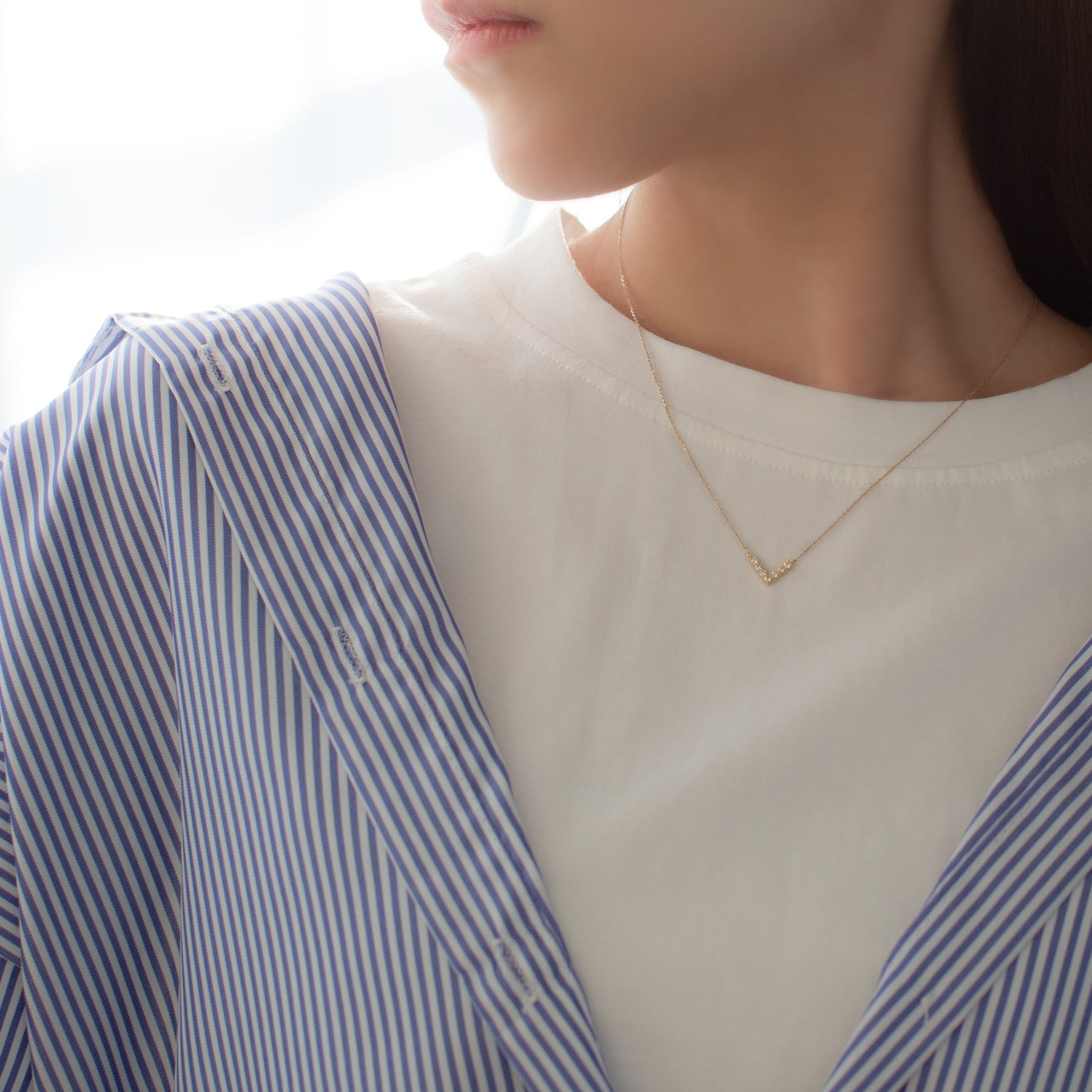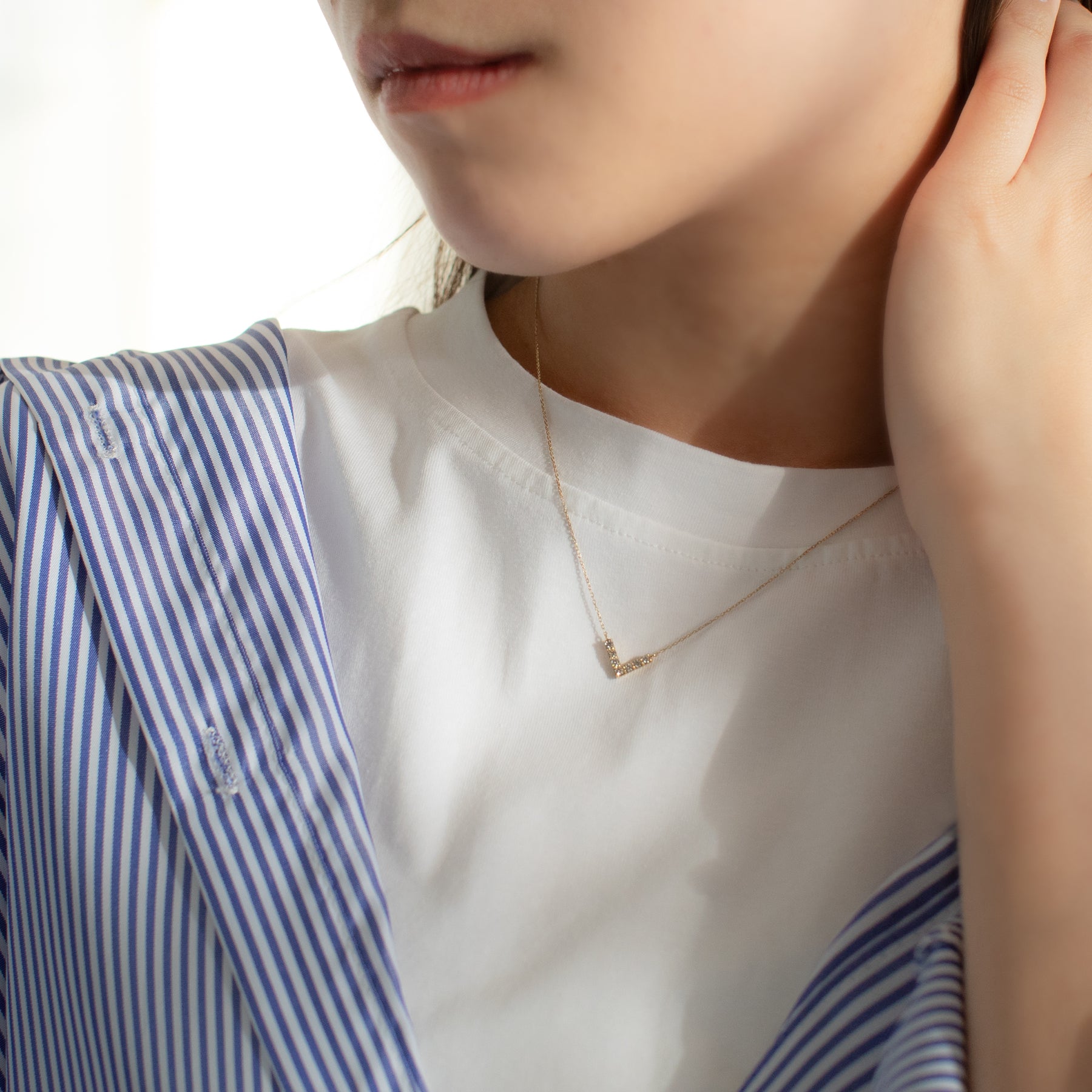 ミニマルのフォルムにきらめくダイヤが加わることで、カジュアルな装いにも自然になじみながら、日常に凛としたたたずまいを添えてくれます。
