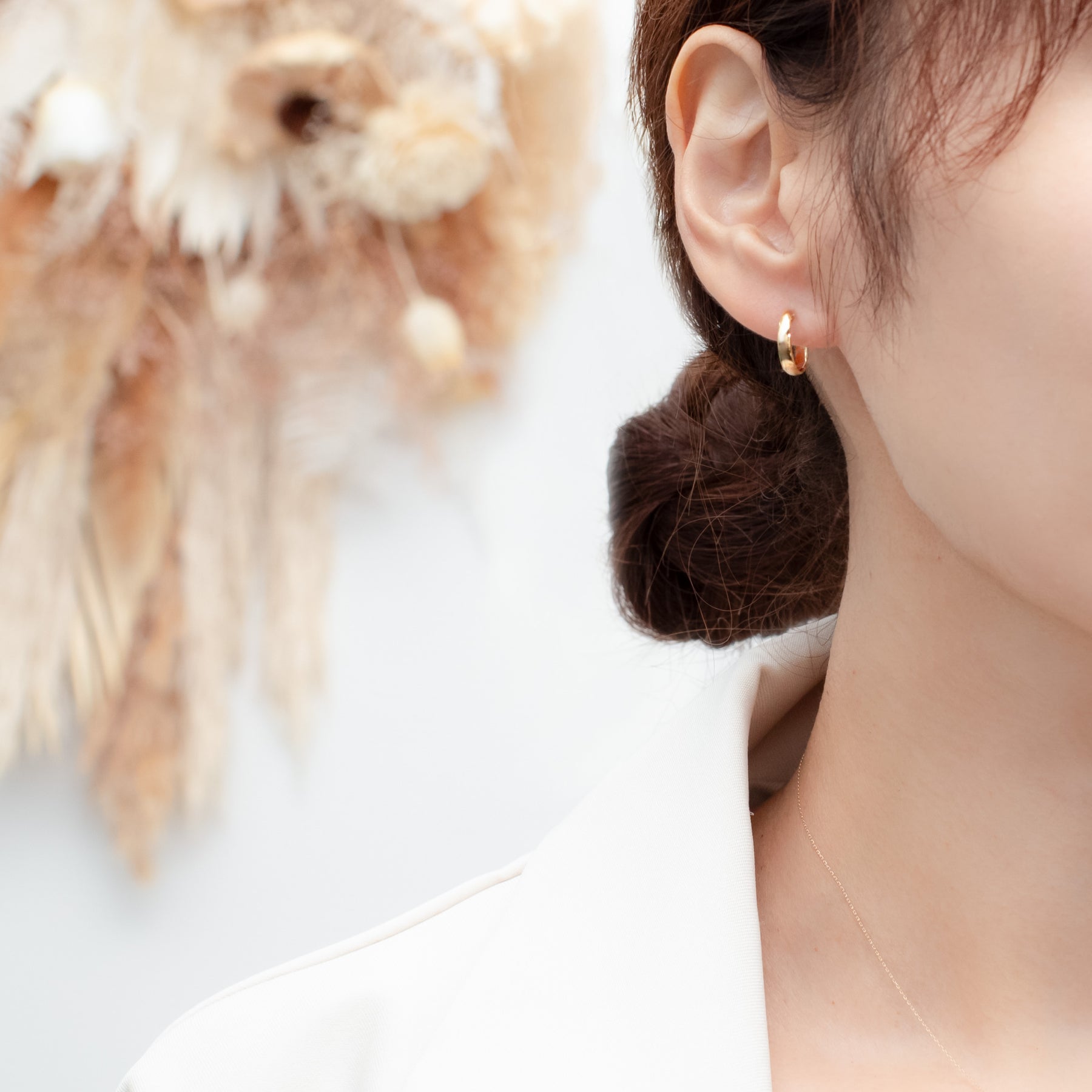 日常にさりげない輝きを添える、ふっくらとしたフォルムが魅力の月甲フープピアス。