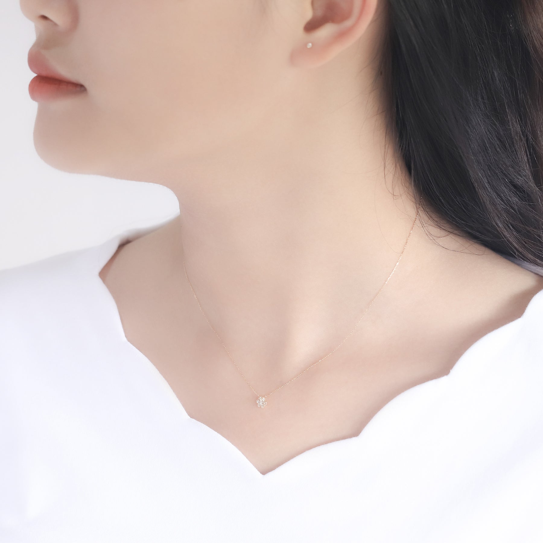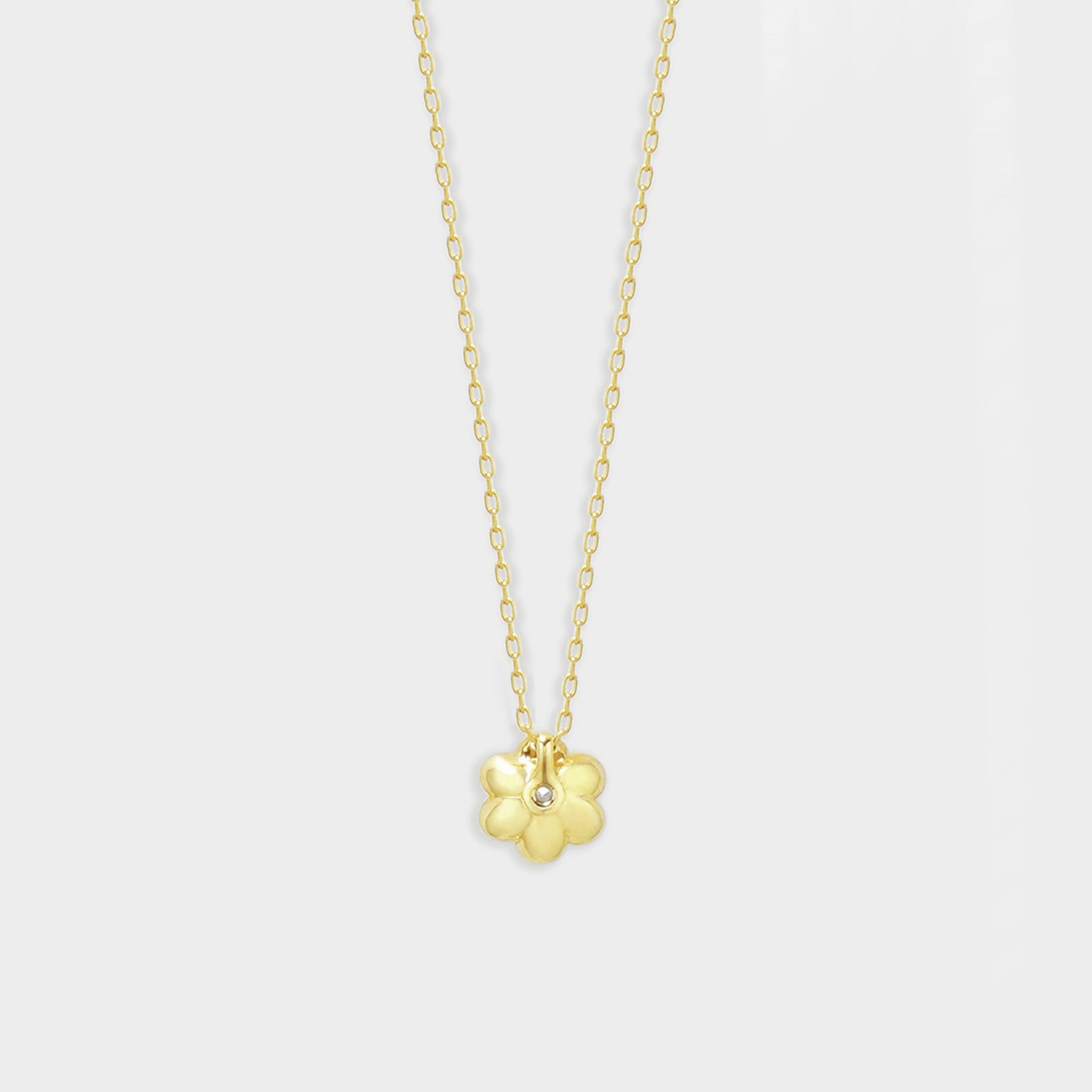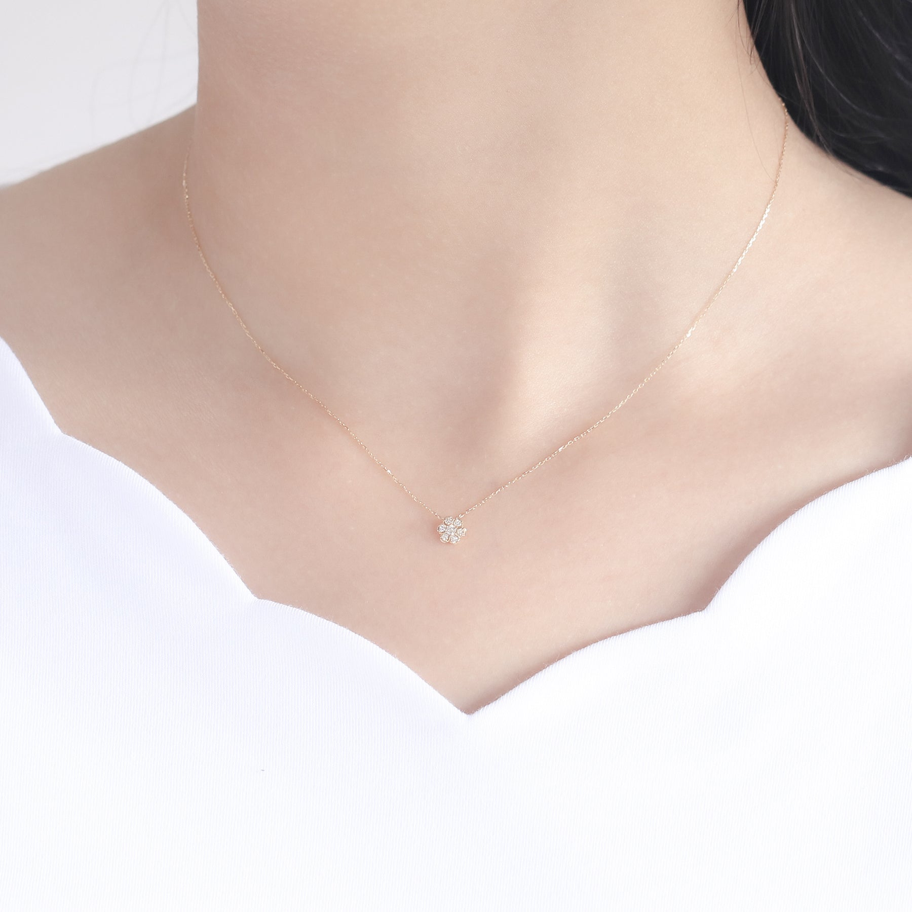 【Diamond】フラワーモチーフにダイヤモンドがきらめく、イエローゴールドのネックレス。ダイヤモンドでかたどった花のモチーフが、イエローゴールドの温かな輝きと調和し、胸元に上質な華やぎを添えます。日常のスタイルにさりげないエレガンスをプラスするだけでなく、記念日や誕生日のギフトにもふさわしい一品です。ダイヤモンドは4月の誕生石です。石言葉は「清浄無垢」「永遠の愛」。心身を浄化し周囲にある邪気を払ってくれる力があるとされています。最大の幸福を呼び込むサポートとなってくれそうです。【ATTENTION】※熱や紫外線、湿度の影響により変色や変質、劣化の恐れがございます。ご使用後は柔らかな布で汚れを拭き取ってから、直射日光の当たらない場所での保管をお願いいたします。※天然石は素材の特性により、色や形、風合いなどが画像と多少異なる場合がございます。また、多少のインクルージョンやクラックがある場合がございます。予めご了承ください。※引っ張ったり、強い力を加えると不良や変形の原因となりますので、お取り扱いにはご注意ください。