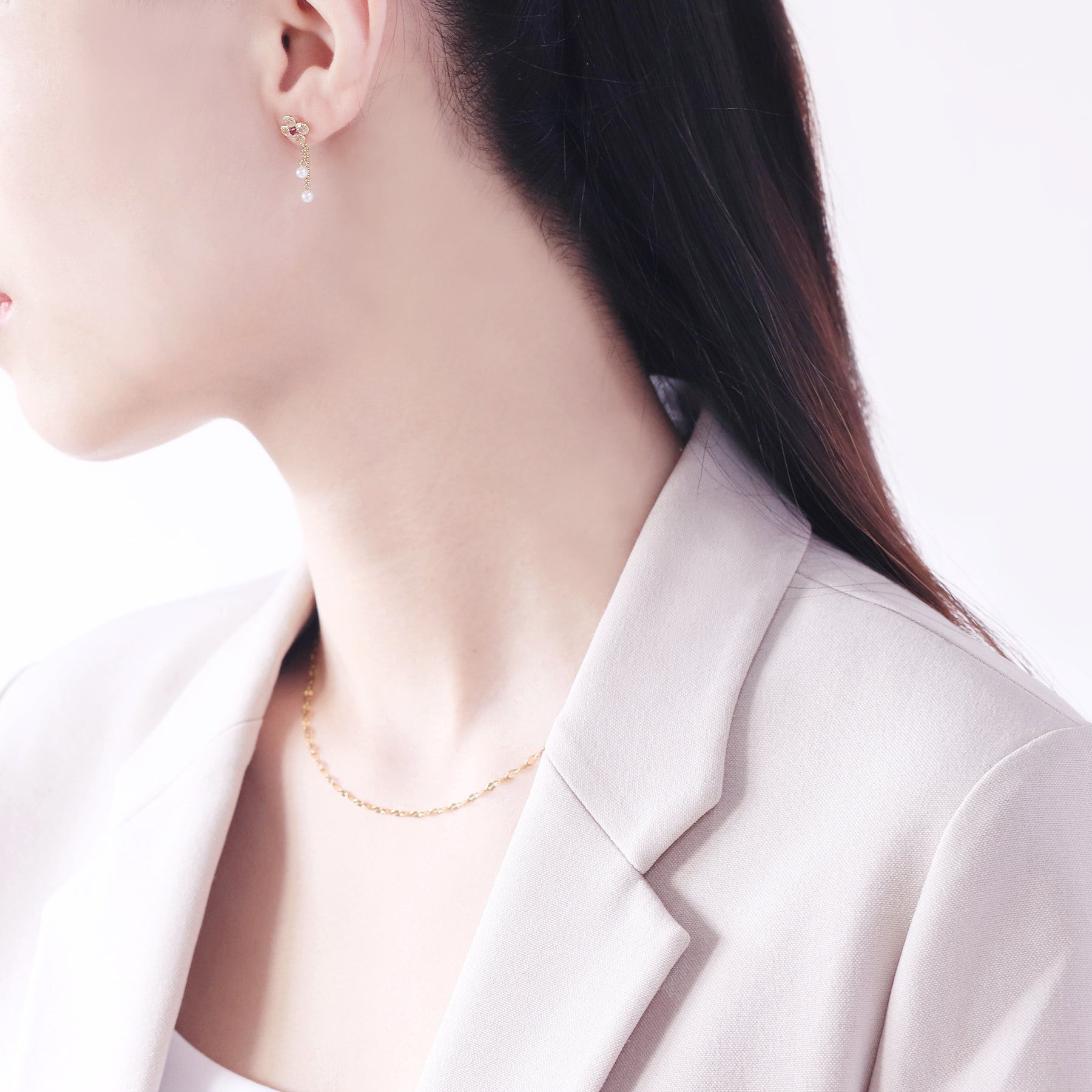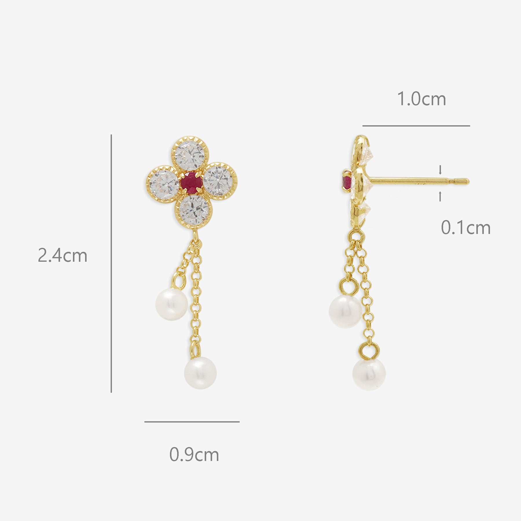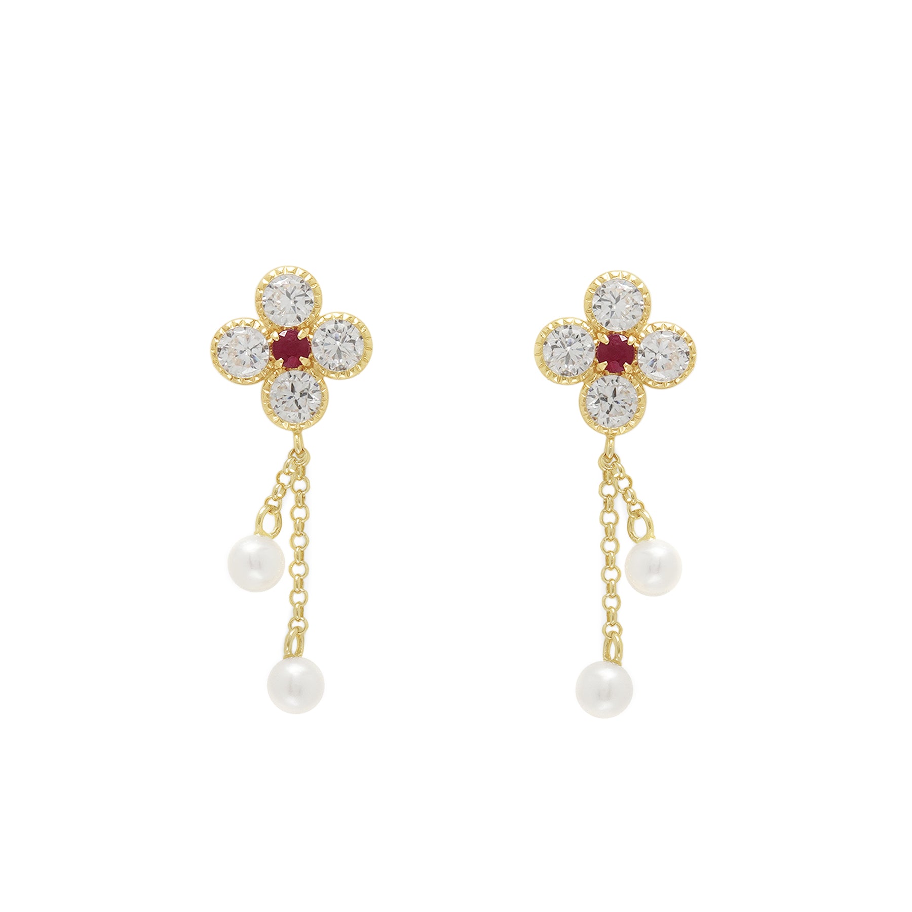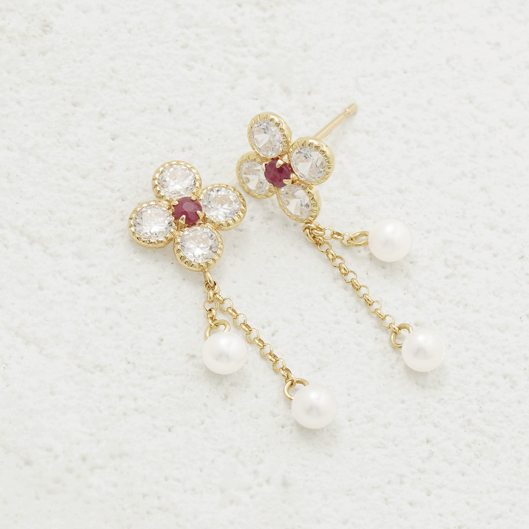 【FOR EARS】フラワーモチーフにルビーがアクセントを添える、華やかなイエローゴールドのピアス。キュービックジルコニアが鮮やかなルビーを引き立て、優雅に揺れる淡水パールが動きに合わせて上品な印象を演出します。華やかさと繊細さを兼ね備えたデザインは、特別な日の装いを一層引き立ててくれる存在感。フェミニンなスタイルにはもちろん、シンプルなコーディネートにも美しく映えます。自分へのご褒美にはもちろん、大切な人へのギフトにもおすすめのアイテムです。ルビーは7月の誕生石です。石言葉は、「情熱」「純愛」。情熱的なパワーを持つルビーは、愛を手に入れたい人、強くなりたい人にとって、最高のパワーストーンです。【ATTENTION】※熱や紫外線、湿度の影響により変色や変質、劣化の恐れがございます。ご使用後は柔らかな布で汚れを拭き取ってから、直射日光の当たらない場所での保管をお願いいたします。※天然石は素材の特性により、色や形、風合いなどが画像と多少異なる場合がございます。また、多少のインクルージョンやクラックがある場合がございます。予めご了承ください。※天然石は他の宝石と比べて柔らかく傷がつきやすいため、衝撃や摩擦にご注意ください。また、他のジュエリーと触れないように保管してください。※強い力を加えると変形の原因になりますので、お取り扱いにはご注意ください。