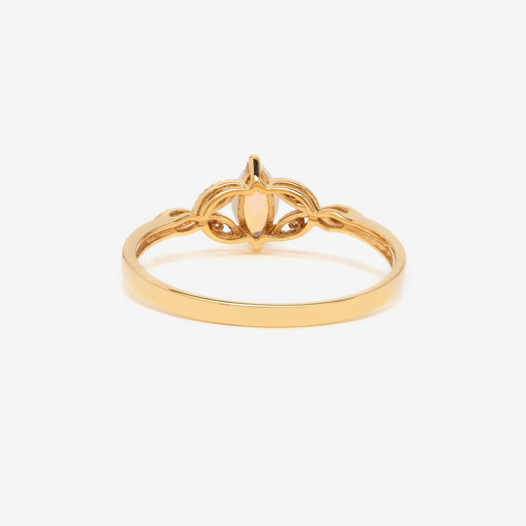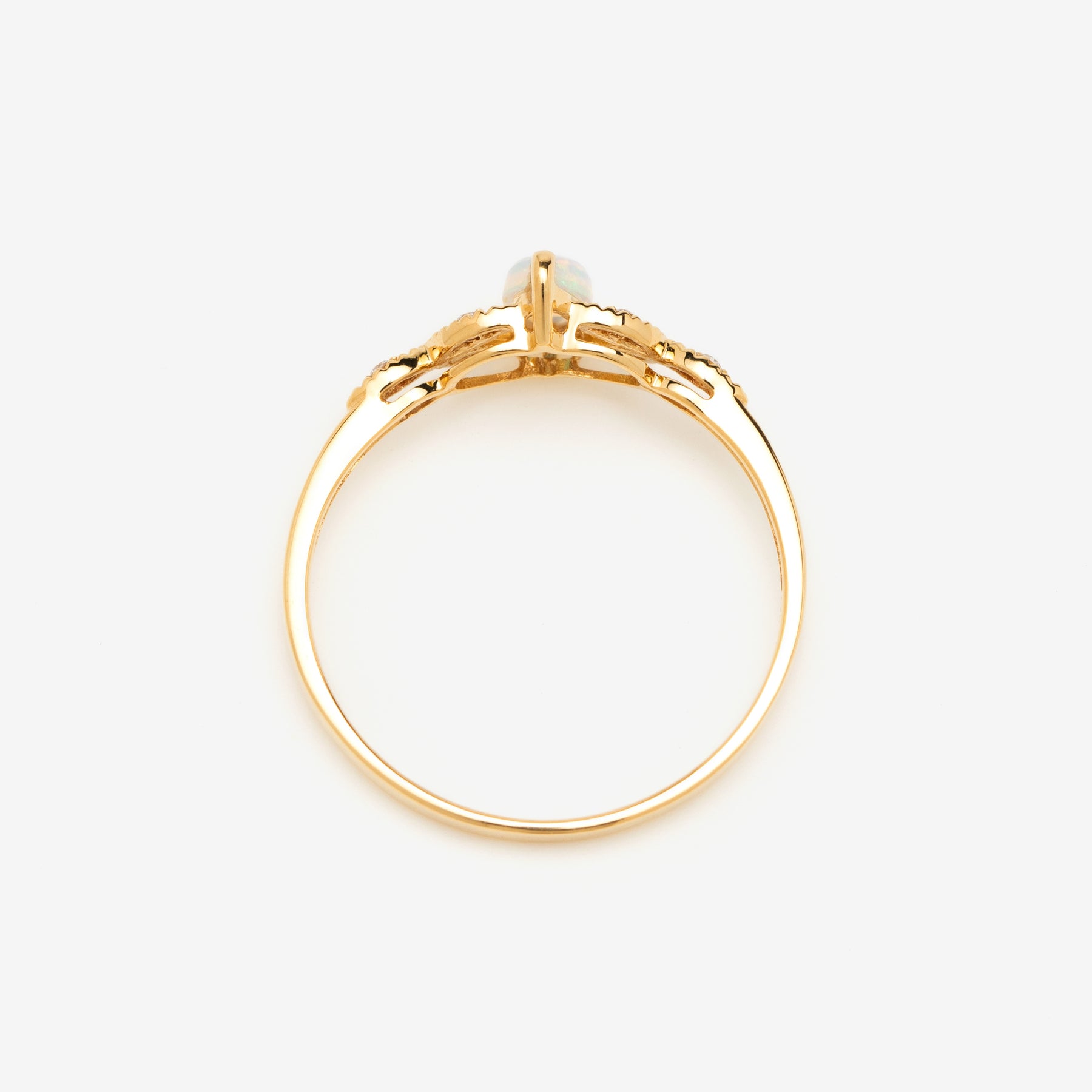 【Colors】繊細なゴールドの曲線が虹色にきらめくオパールを優しく包み込むイエローゴールドのリング。まるで自然の造形美を思わせる柔らかなラインが、指元に上品な華やかさを添えます。オパールの幻想的な輝きとイエローゴールドの温もりある光沢が絶妙に調和し、日常にも特別な日にも映える洗練されたデザイン。シンプルながらも印象的なフォルムは、どんなスタイルにも美しく馴染みます。大切な人への贈り物にも、頑張る自分へのご褒美にもふさわしい、特別なリングです。オパールは10月の誕生石です。石言葉は「幸運」「希望」。幸せを呼び寄せてくれたり、創造性を高めるパワーがあるといわれています。【ATTENTION】※熱や紫外線、湿度の影響により変色や変質、劣化の恐れがございます。ご使用後は柔らかな布で汚れを拭き取ってから、直射日光の当たらない場所での保管をお願いいたします。※天然石は素材の特性により、色や形、風合いなどが画像と多少異なる場合がございます。また、多少のインクルージョンやクラックがある場合がございます。予めご了承ください。※天然石は他の宝石と比べて柔らかく傷がつきやすいため、衝撃や摩擦にご注意ください。また、他のジュエリーと触れないように保管してください。※強い力を加えると変形の原因になりますので、お取り扱いにはご注意ください。