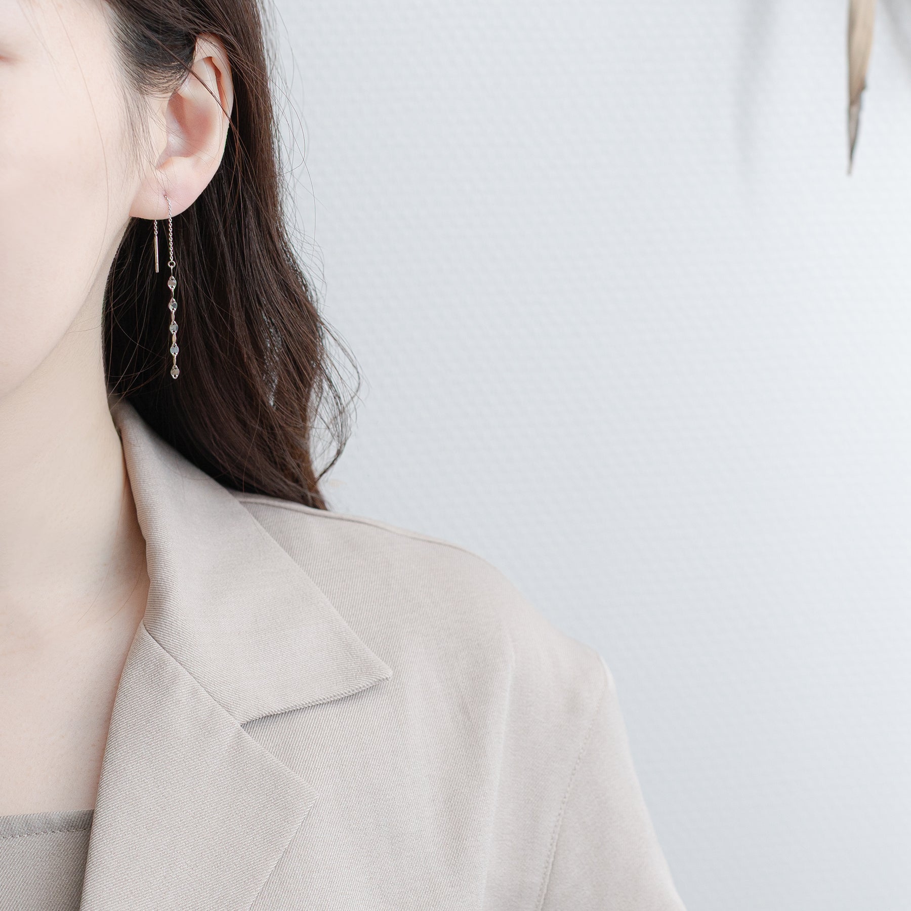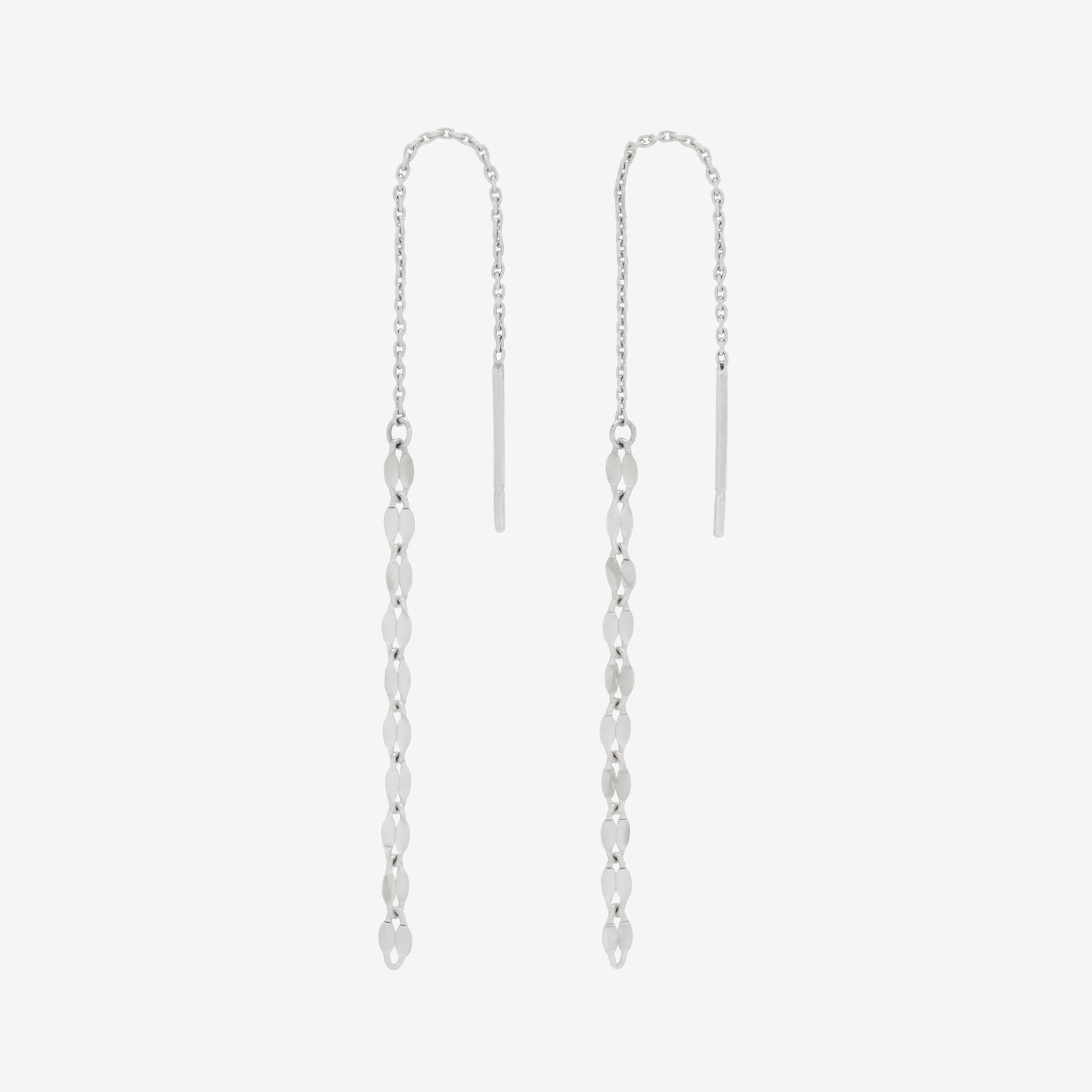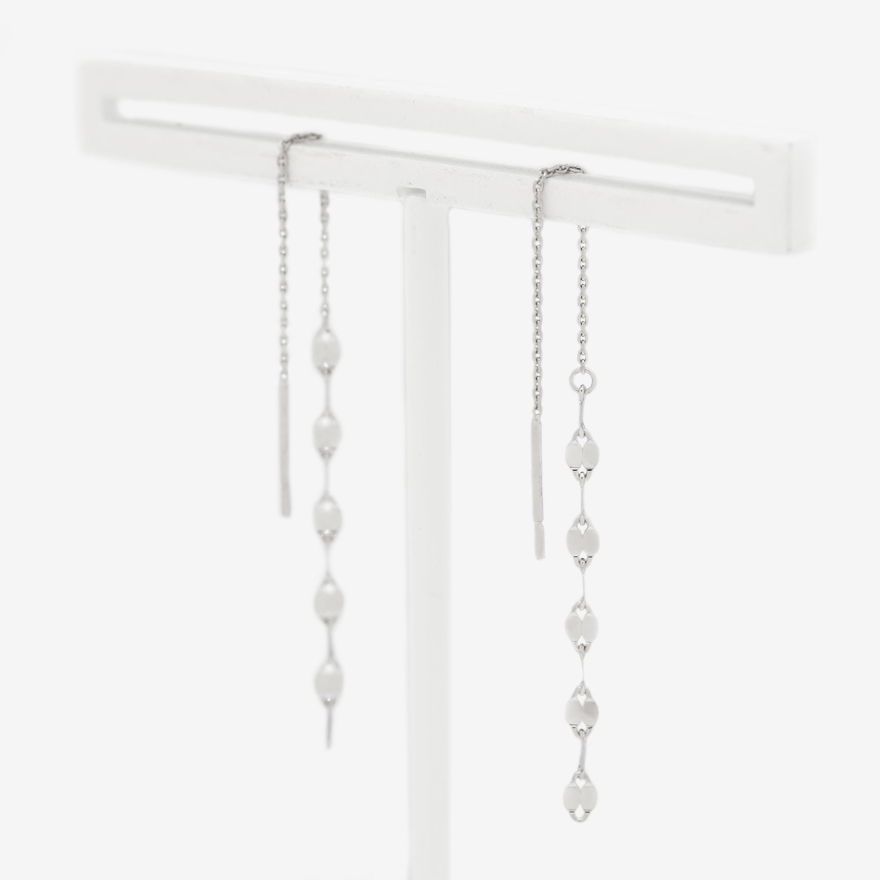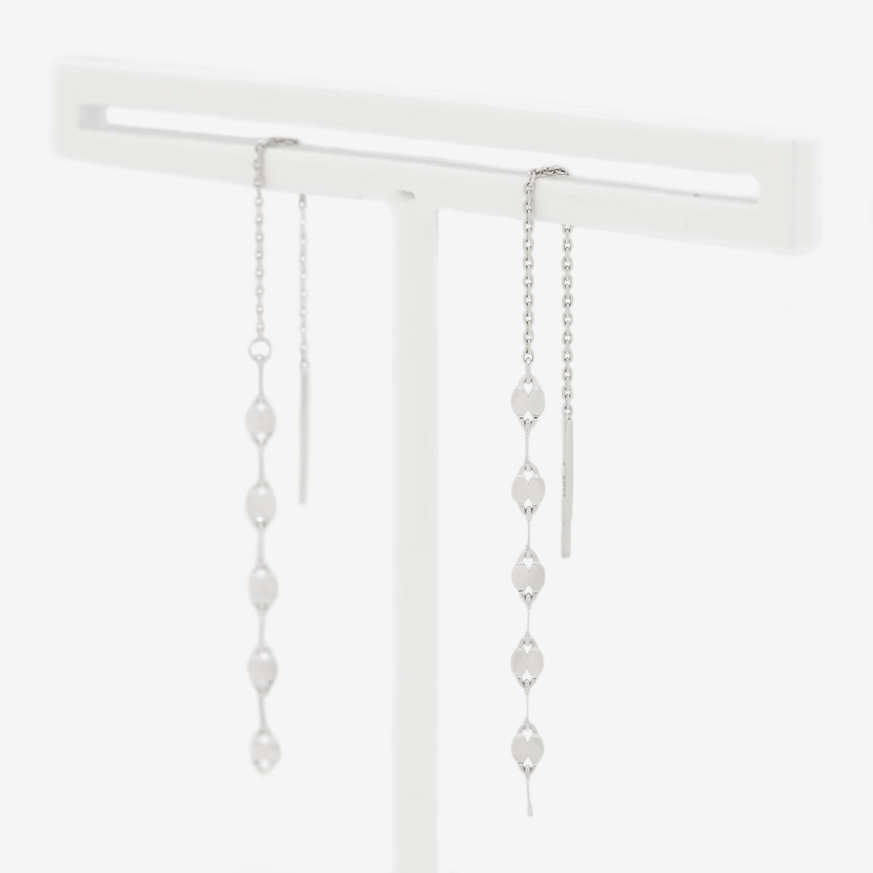 軽やかさと上品な輝きを放つペタルチェーンが印象的なホワイトゴールドのアメリカンピアス。