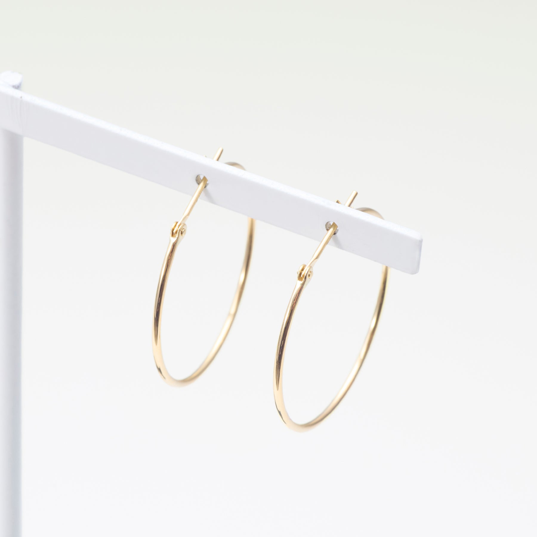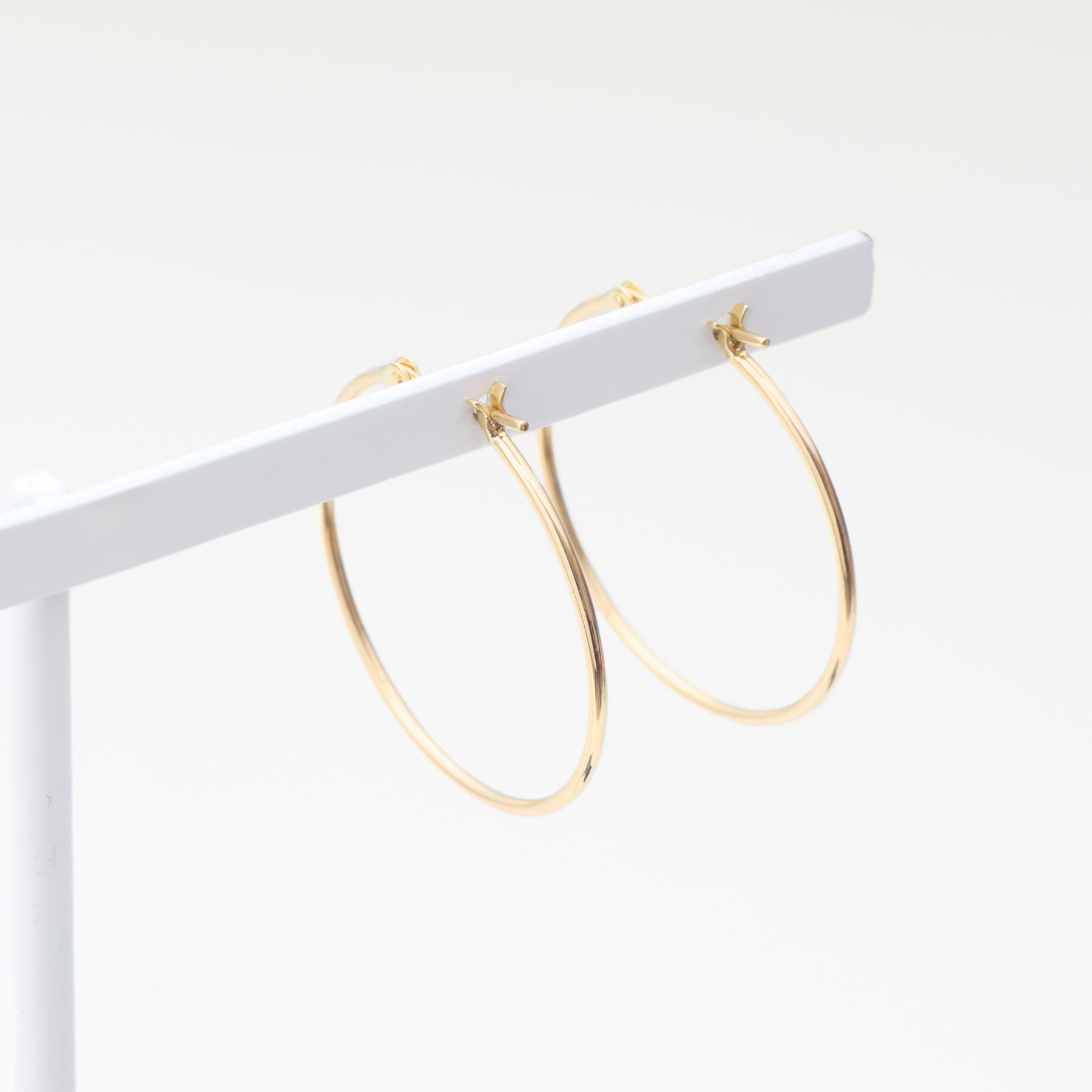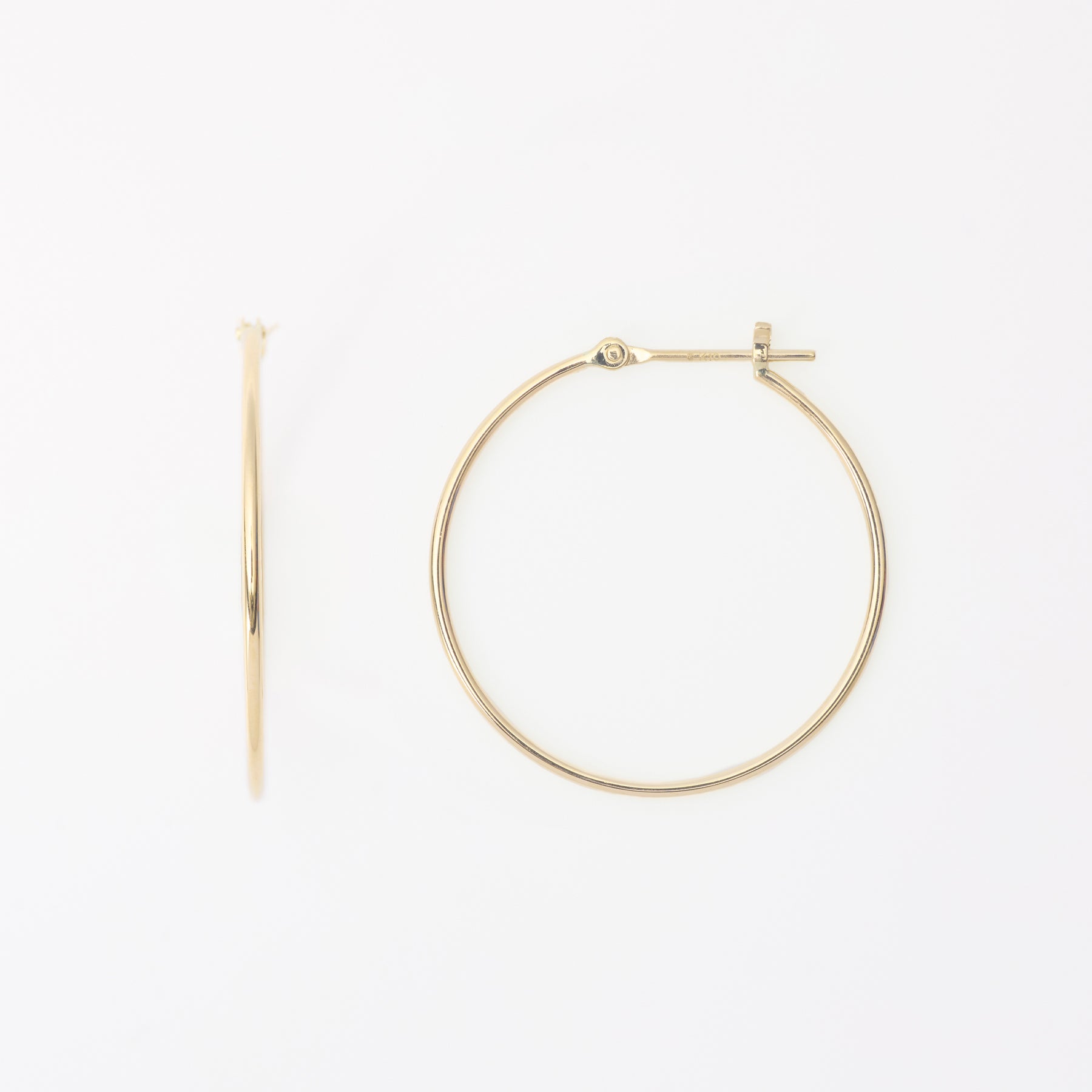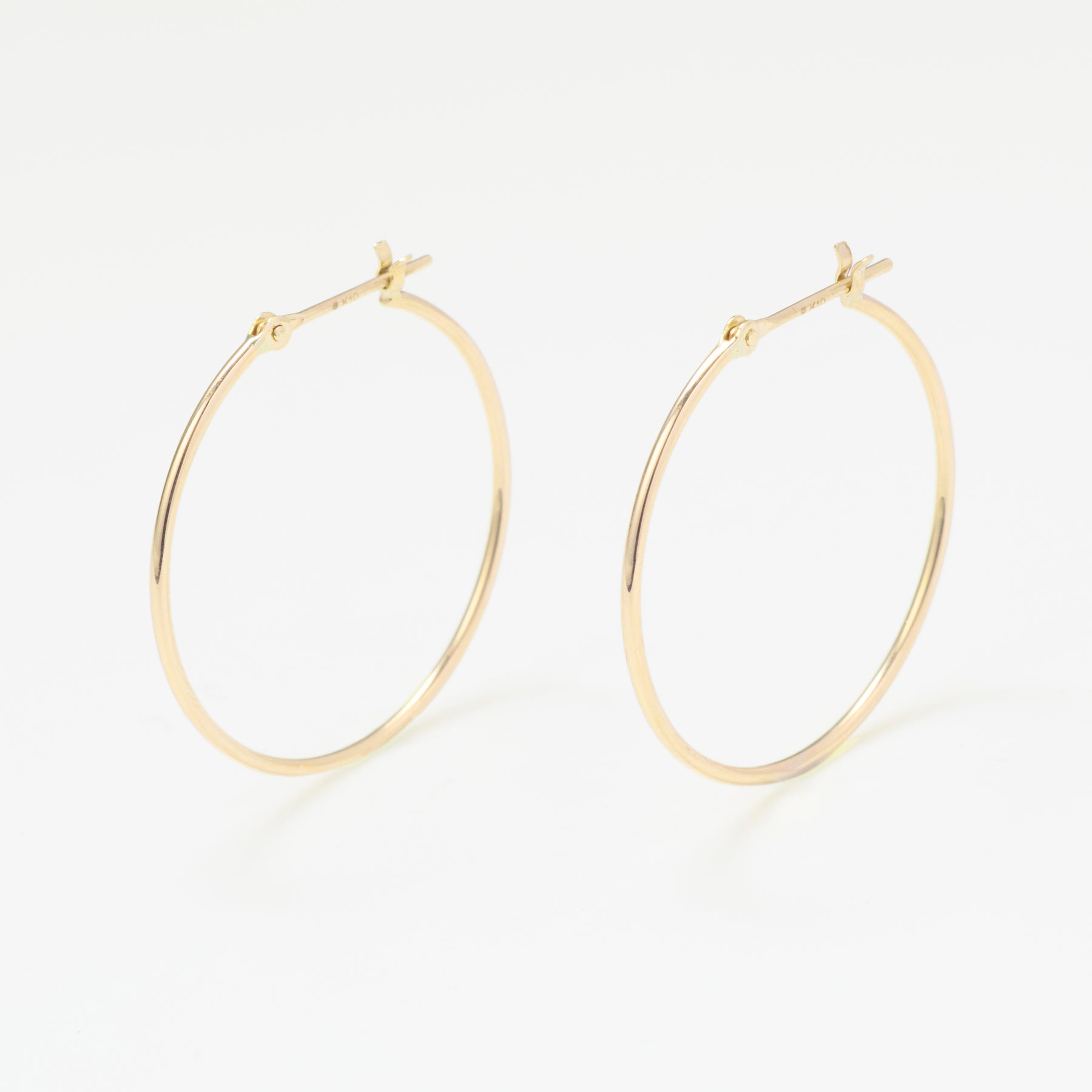 イエローゴールドの深みのあるゴールドの艶と、洗練されたシンプルなフォルムが美しく調和したフープピアス。
