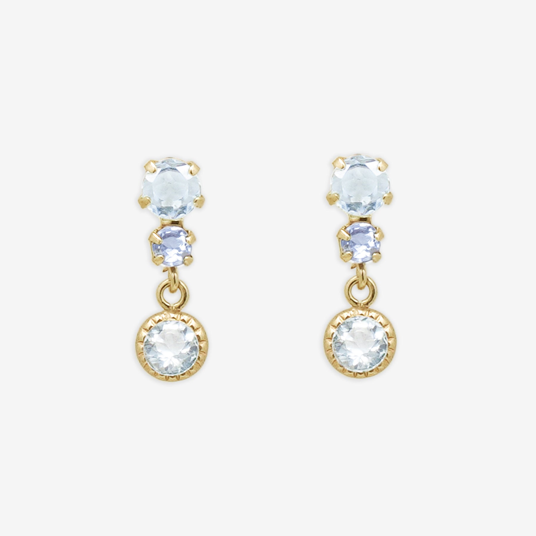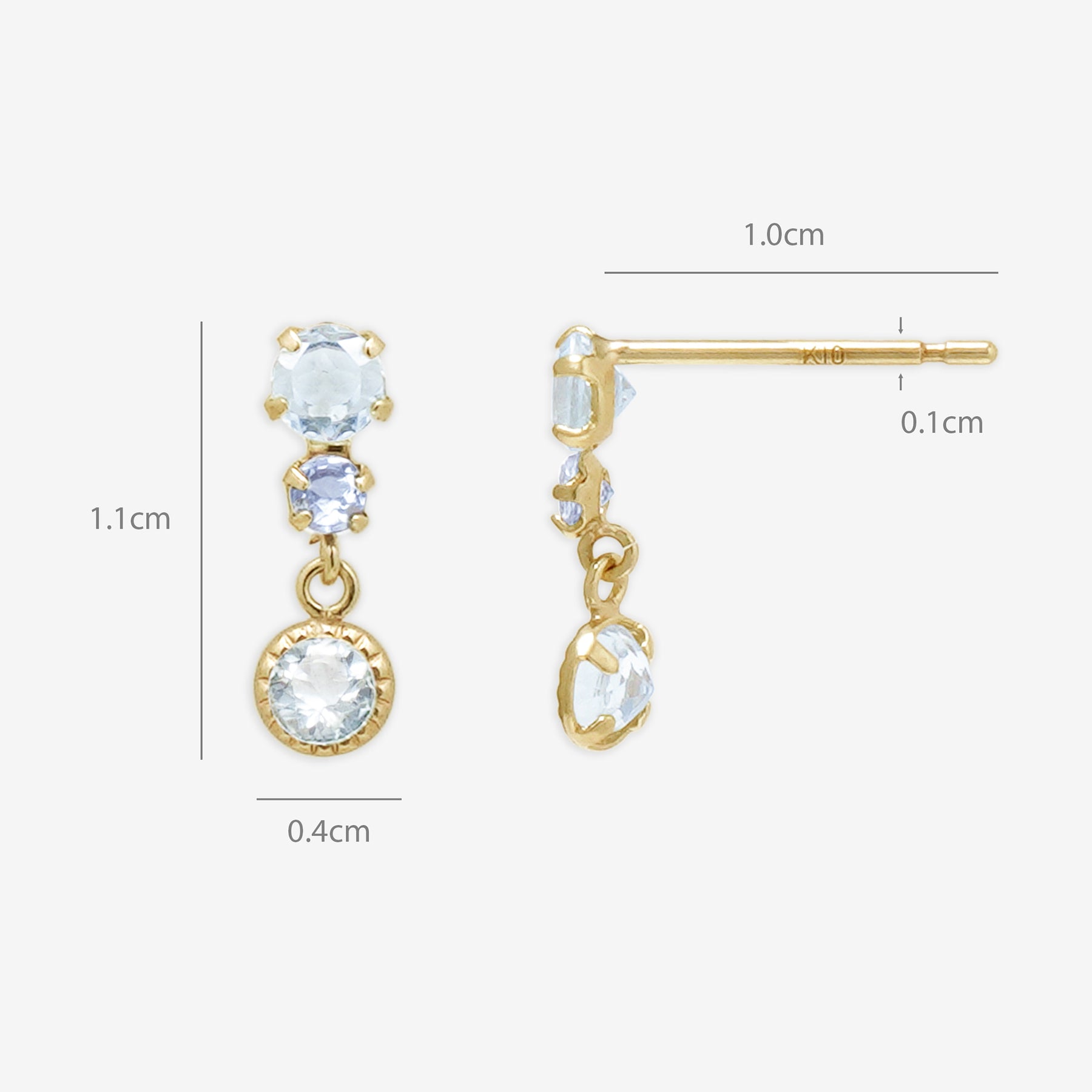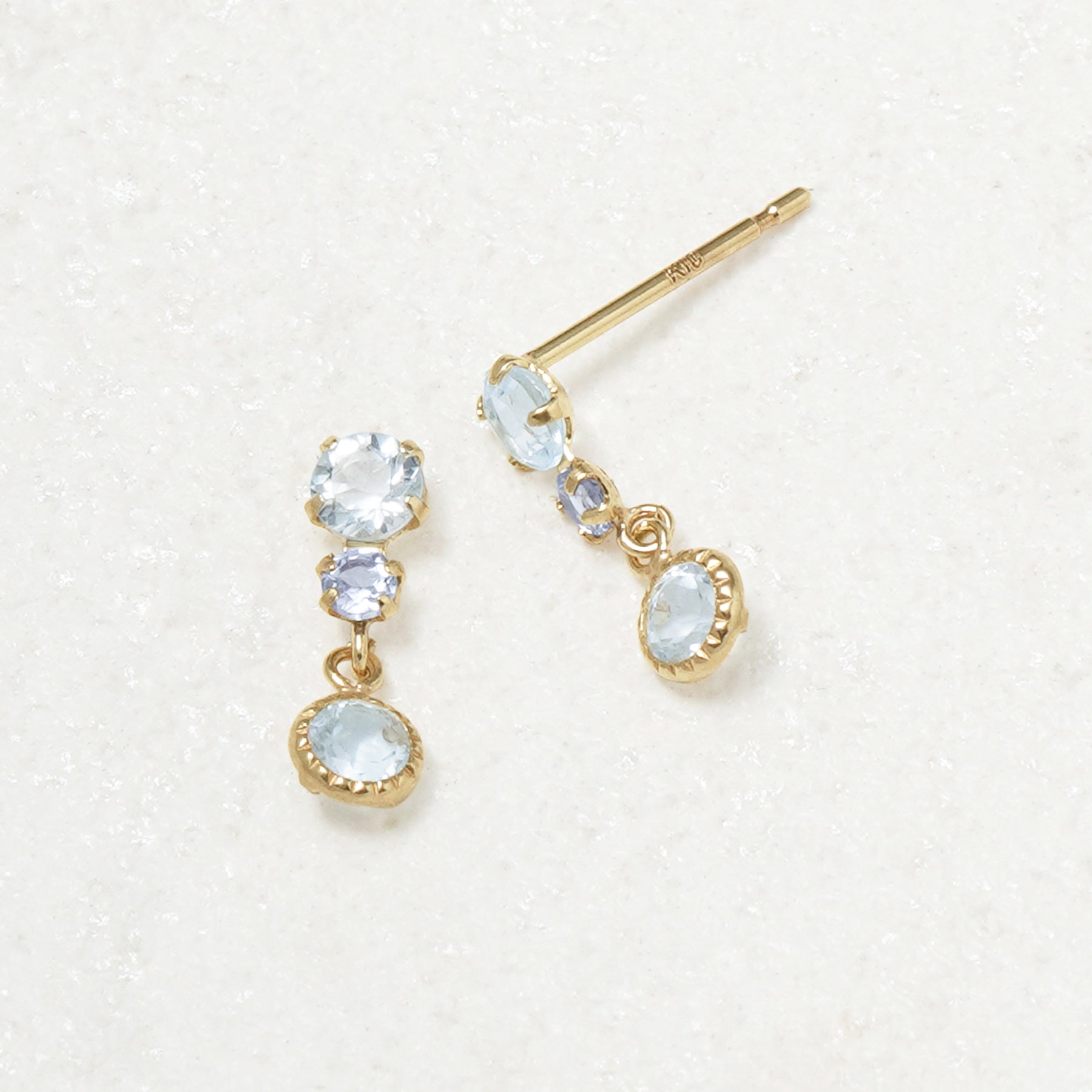 【FOR EARS】イエローゴールドのカラースイングピアスブルートパーズとタンザナイトを組み合わせた透明感あふれるブルーのコントラストが美しい天然石を使ったプチサイズのピアスは程よくカジュアルで、日常のスタイリングに取り入れやすいアイテムです。ブルートパーズの石言葉は「友情」「希望」「知性」。教養や知性を高め、仕事運や勉強運を高めてくれます。また、「運命的な出会いをもたらす石」といわれています。【ATTENTION】※熱や紫外線、湿度の影響により変色や変質、劣化の恐れがございます。ご使用後は柔らかな布で汚れを拭き取ってから、直射日光の当たらない場所での保管をお願いいたします。※天然石は素材の特性により、色や形、風合いなどが画像と多少異なる場合がございます。また、多少のインクルージョンやクラックがある場合がございます。予めご了承ください。※天然石は他の宝石と比べて柔らかく傷がつきやすいため、衝撃や摩擦にご注意ください。また、他のジュエリーと触れないように保管してください。※強い力を加えると変形の原因になりますので、お取り扱いにはご注意ください。