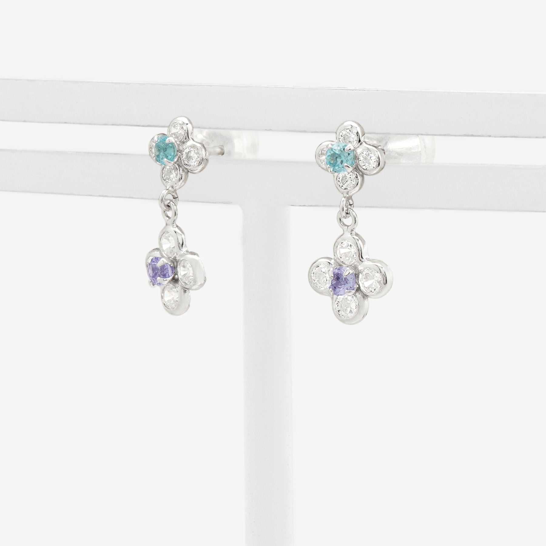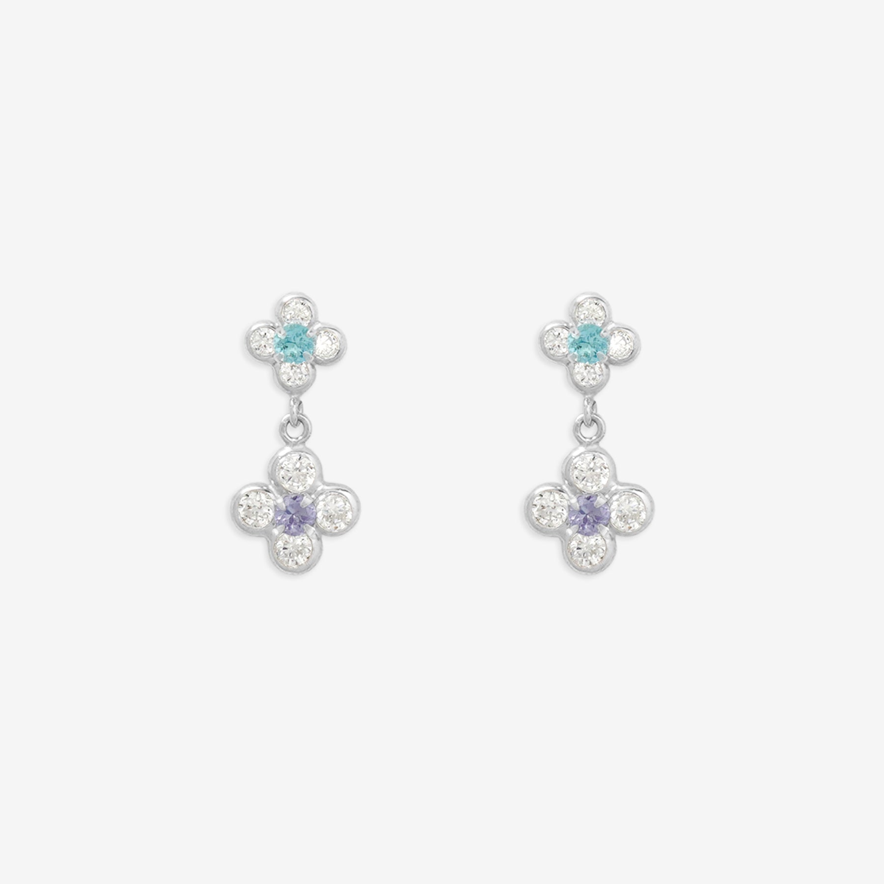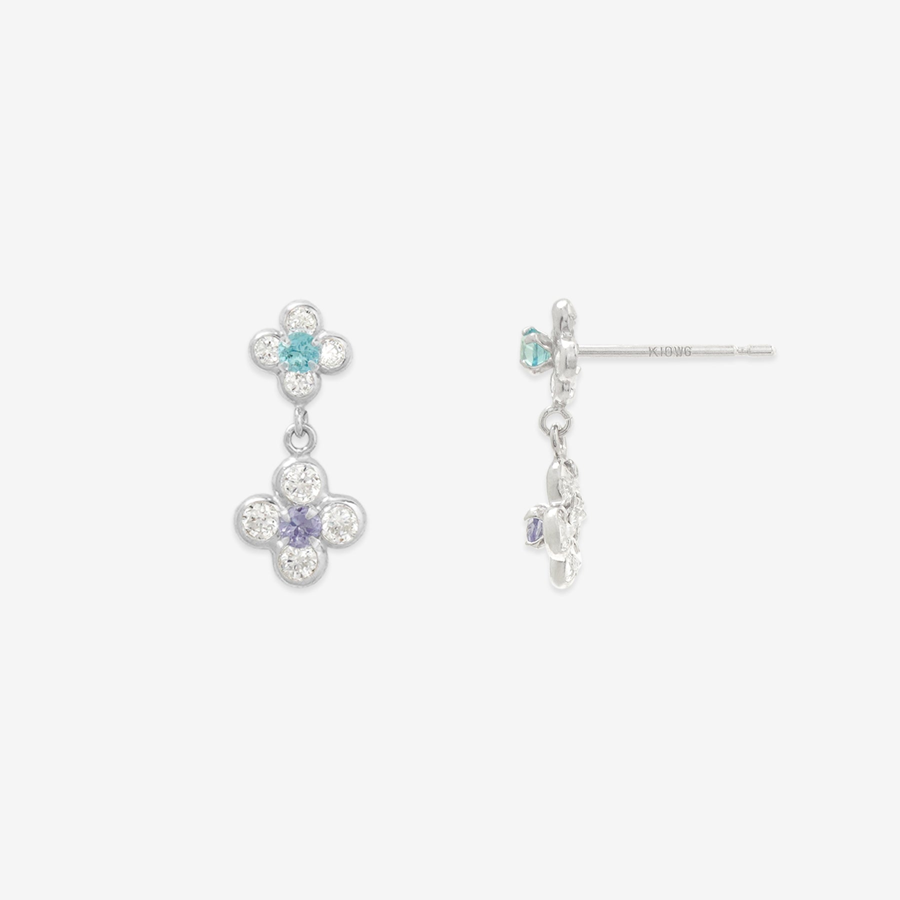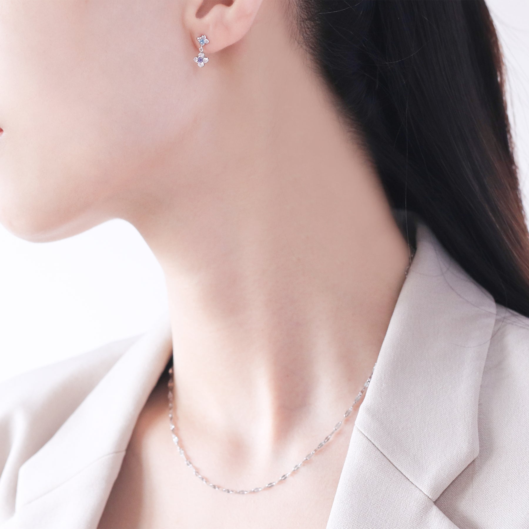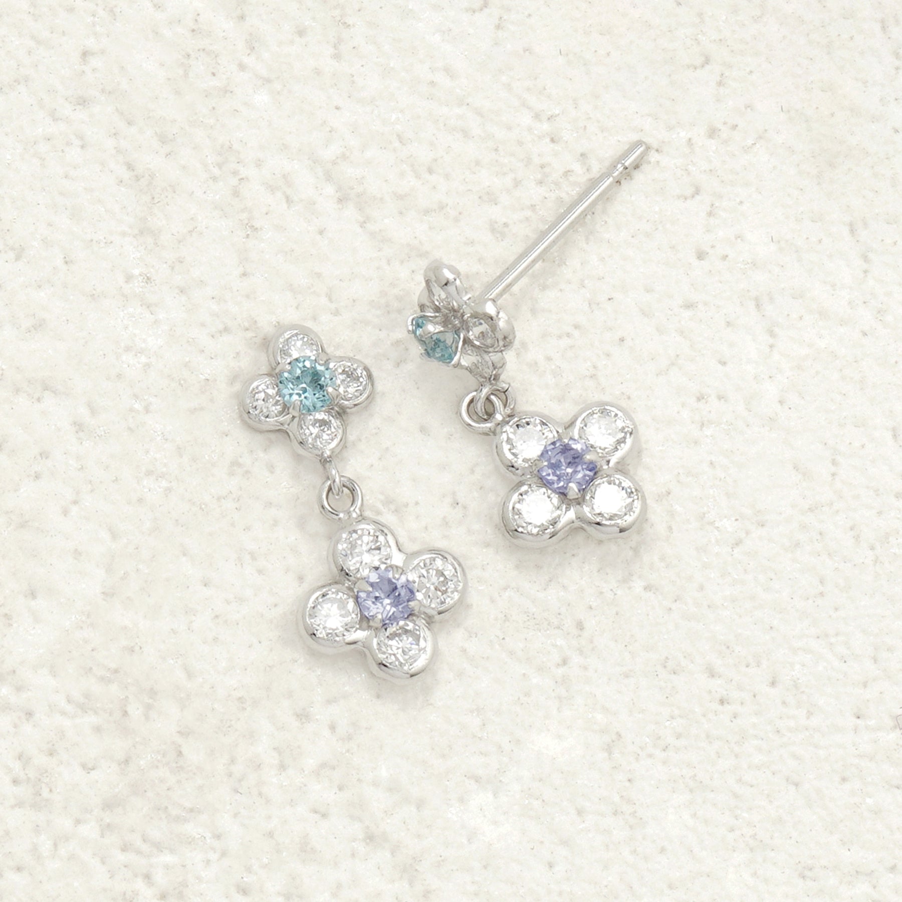 【FOR EARS】フラワーモチーフが耳元で軽やかに揺れるホワイトゴールドのピアス。中央にセットされた澄んだブルートパーズを、キュービックジルコニアで囲み、まるで一輪の花が咲いたような爽やかな華やかさを演出。ブルートパーズの透明感ある輝きと、ホワイトゴールドの清楚な光沢が調和したデザインは、凛とした女性らしさを引き立てながら、耳元に上品な印象を添えてくれます。デイリーにはもちろん、特別な日のアクセントとしても活躍するアイテムは、自分へのご褒美にはもちろん、大切な人へのギフトにもぴったりです。ブルートパーズは11月の誕生石です。石言葉は「友情」「希望」「知性」。仕事運や勉強運を高めてくれるブルートパーズは、「運命的な出会いをもたらす石」とも言われています。【ATTENTION】※熱や紫外線、湿度の影響により変色や変質、劣化の恐れがございます。ご使用後は柔らかな布で汚れを拭き取ってから、直射日光の当たらない場所での保管をお願いいたします。※天然石は素材の特性により、色や形、風合いなどが画像と多少異なる場合がございます。また、多少のインクルージョンやクラックがある場合がございます。予めご了承ください。※天然石は他の宝石と比べて柔らかく傷がつきやすいため、衝撃や摩擦にご注意ください。また、他のジュエリーと触れないように保管してください。※強い力を加えると変形の原因になりますので、お取り扱いにはご注意ください。