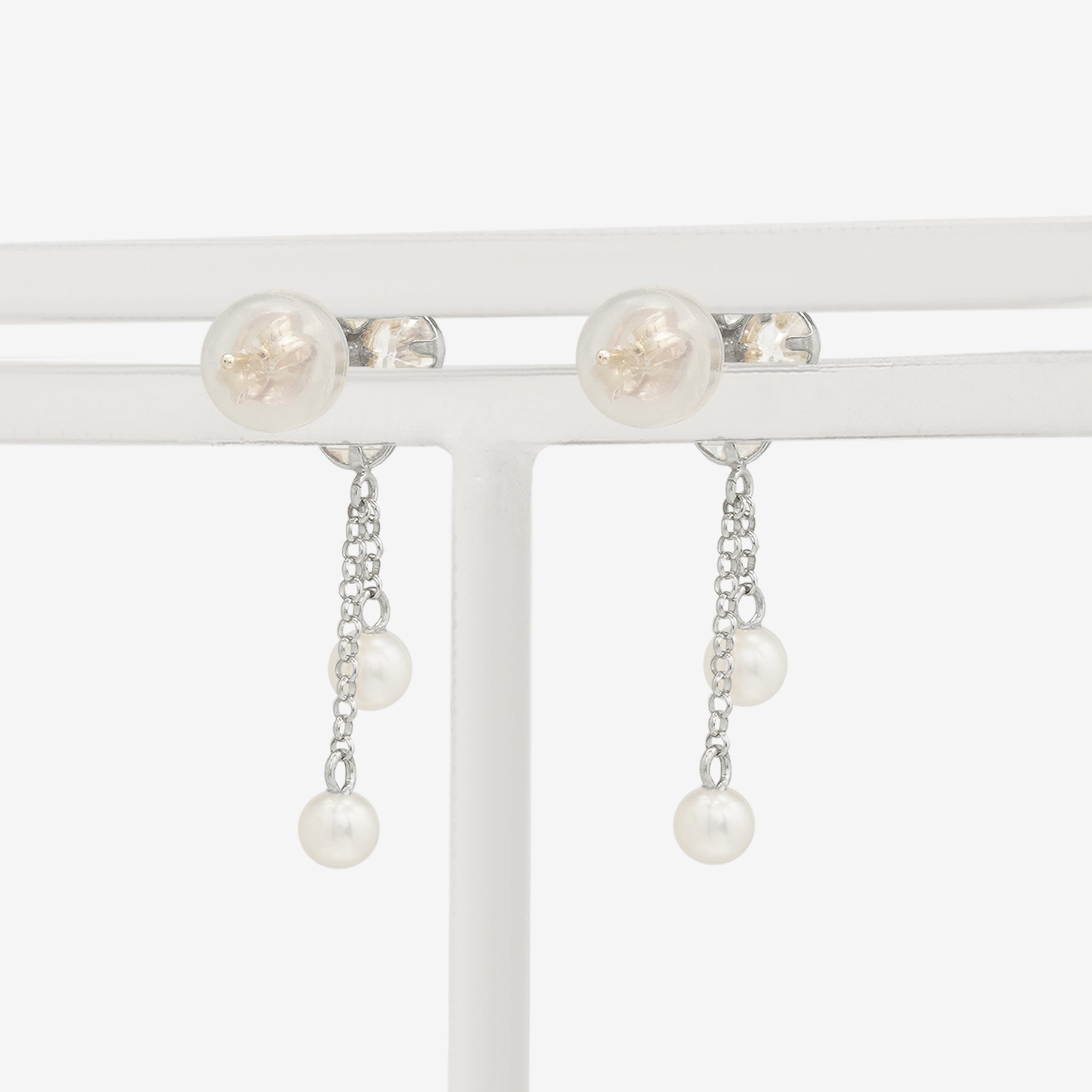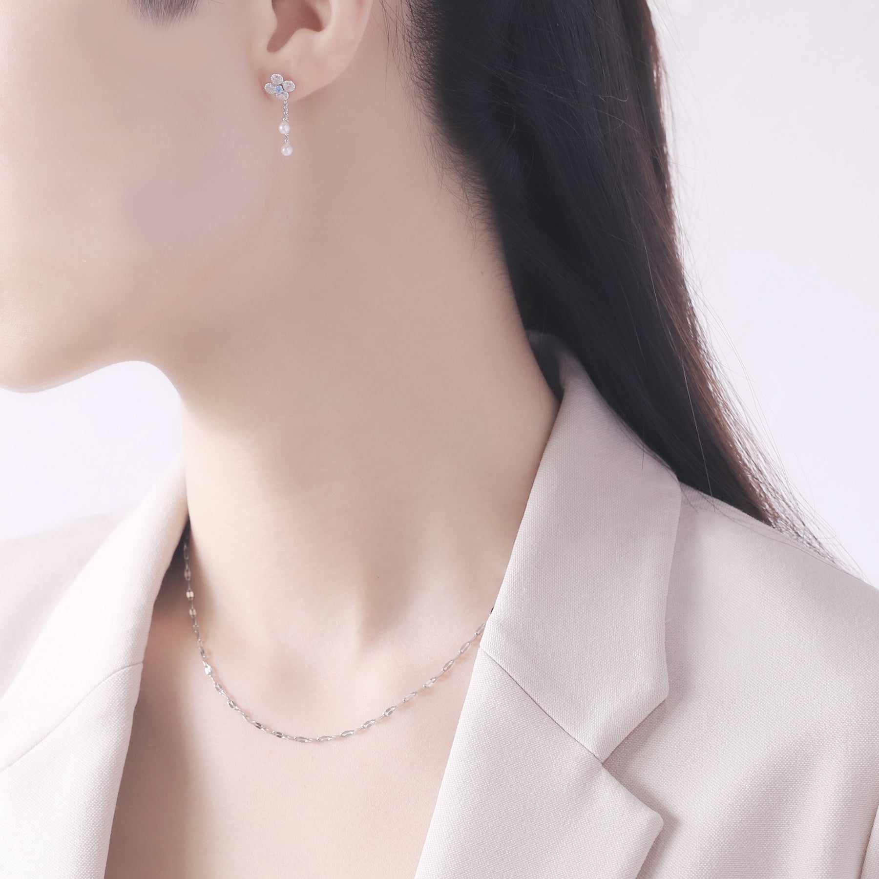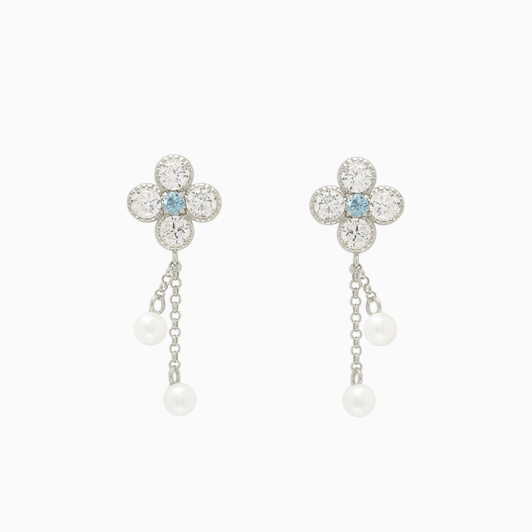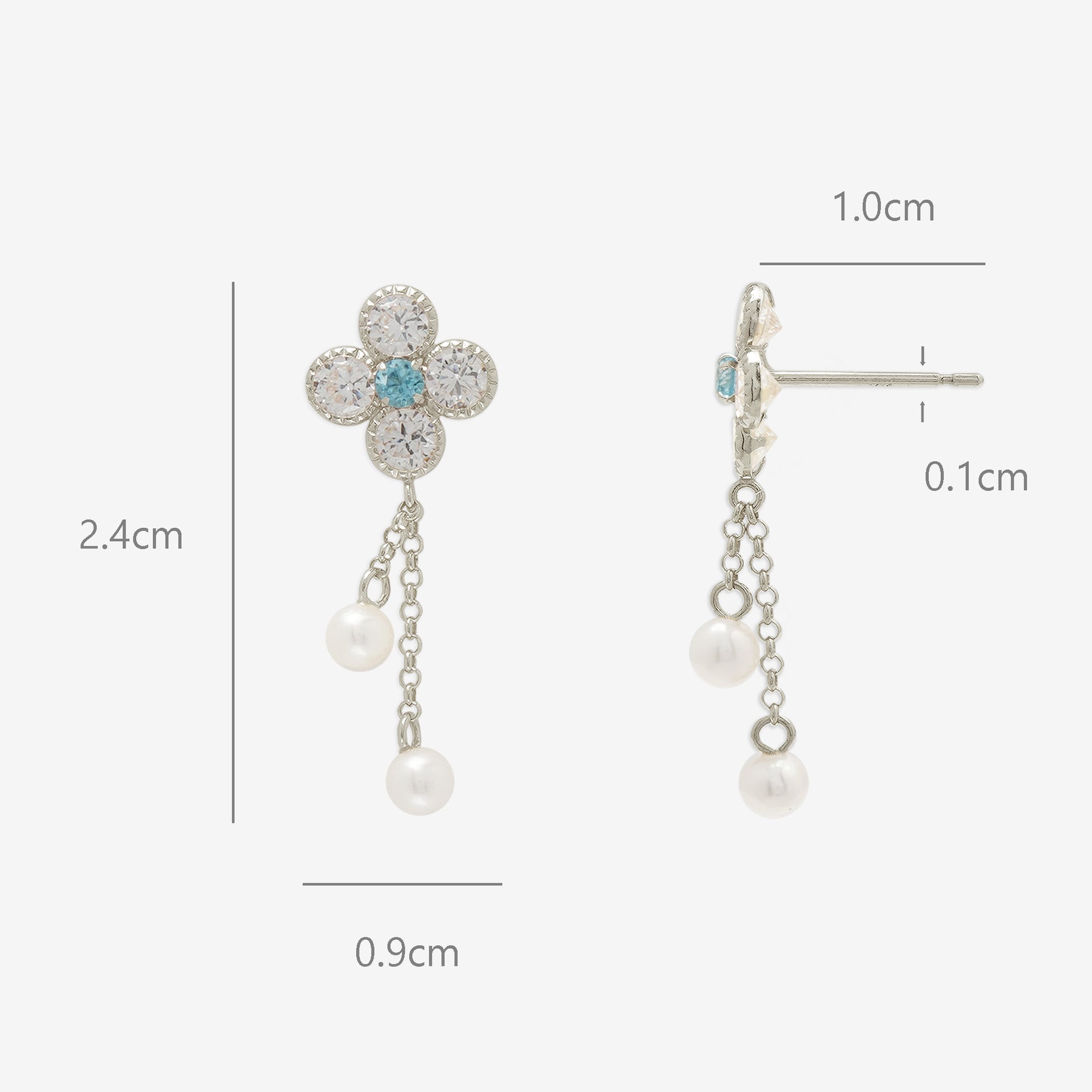 【FOR EARS】フラワーモチーフにブルートパーズがアクセントを添える、清楚なホワイトゴールドのピアス。キュービックジルコニアが鮮やかなブルートパーズを引き立て、優雅に揺れる淡水パールが動きに合わせて上品な印象を演出します。ホワイトゴールドの澄んだ輝きが、ブルートパーズの美しさをより一層引き立て、涼やかで洗練された雰囲気に。華やかさと繊細さを兼ね備えたデザインは、特別な日の装いを一層引き立ててくれます。フェミニンなスタイルにはもちろん、シンプルなコーディネートにも美しく映える存在感。自分へのご褒美や、大切な人へのギフトにもおすすめのアイテムです。ブルートパーズは11月の誕生石です。石言葉は「友情」「希望」「知性」。教養や知性を高め、仕事運や勉強運を高めてくれると言われています。また、「運命的な出会いをもたらす石」と言われています。【ATTENTION】※熱や紫外線、湿度の影響により変色や変質、劣化の恐れがございます。ご使用後は柔らかな布で汚れを拭き取ってから、直射日光の当たらない場所での保管をお願いいたします。※天然石は素材の特性により、色や形、風合いなどが画像と多少異なる場合がございます。また、多少のインクルージョンやクラックがある場合がございます。予めご了承ください。※天然石は他の宝石と比べて柔らかく傷がつきやすいため、衝撃や摩擦にご注意ください。また、他のジュエリーと触れないように保管してください。※強い力を加えると変形の原因になりますので、お取り扱いにはご注意ください。