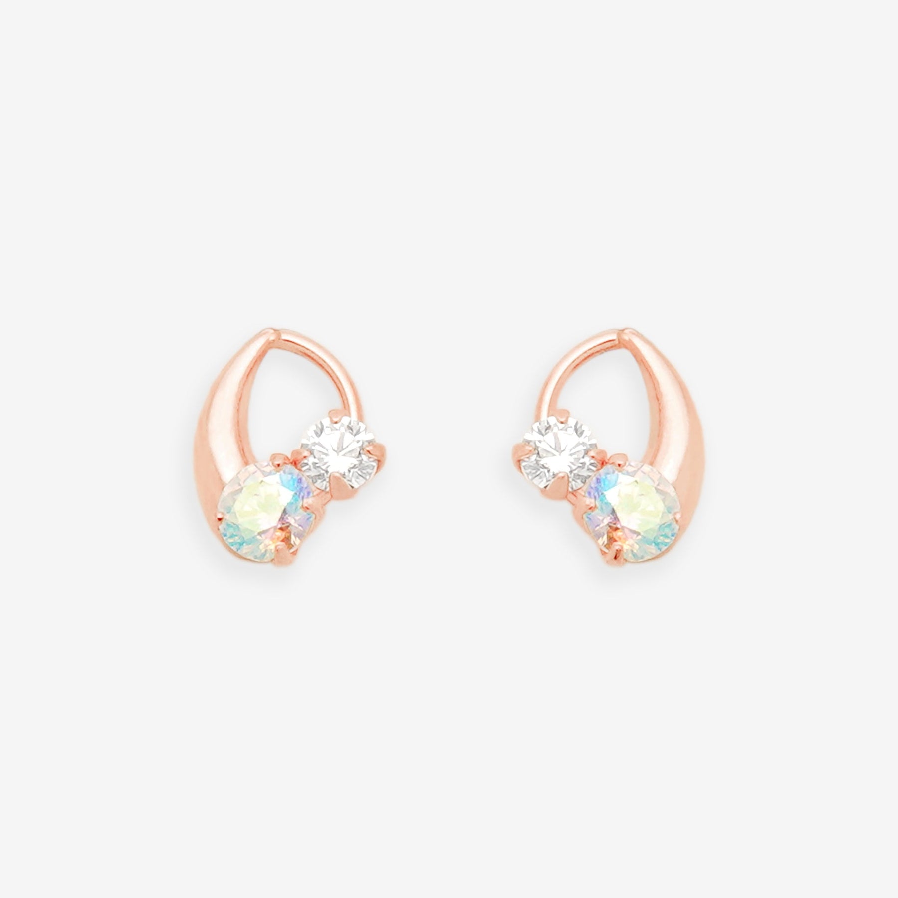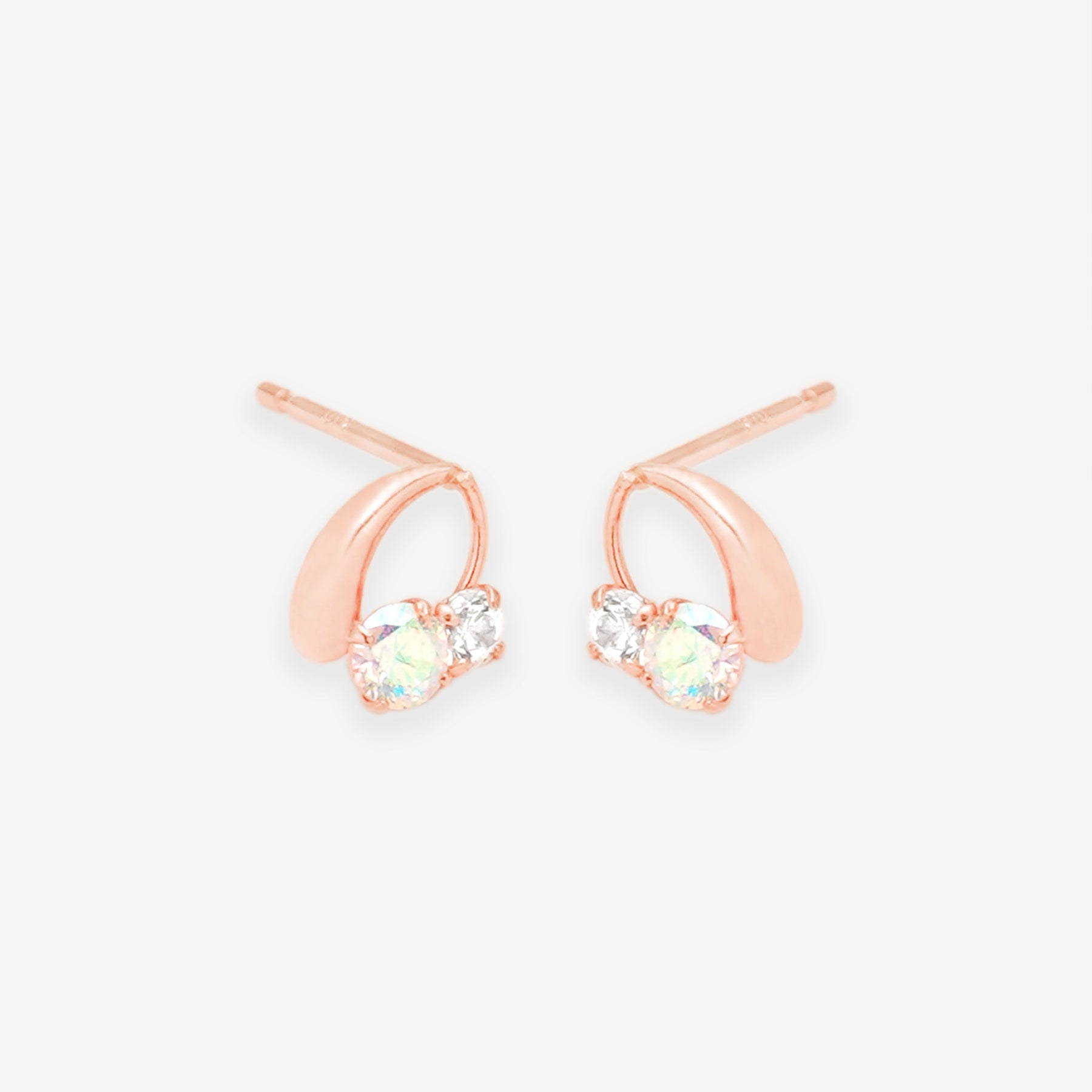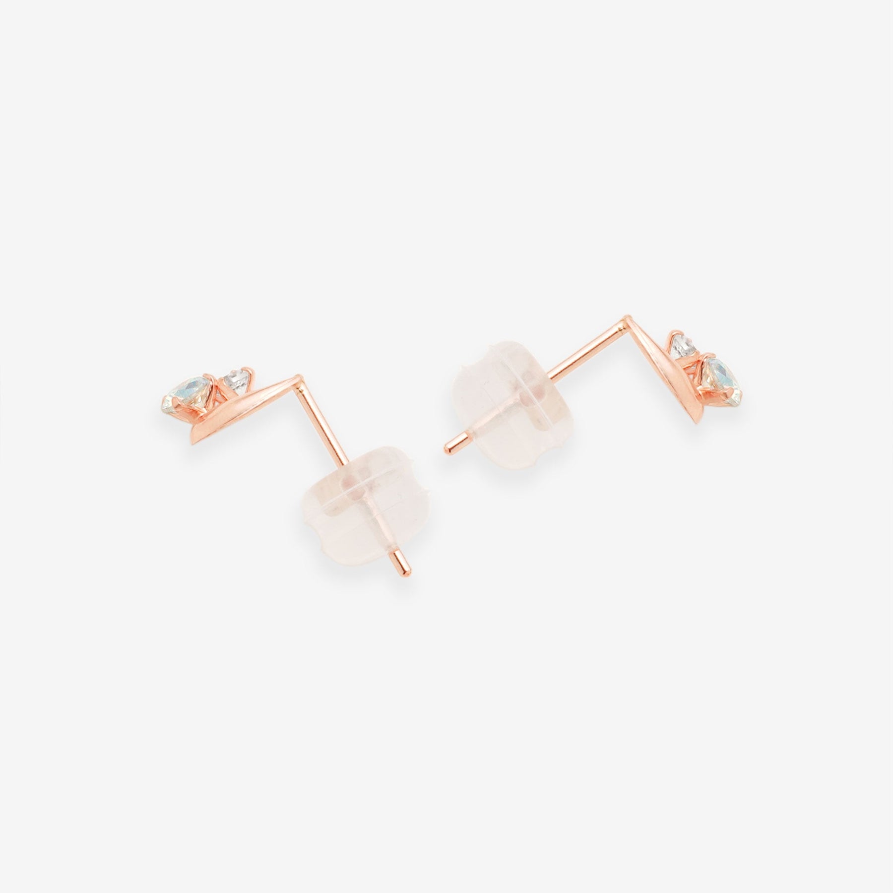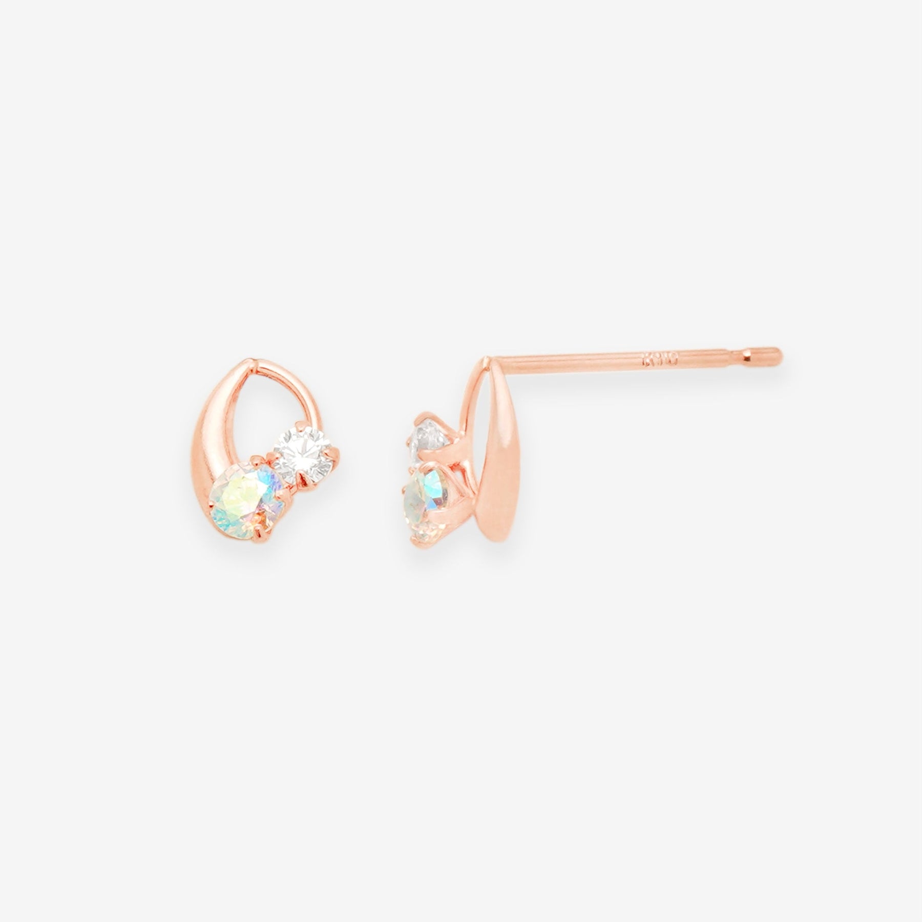 モチーフで2色のキュービックジルコニアがきらめくピンクゴールドのピアス。