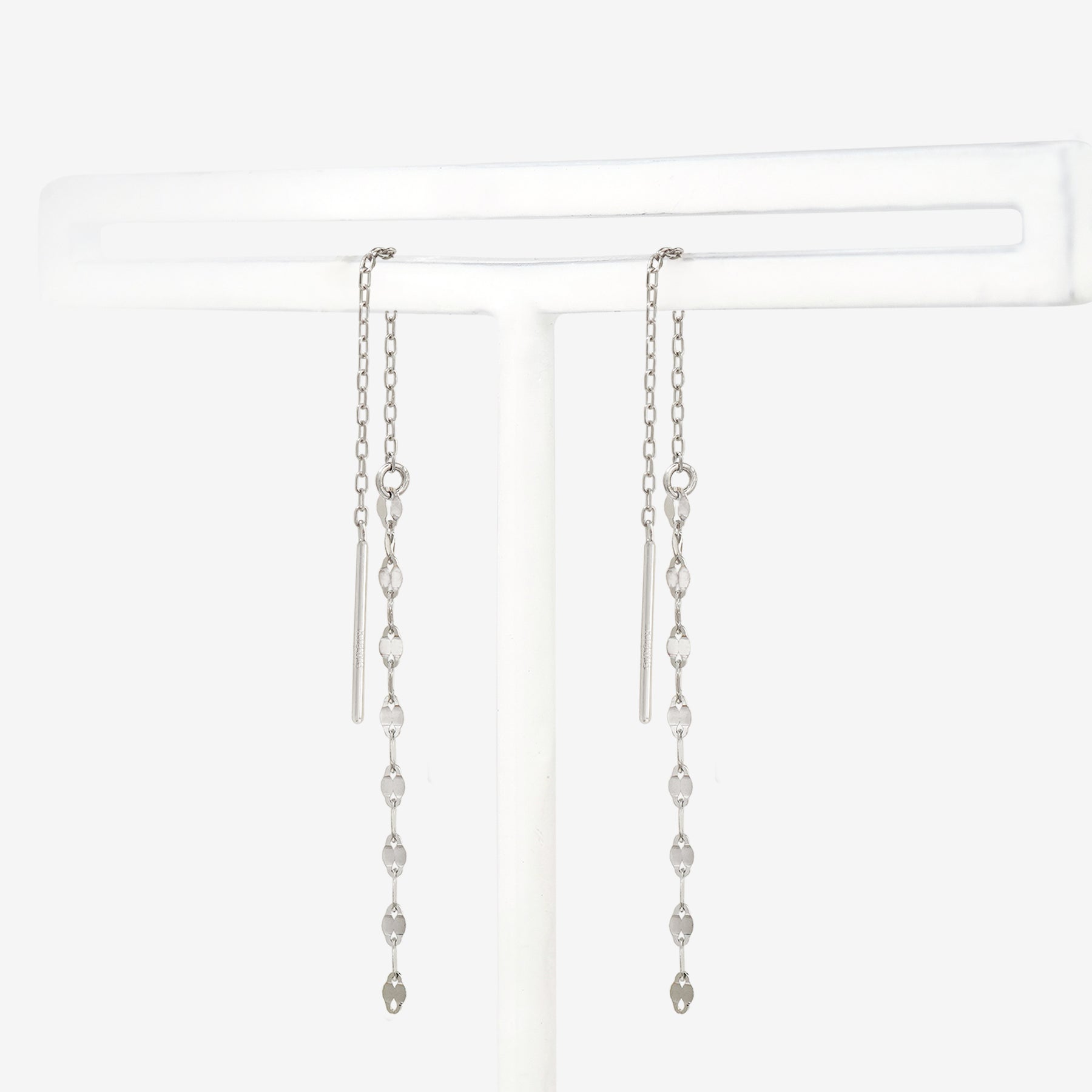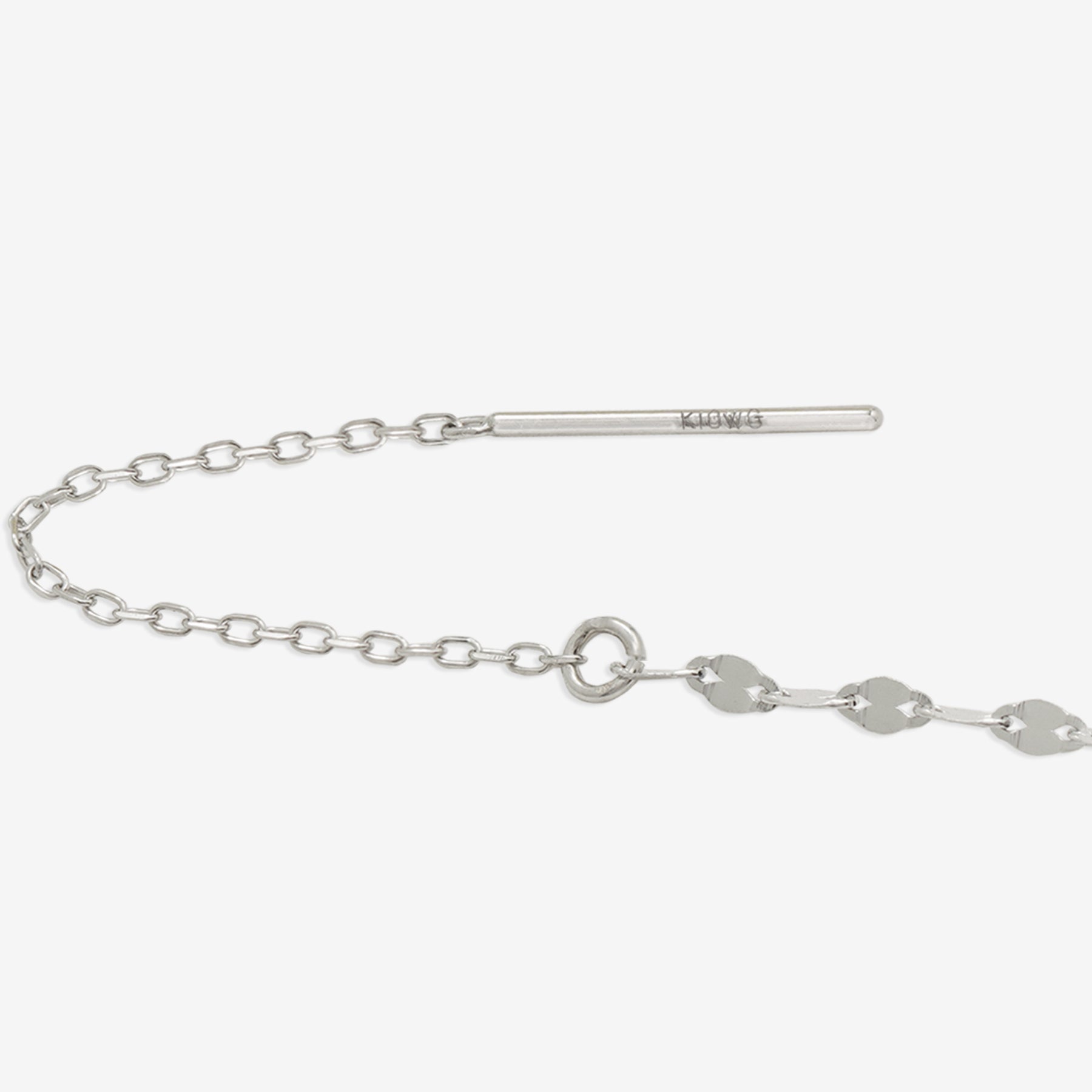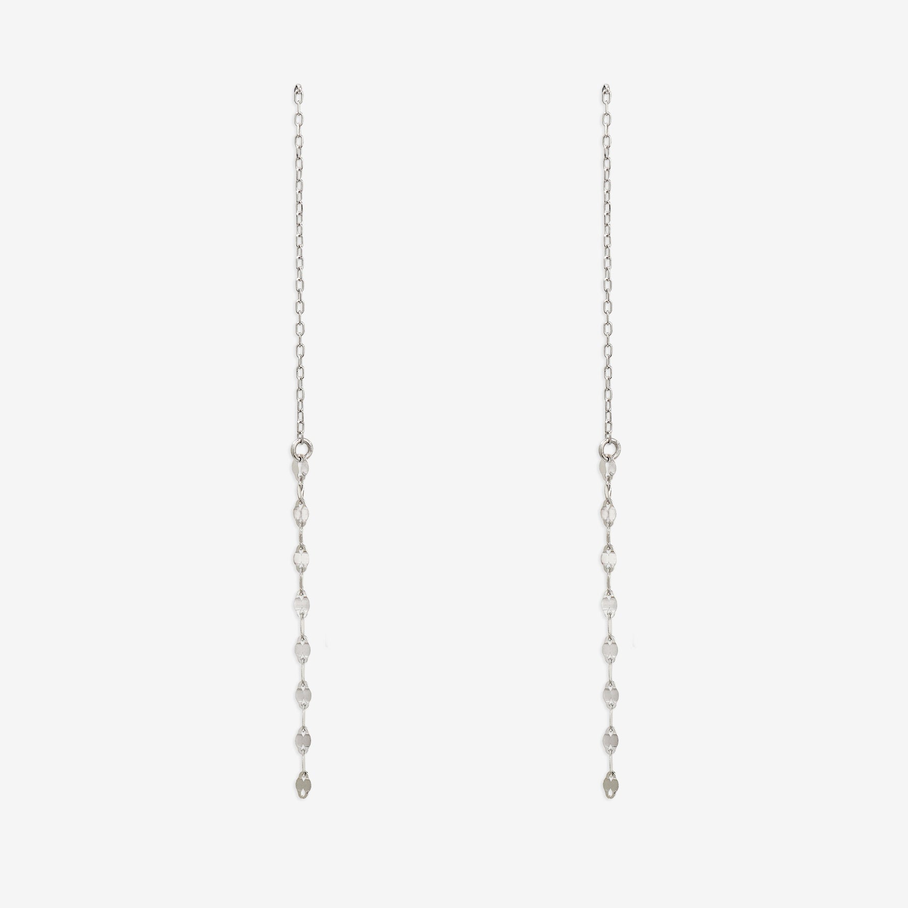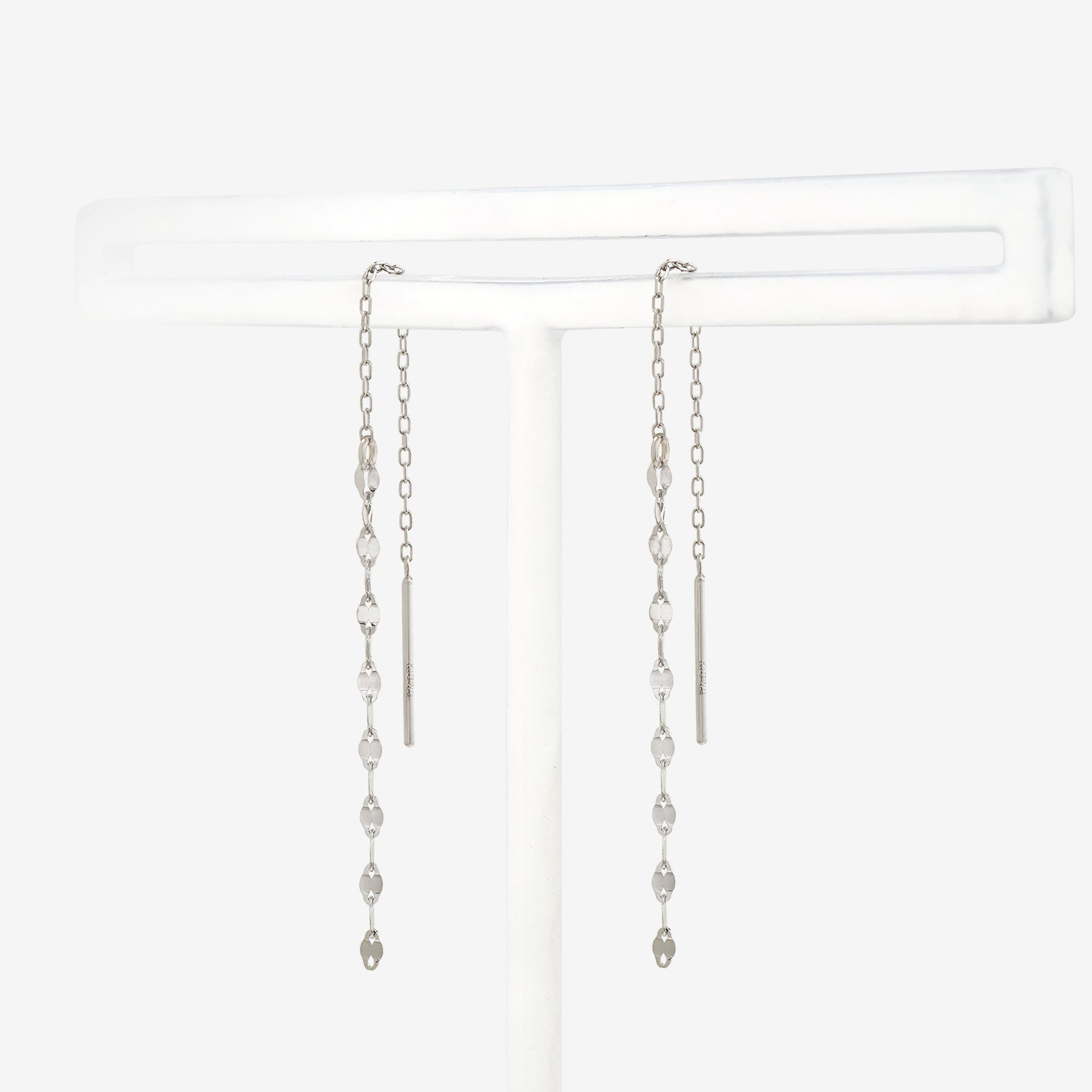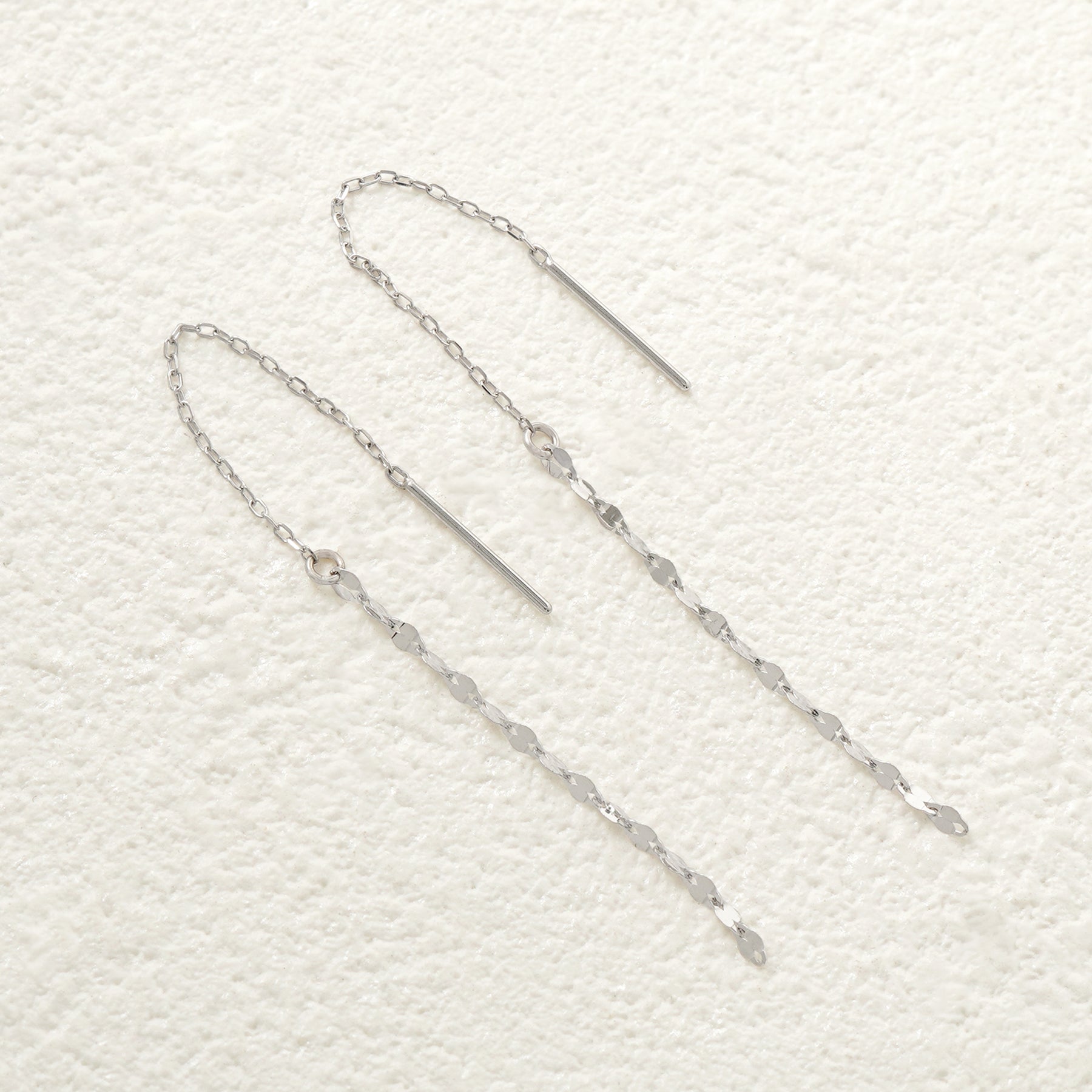 しなやかなチェーンが揺れる、ホワイトゴールドのアメリカンピアス。動くたびに光を受けてきらめくデザインが、耳元を華やかに彩ります。軽やかな着け心地で、いつものコーディネートに上品なアクセントをプラス。シンプルながら洗練された印象で、普段使いから特別なシーンまで幅広く活躍します。自分へのご褒美や、大切な方へのギフトにもおすすめです。【ATTENTION】※熱や紫外線、湿度の影響により変色や変質、劣化の恐れがございます。ご使用後は柔らかな布で汚れを拭き取ってから、直射日光の当たらない場所での保管をお願いいたします。※強い力を加えると変形の原因になりますので、お取り扱いにはご注意ください。