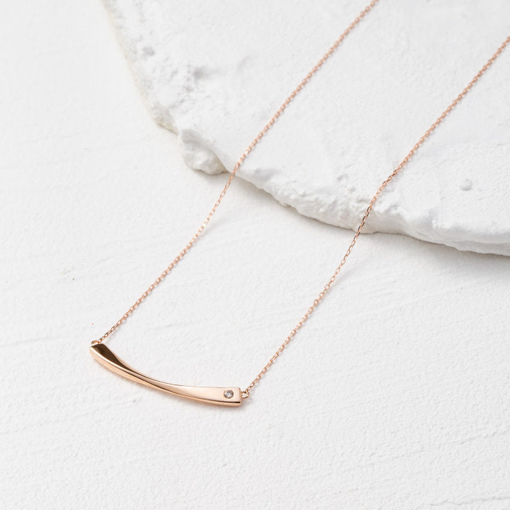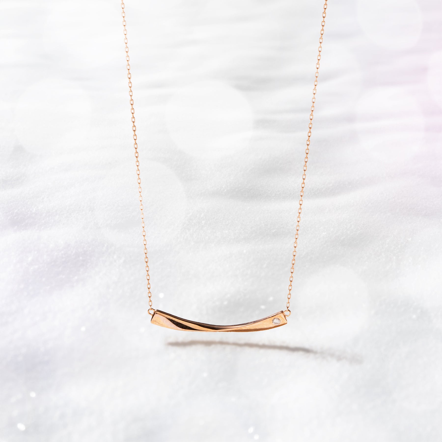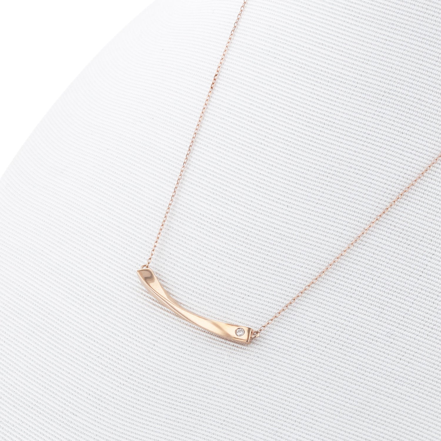 【WEB限定商品】ひと粒のダイヤモンドが上品にきらめくピンクゴールドのネックレス。緩やかなカーブを描くモチーフは、洗練された印象を与えながら、どんなスタイルにも自然に馴染みます。ペアで身につければ、離れていてもお互いを感じられる特別なアイテムに。大切な人へのギフトや記念日のプレゼントにもおすすめです。ダイヤモンドは4月の誕生石です。石言葉は「清浄無垢」「永遠の愛」。心身を浄化し周囲にある邪気を払ってくれる力があるとされています。最大の幸福を呼び込むサポートとなってくれそうです。