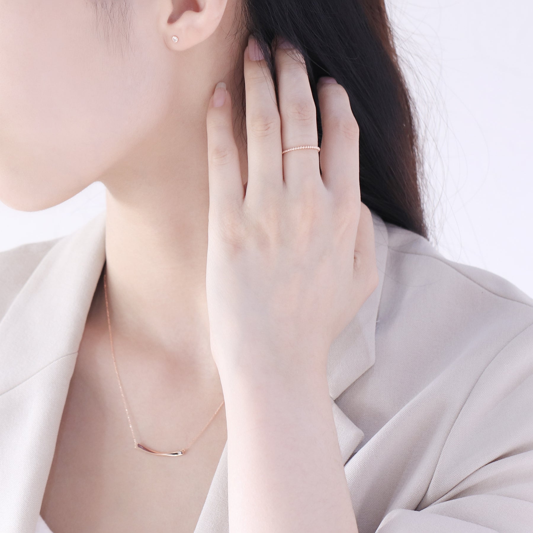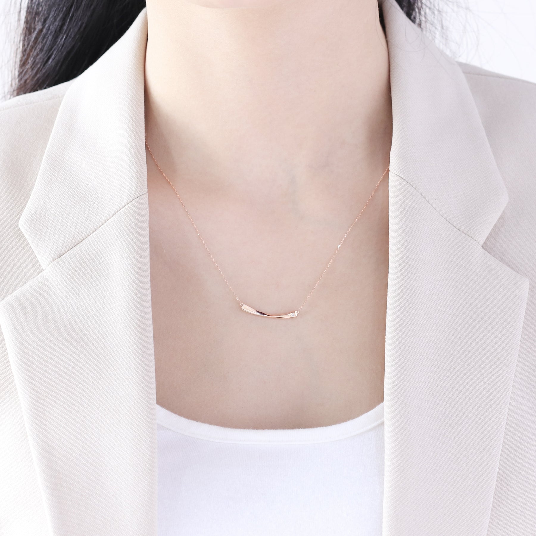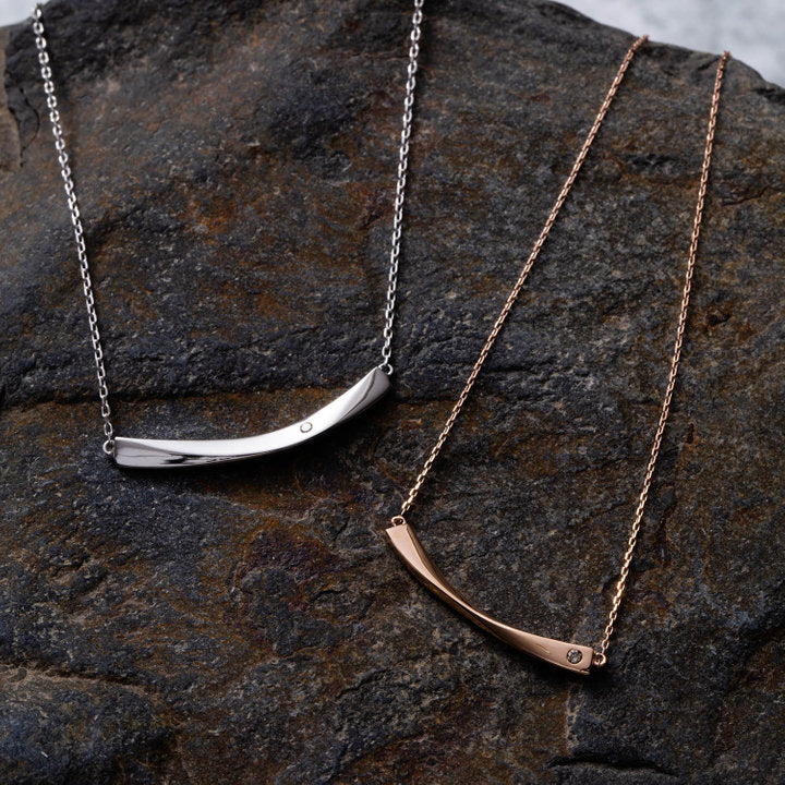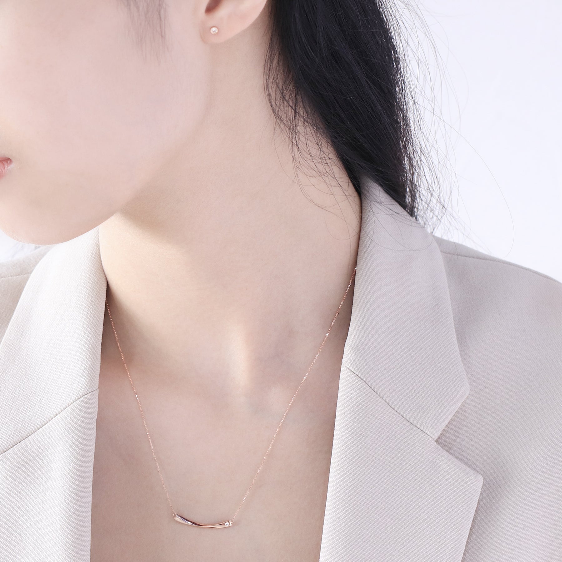 【WEB限定商品】ひと粒のダイヤモンドが上品にきらめくピンクゴールドのネックレス。緩やかなカーブを描くモチーフは、洗練された印象を与えながら、どんなスタイルにも自然に馴染みます。ペアで身につければ、離れていてもお互いを感じられる特別なアイテムに。大切な人へのギフトや記念日のプレゼントにもおすすめです。ダイヤモンドは4月の誕生石です。石言葉は「清浄無垢」「永遠の愛」。心身を浄化し周囲にある邪気を払ってくれる力があるとされています。最大の幸福を呼び込むサポートとなってくれそうです。