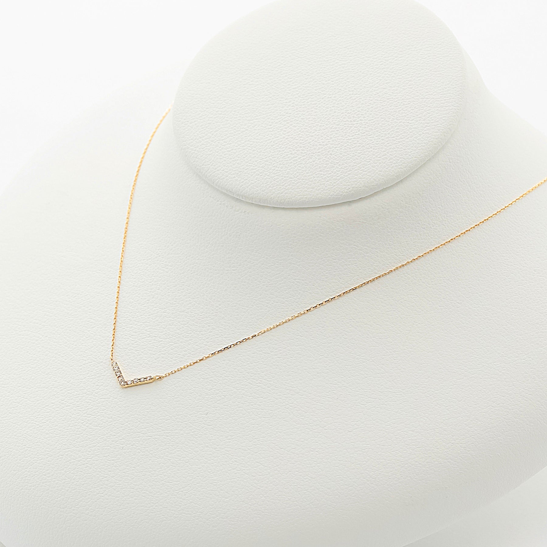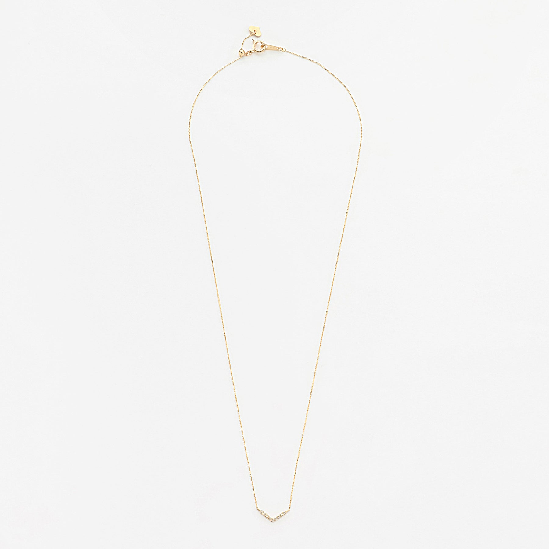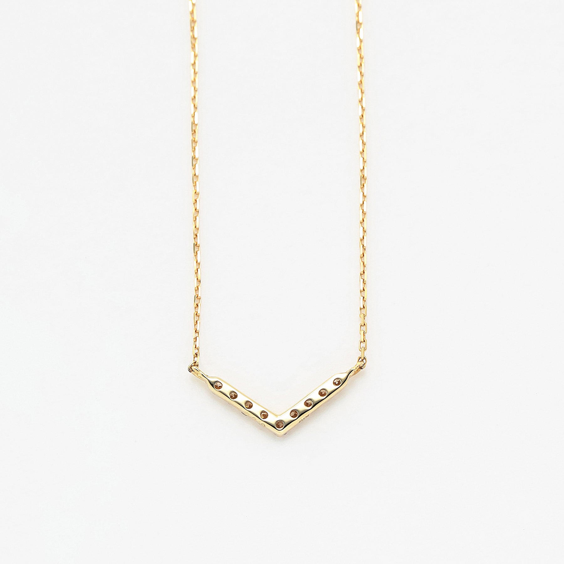 【WEB限定商品】ダイヤモンドを並べたV字のラインが印象的なイエローゴールドのネックレス。繊細な輝きがデコルテを美しく引き立て、顔まわりに上品な華やかさをプラスします。シンプルながら洗練されたデザインのネックレスは、オフィススタイルにも、特別な日の装いにもぴったり。自分へのご褒美や、大切な人へのギフトにも最適なアイテムです。ダイヤモンドは4月の誕生石です。石言葉は「清浄無垢」「永遠の愛」。心身を浄化し周囲にある邪気を払ってくれる力があるとされています。最大の幸福を呼び込むサポートとなってくれそうです。【ATTENTION】※熱や紫外線、湿度の影響により変色や変質、劣化の恐れがございます。ご使用後は柔らかな布で汚れを拭き取ってから、直射日光の当たらない場所での保管をお願いいたします。※天然石は素材の特性により、色や形、風合いなどが画像と多少異なる場合がございます。また、多少のインクルージョンやクラックがある場合がございます。予めご了承ください。※引っ張ったり、強い力を加えると不良や変形の原因となりますので、お取り扱いにはご注意ください。