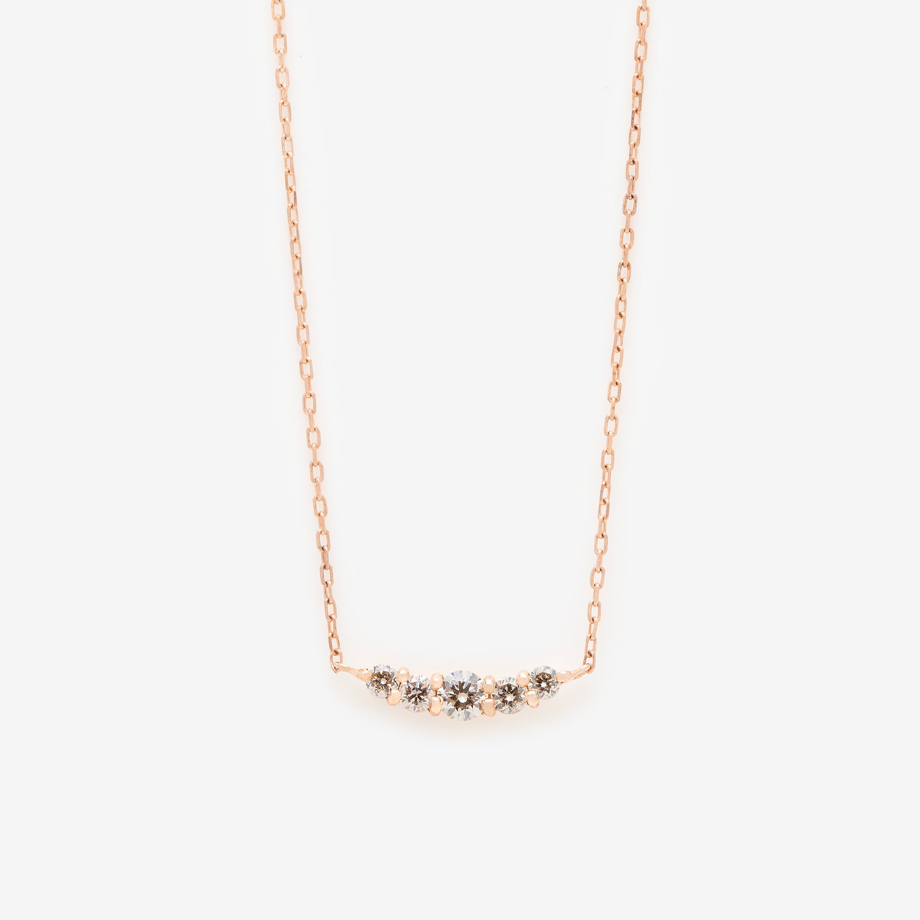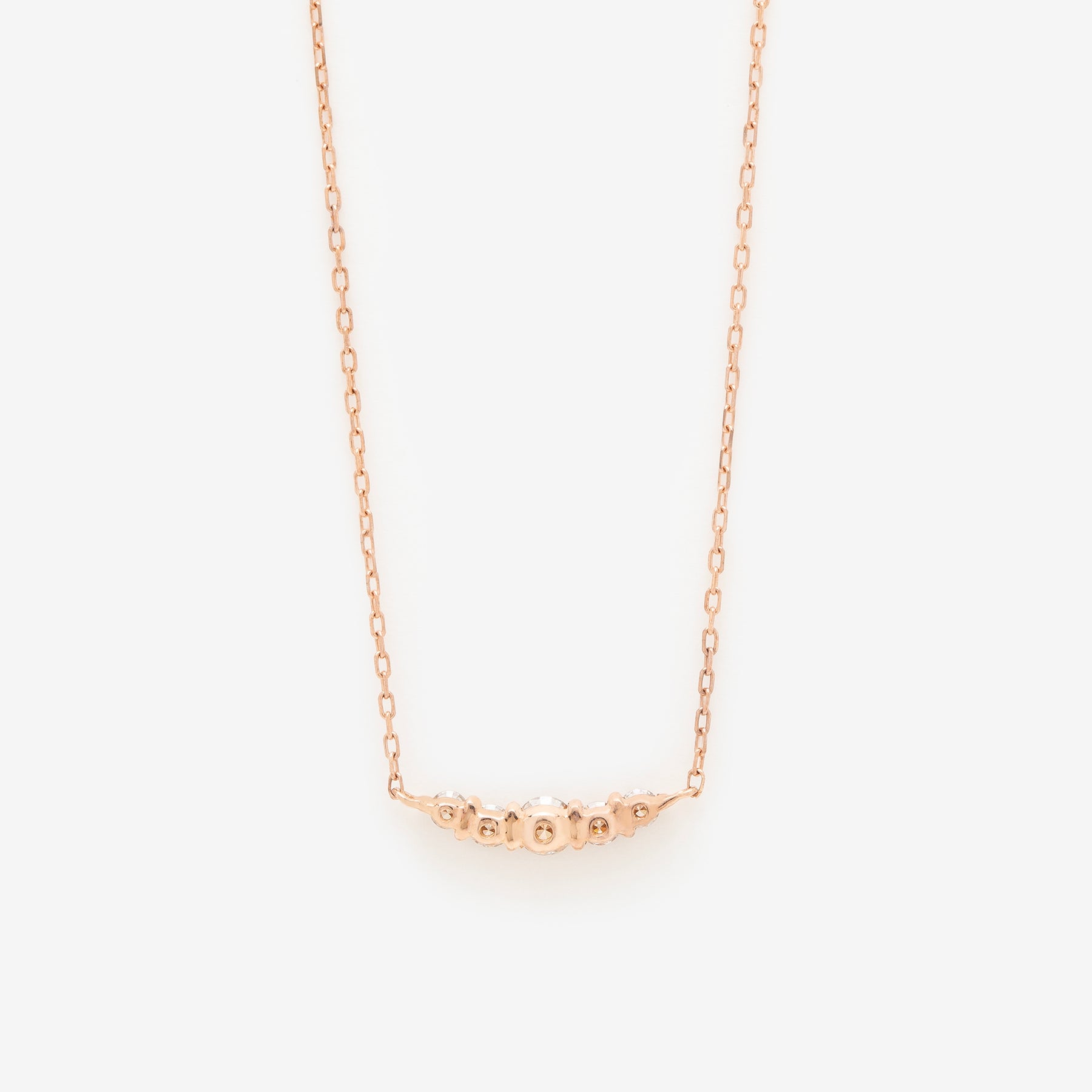 モチーフでダイヤモンドがきらめくピンクゴールドのネックレス。