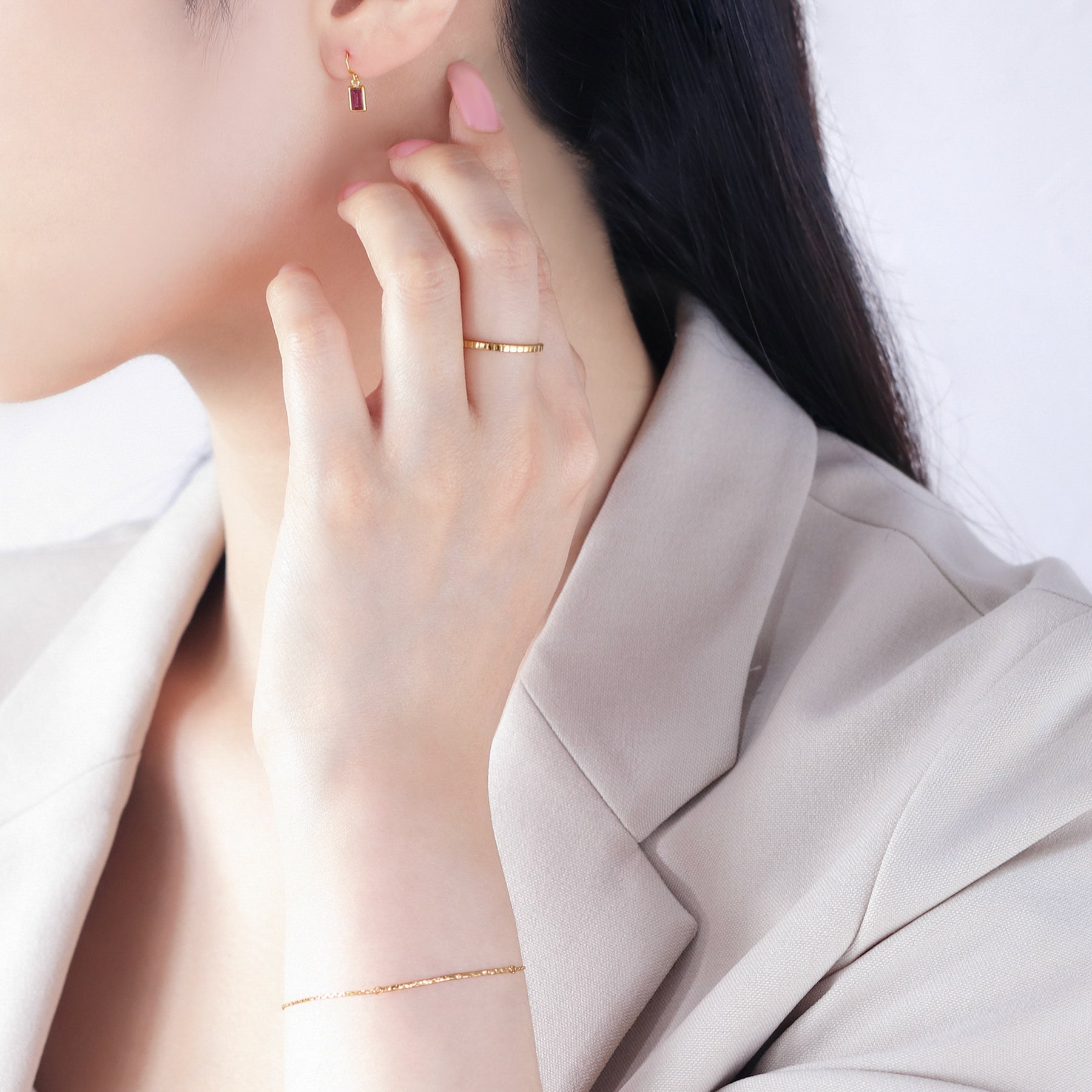 【FOR EARS】深紅のロードライトガーネットが静かに輝く、K18イエローゴールドのフックピアス。落ち着いた赤のトーンが華美になりすぎることなく、装いに自然な彩りを添えます。シンプルなデザインの中に、素材の上質さと洗練された美しさが息づいており、日常のスタイルにさりげなく馴染みながら、特別なひとときにも品よく寄り添います。洗練された感性を持つ大人の女性に、静かに寄り添うジュエリーです。ロードライトガーネットの石言葉は「勝利」「不変の愛」「友愛の証」。勝利や結果をもたらしてくれる力があり、不変の愛や周りの方との関係がより素敵なものへとなるともいわれています。【ATTENTION】※熱や紫外線、湿度の影響により変色や変質、劣化の恐れがございます。ご使用後は柔らかな布で汚れを拭き取ってから、直射日光の当たらない場所での保管をお願いいたします。※天然石は素材の特性により、色や形、風合いなどが画像と多少異なる場合がございます。また、多少のインクルージョンやクラックがある場合がございます。予めご了承ください。※天然石は他の宝石と比べて柔らかく傷がつきやすいため、衝撃や摩擦にご注意ください。また、他のジュエリーと触れないように保管してください。※強い力を加えると変形の原因になりますので、お取り扱いにはご注意ください。